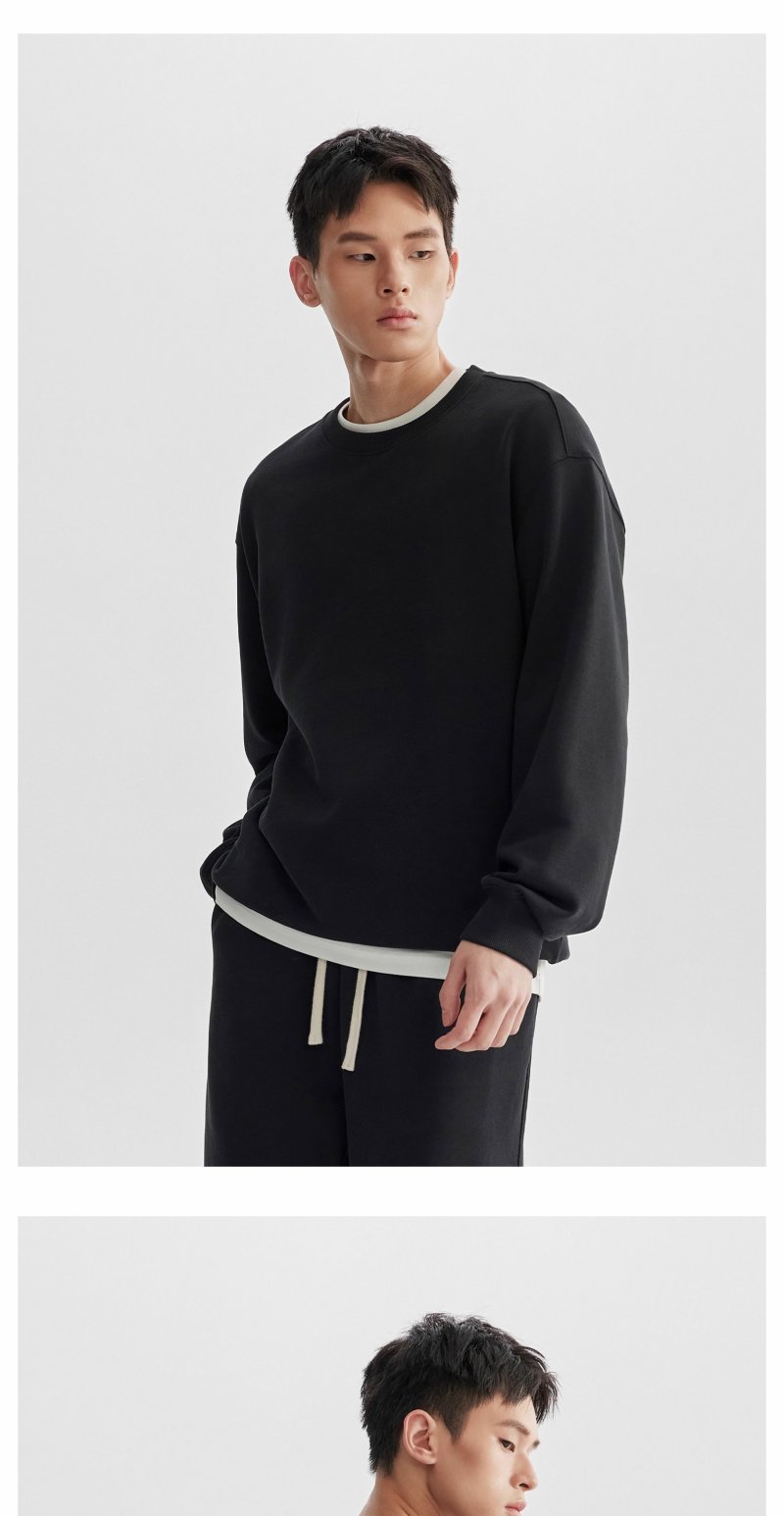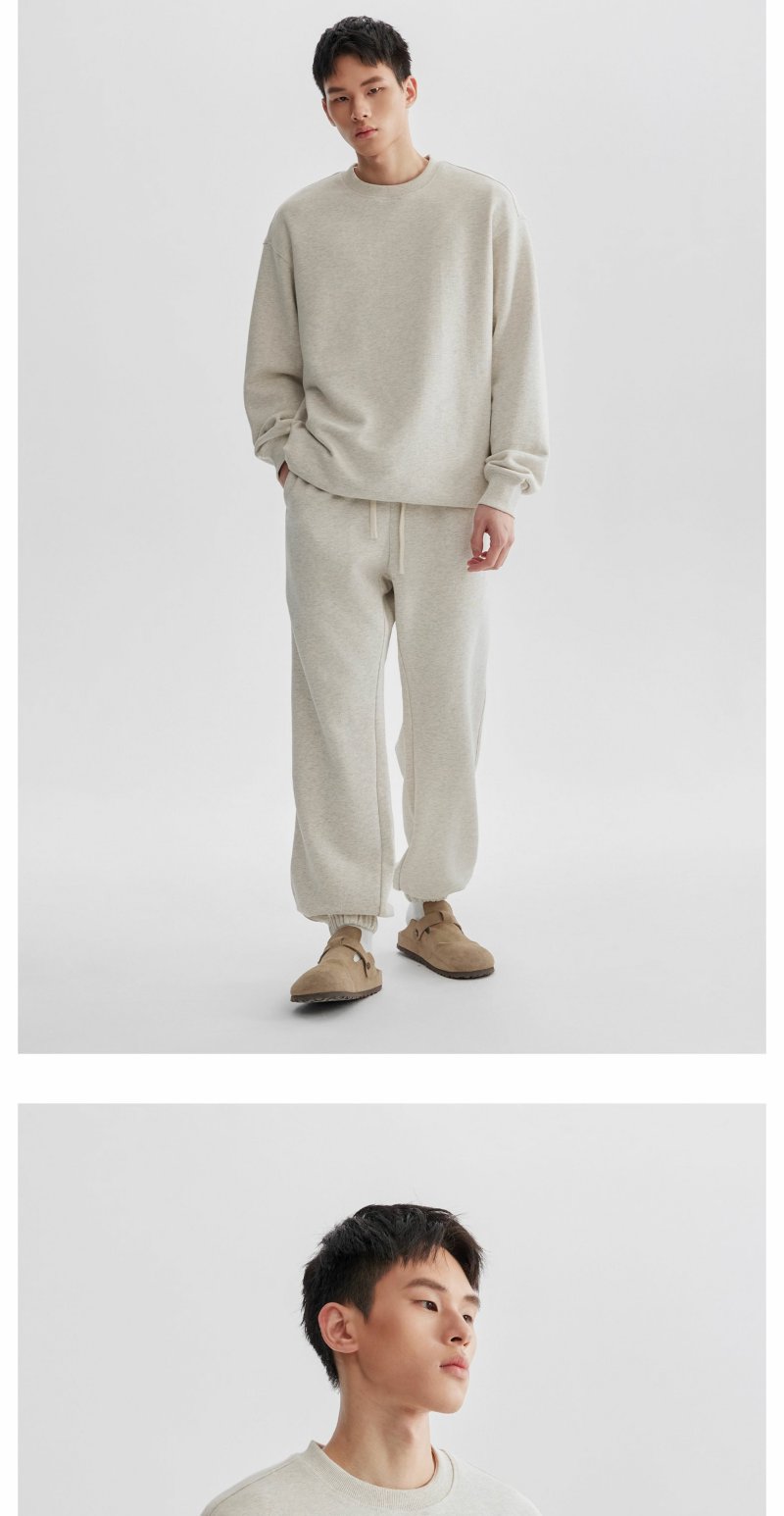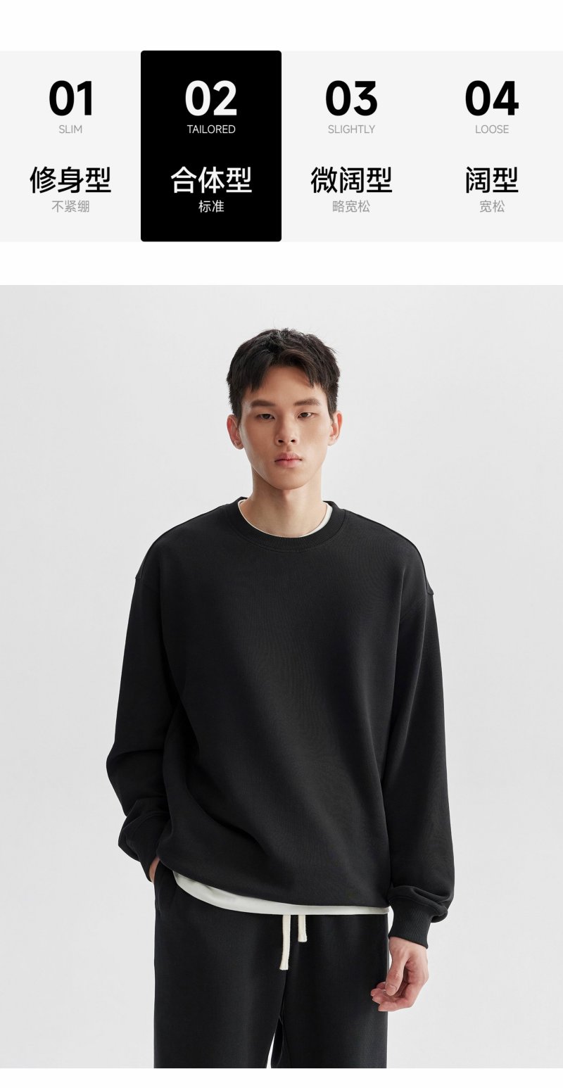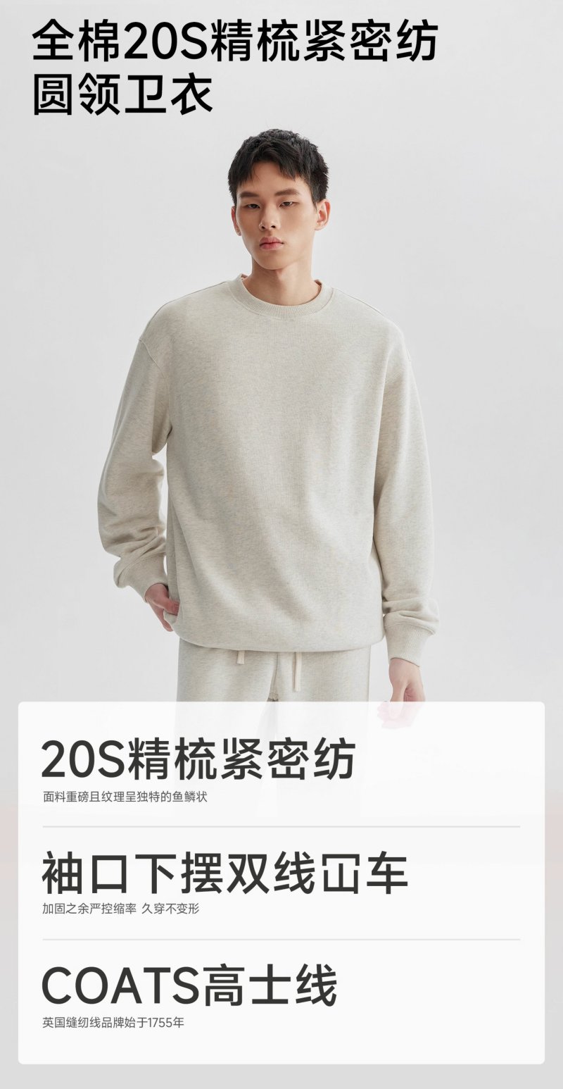 CHINISM赤尘 花灰色纯棉圆领卫衣男秋季新款重磅宽松运动休闲外套