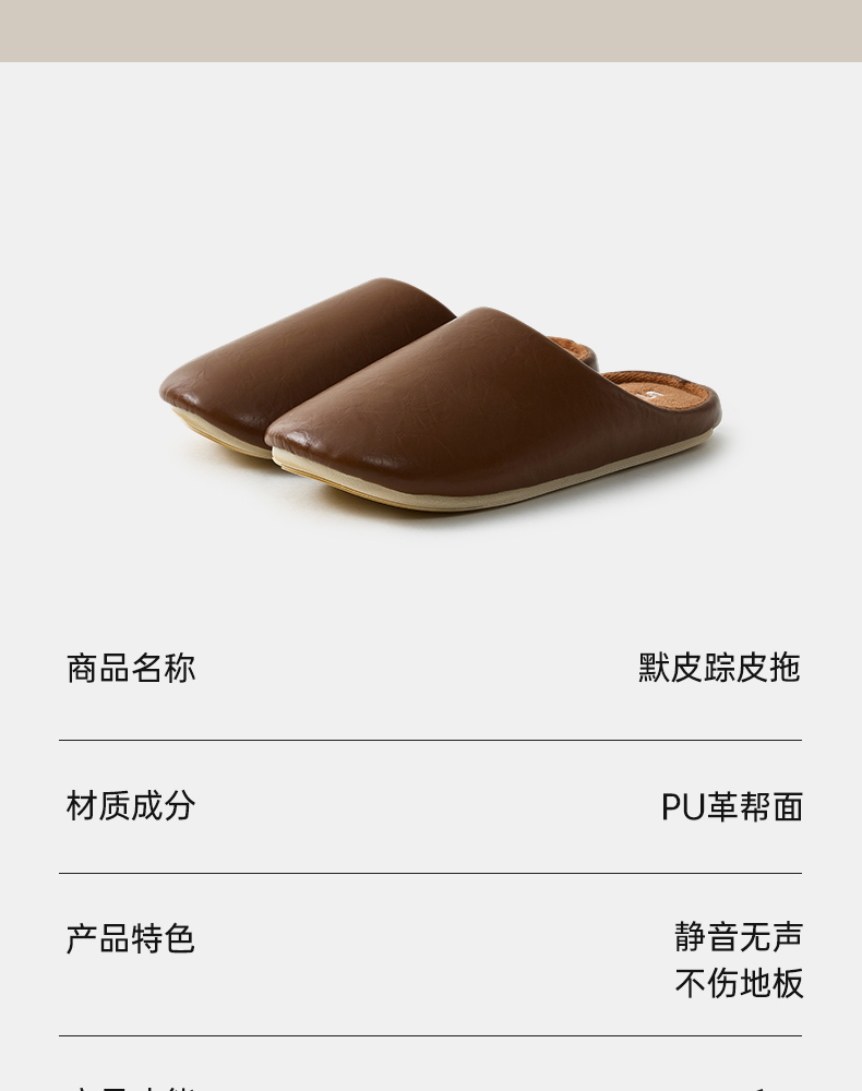 优调 默皮踪皮拖鞋 UDT1449 PU防溅水帮面,耐脏易清洁,柔软织物踏面,亲肤不闷脚,TPR静音鞋底,耐磨不易打滑