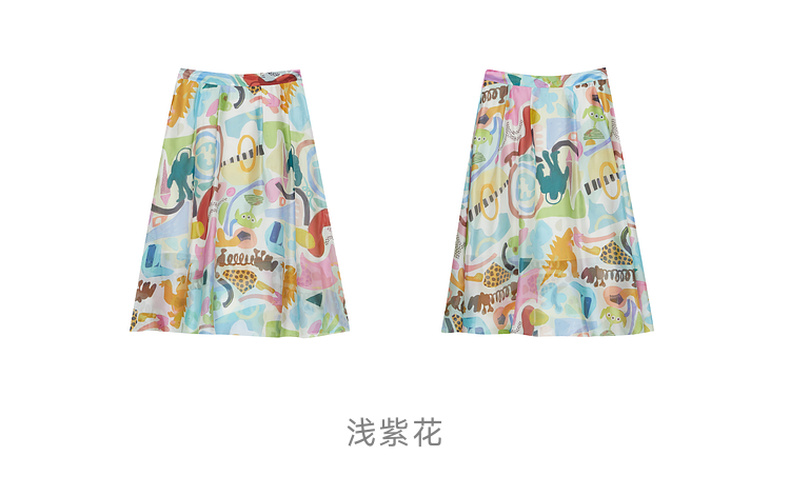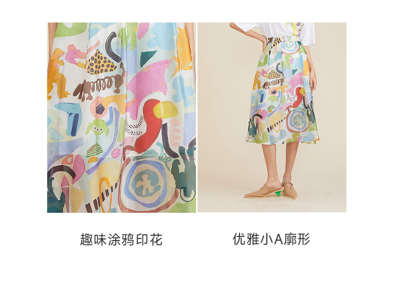 谜底2023夏季新款复古浪漫飘逸绘画感印花中长款半身裙235MB6016