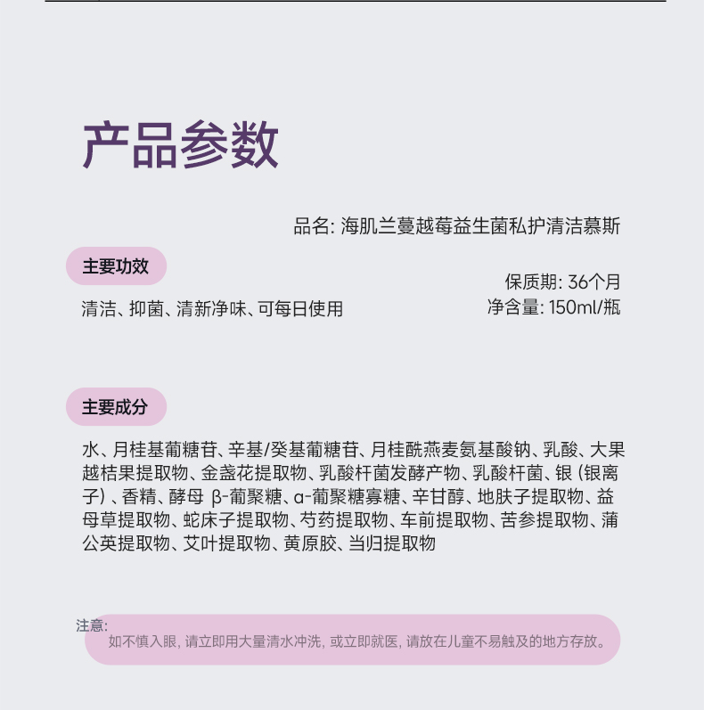 海肌兰蔓越莓益生菌私护清洁慕斯