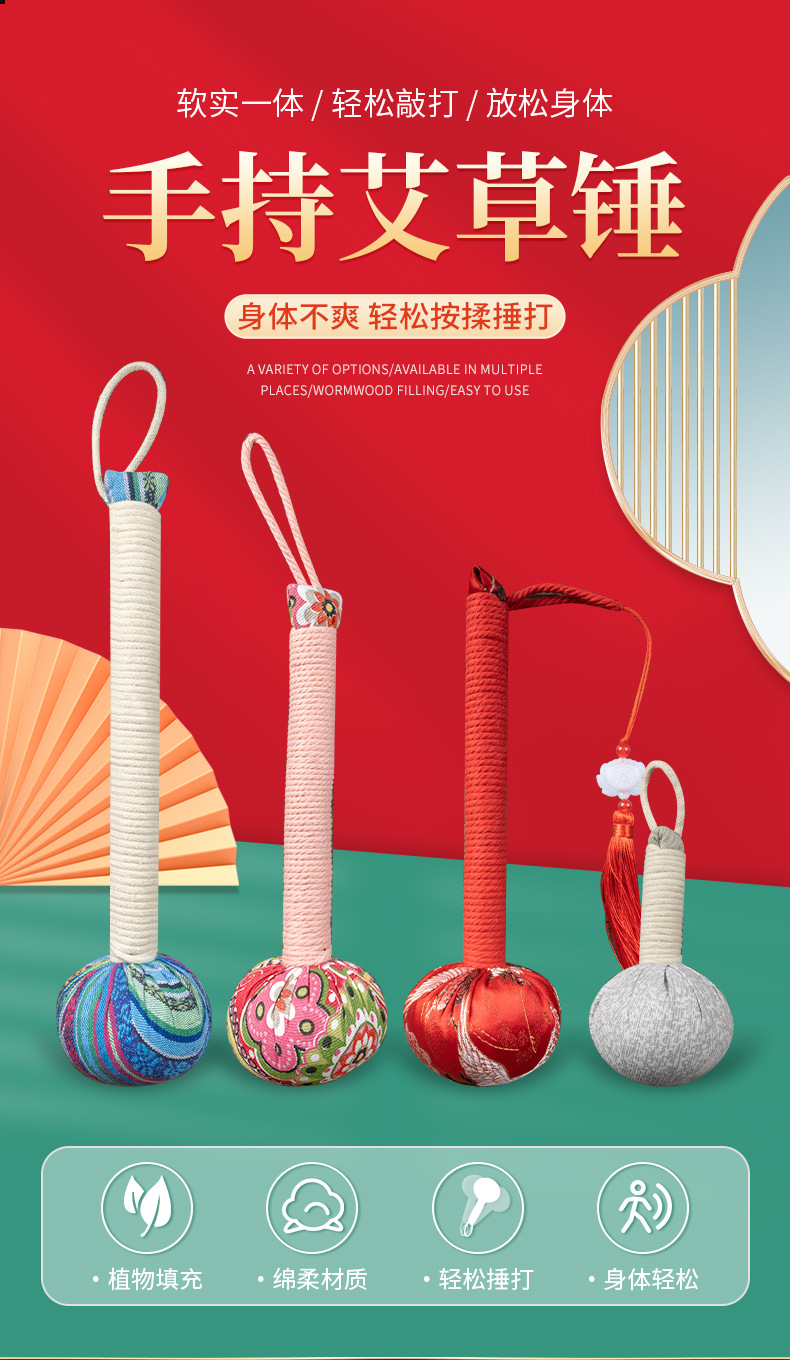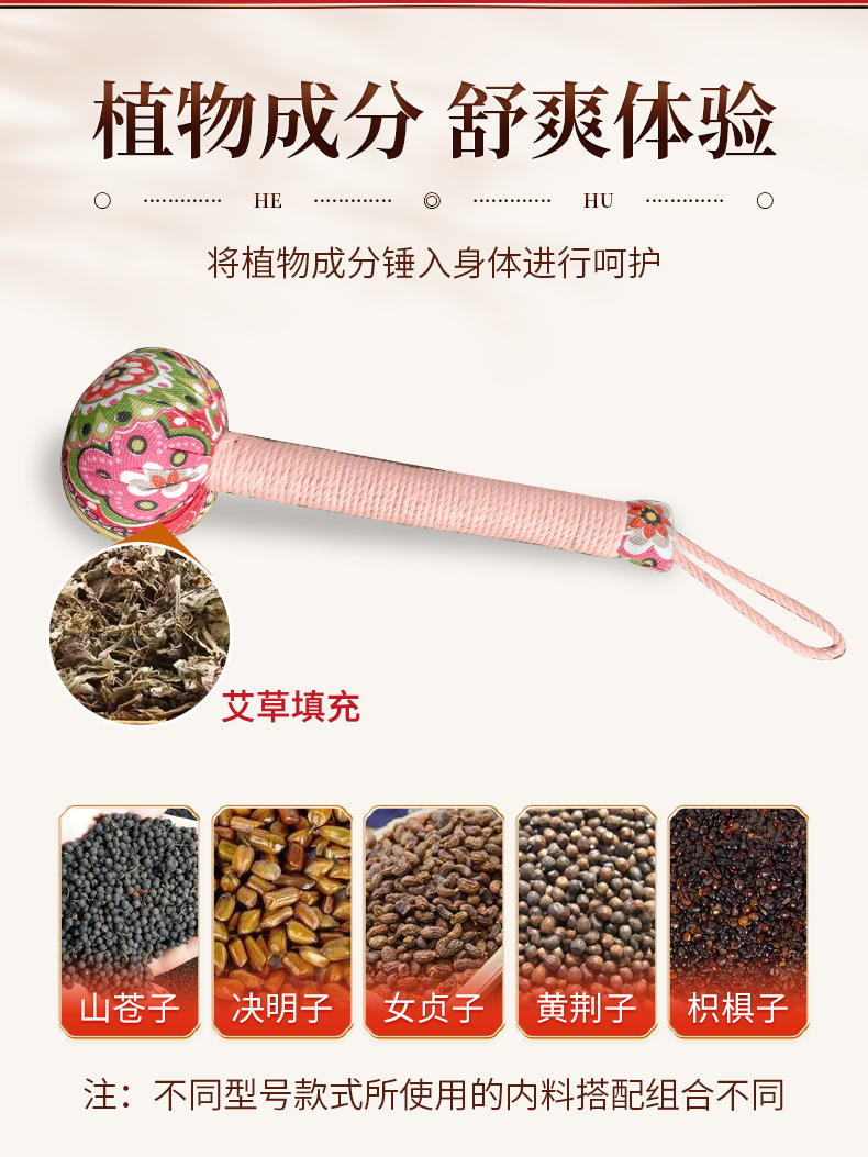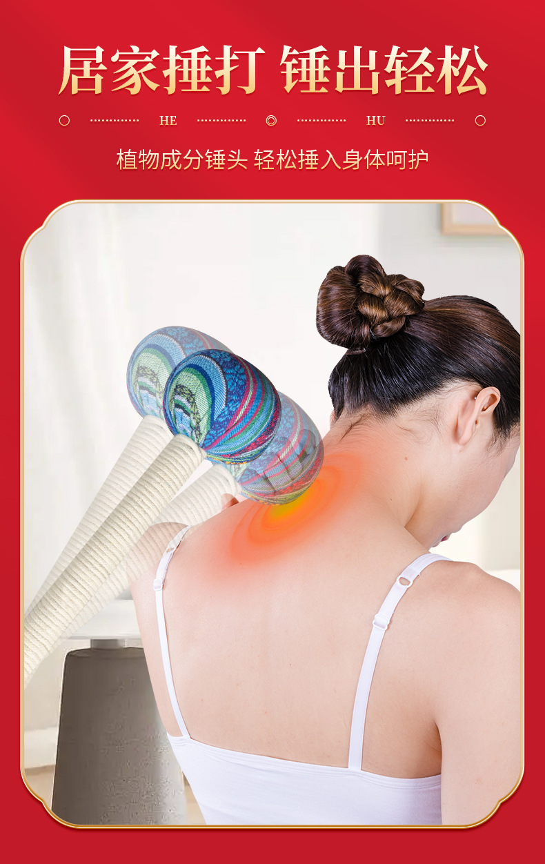 自然醒艾草养生锤经络拍打神器颈肩锤背拍八虚拍子艾灸捶按摩敲打棒筋络BNHA