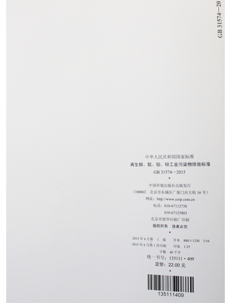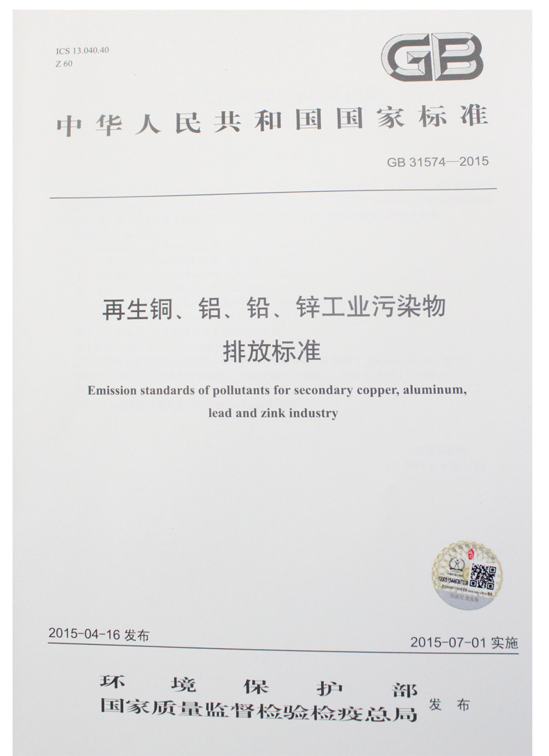 GB 31574-2015 再生铜、铝、铅、锌工业污染物排放标准 国家标准GB 环境保护 环境科学 135111409