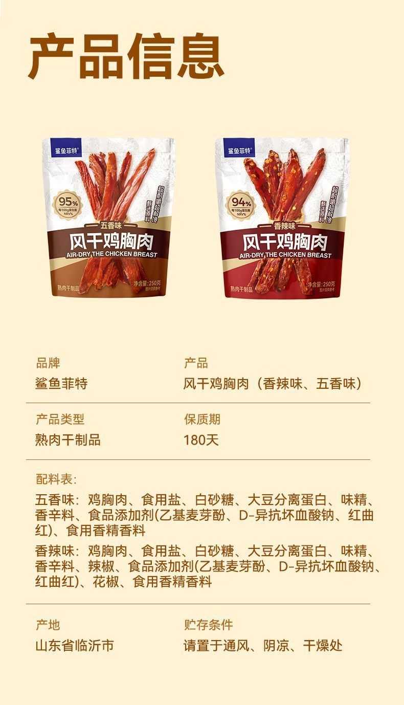 鲨鱼菲特丨风干鸡胸肉250g/袋
