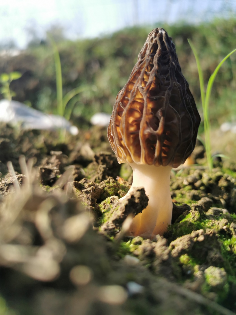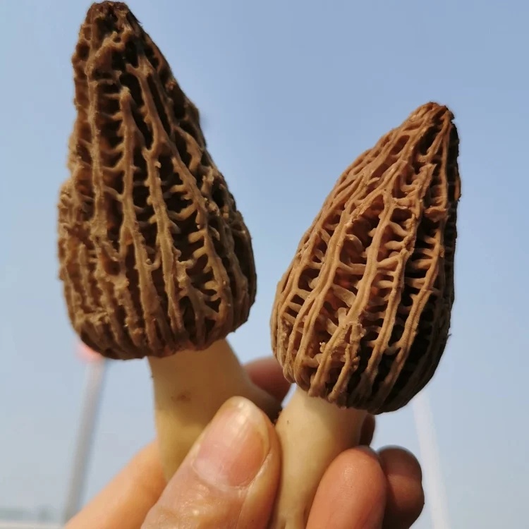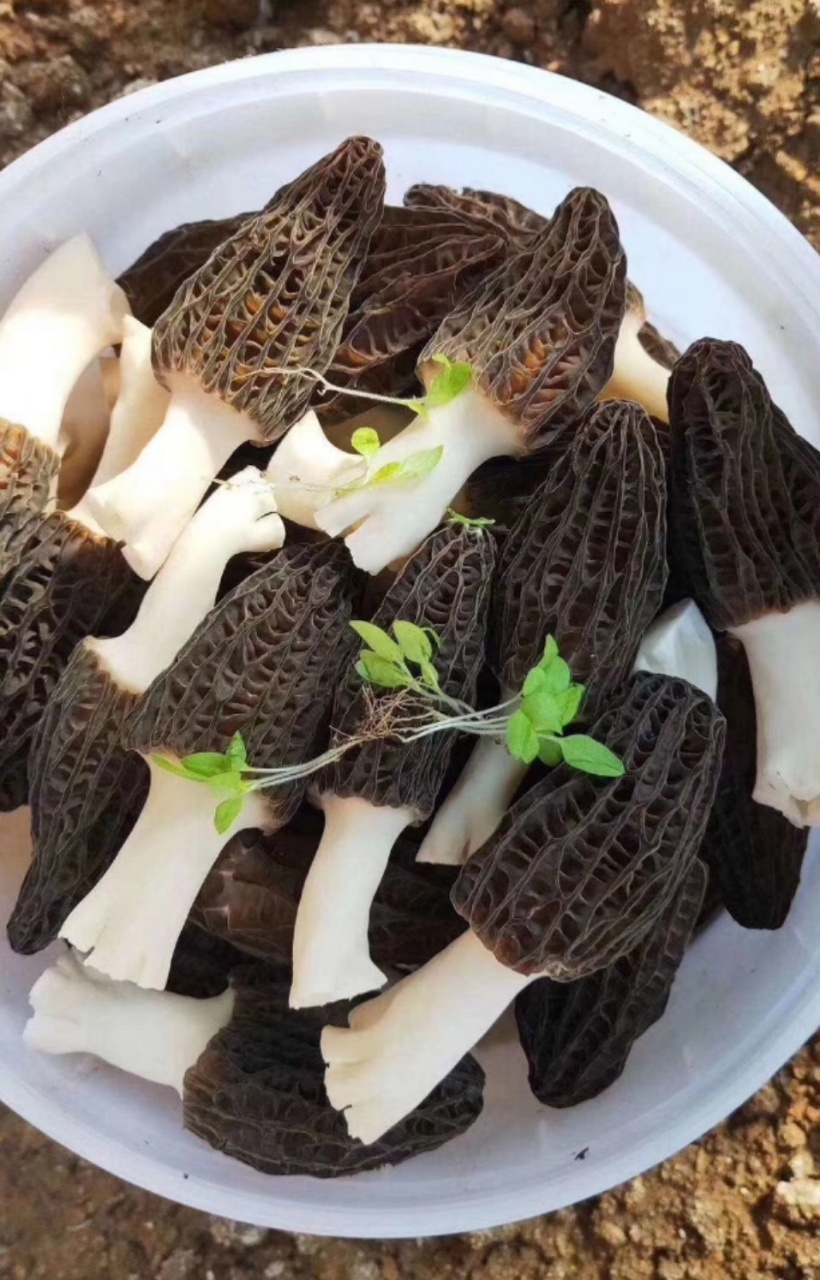 3、鲜羊肚菌属于真菌蘑菇,生长会伴随有共生菌类,所以有些羊肚菌顶部或根部会存在少量白色菌群是共生菌群;