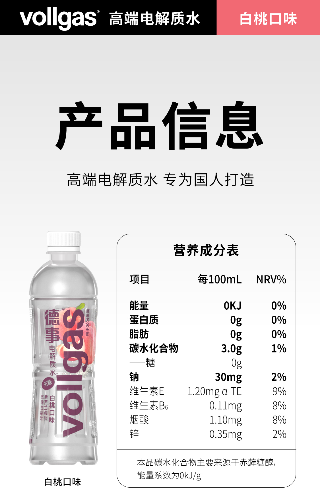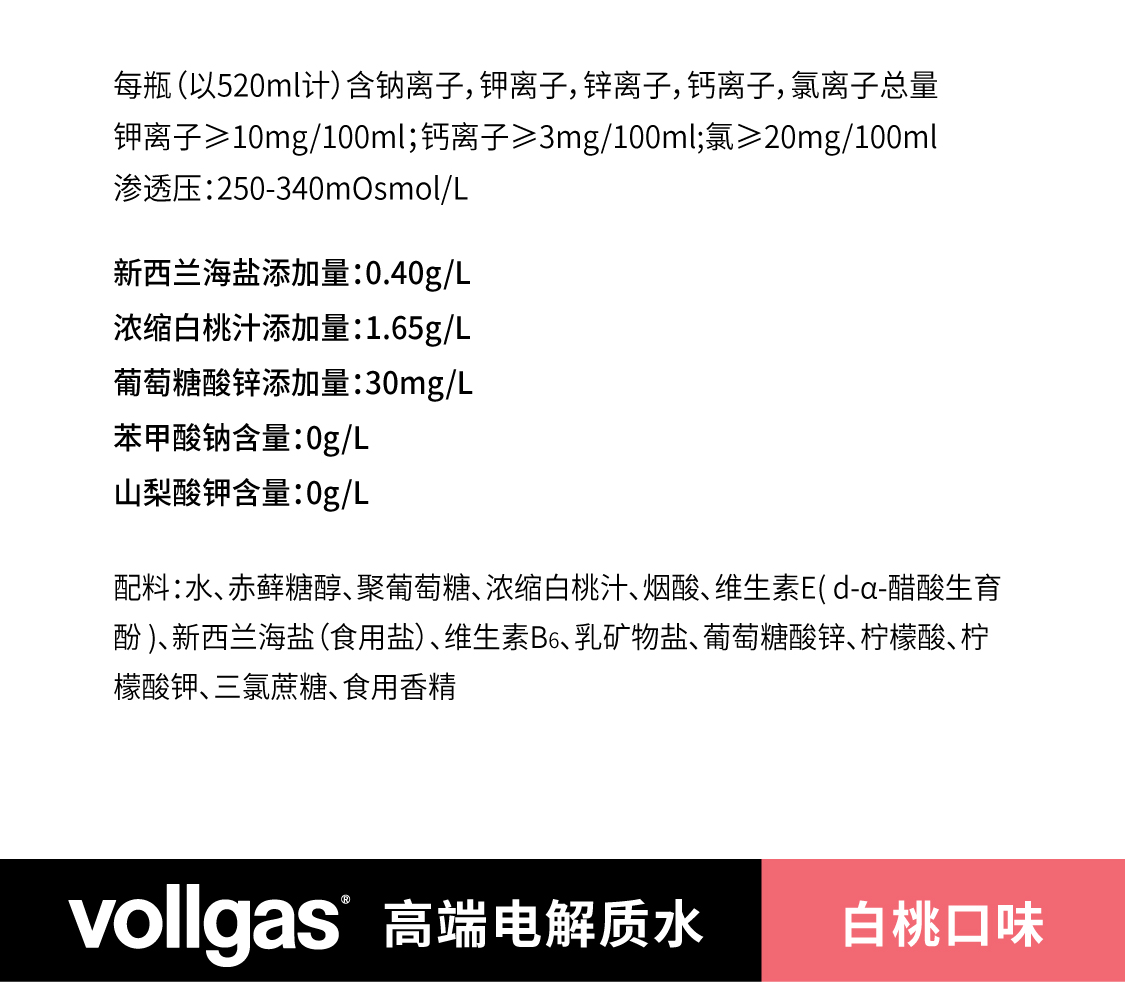 德事电解质水白桃口味无糖520ml*15