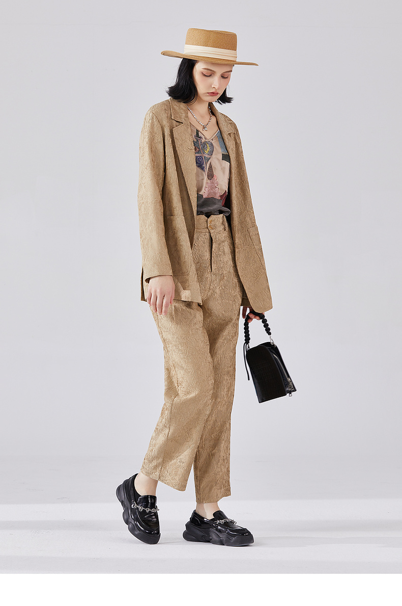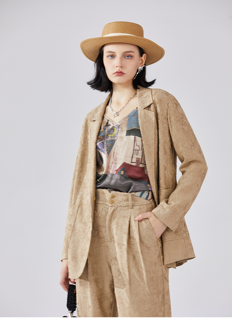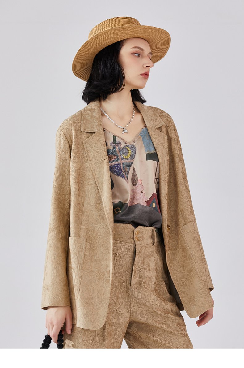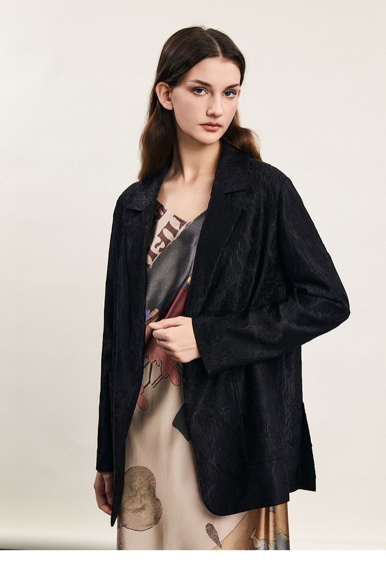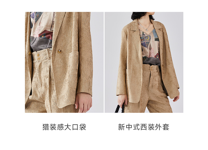 谜底西装外套女2024春新款高端系列时尚提花宽松中长款241GW0064