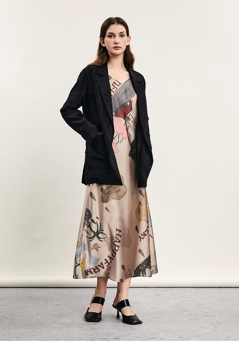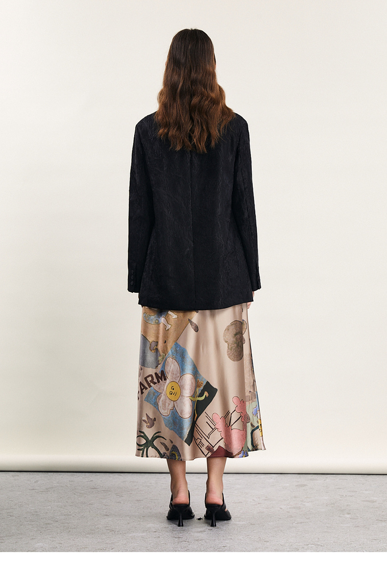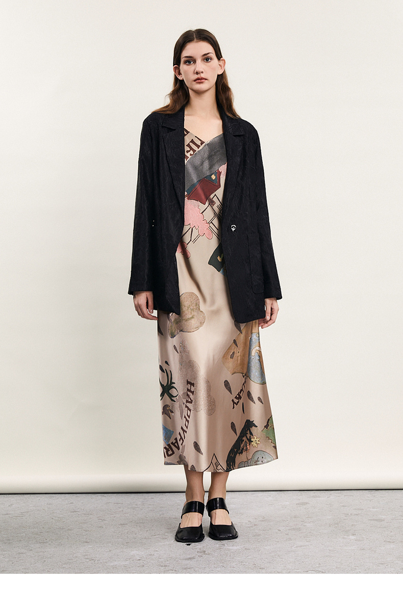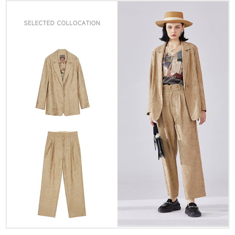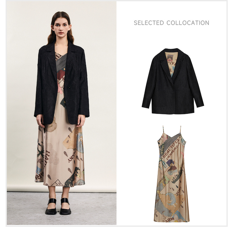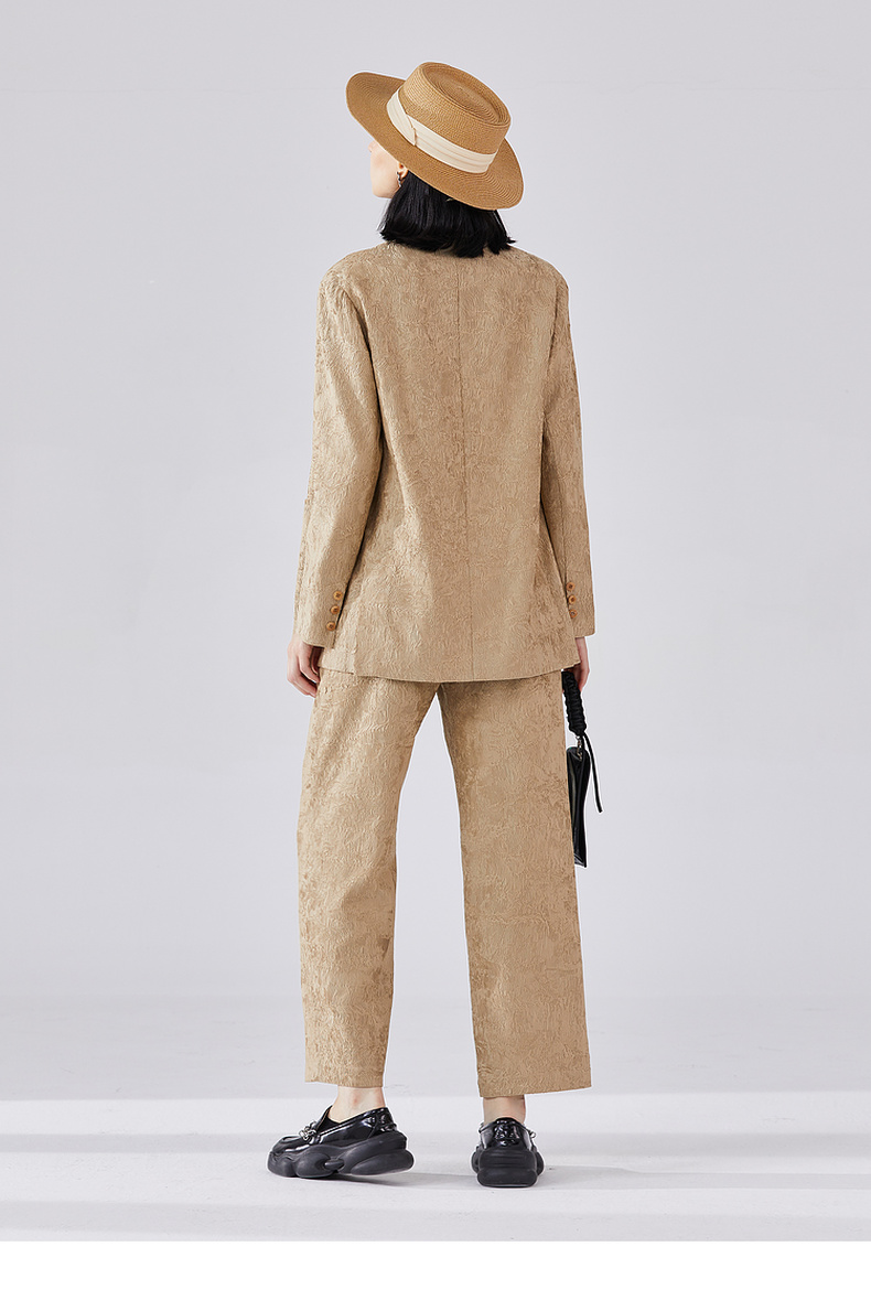 谜底西装外套女2024春新款高端系列时尚提花宽松中长款241GW0064