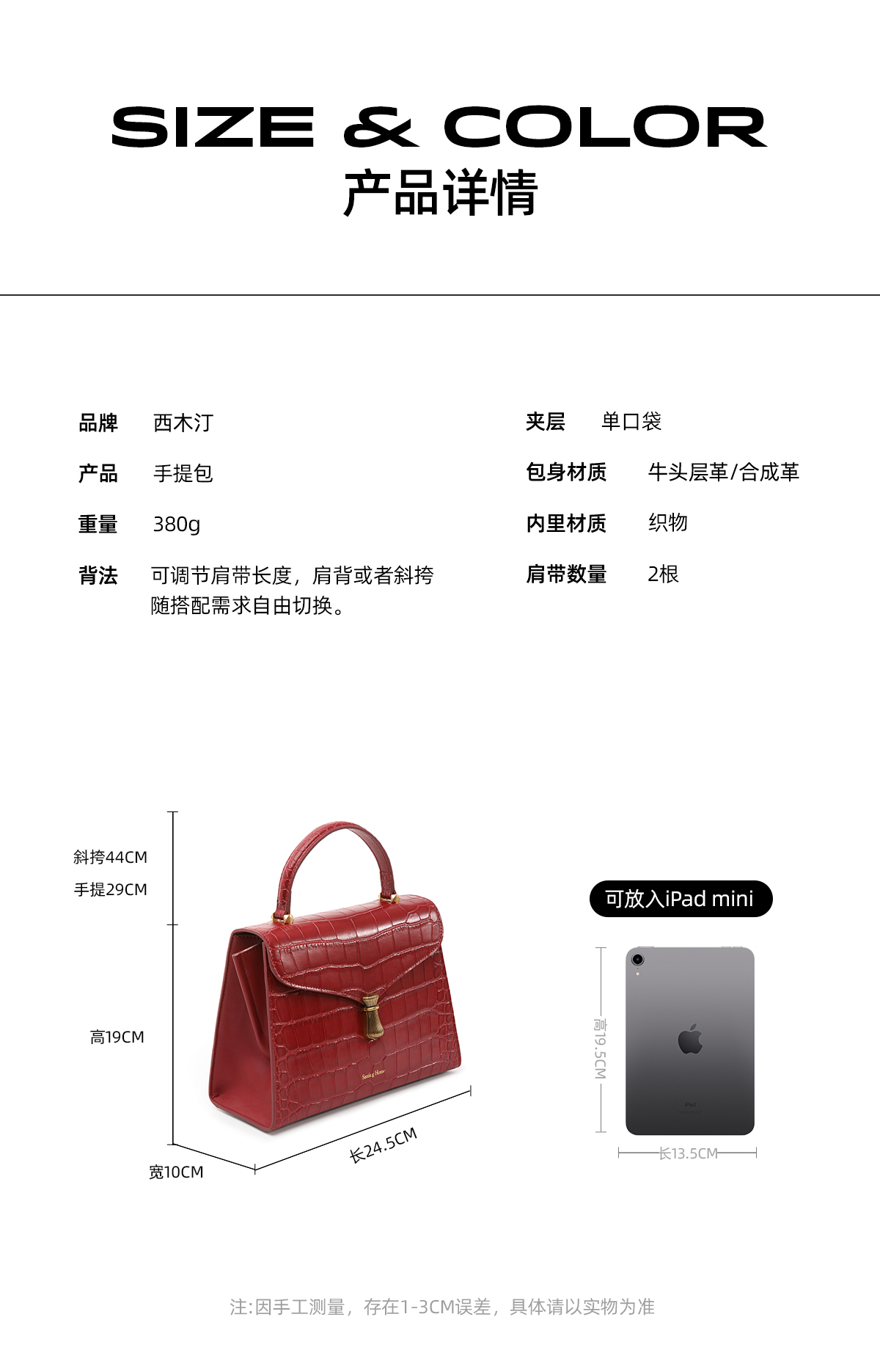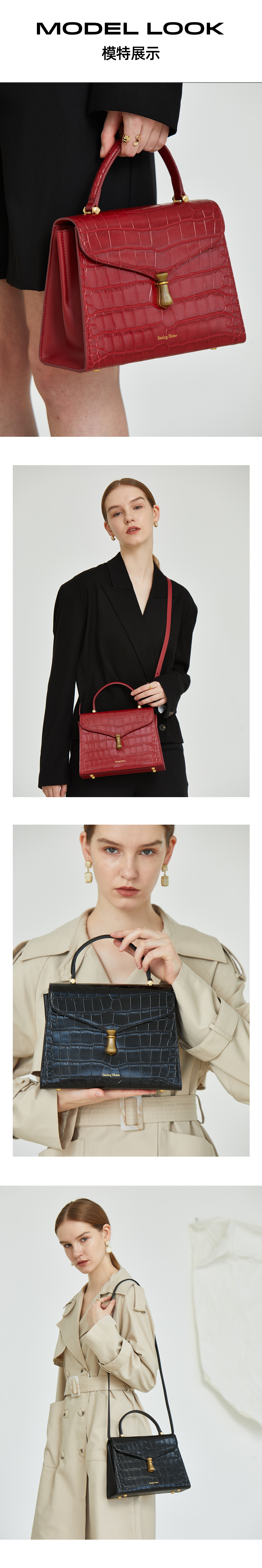【柔见定制专属】西木汀 布朗尼 鳄鱼纹牛皮手提婚包女新娘单肩红色质感包包3871