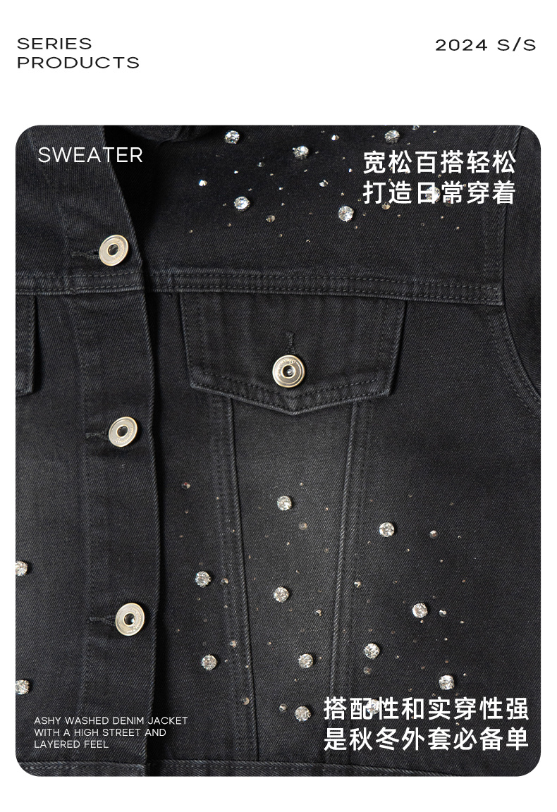 YKYB秋季新款潮流男女烫钻牛仔外套休闲百搭夹克