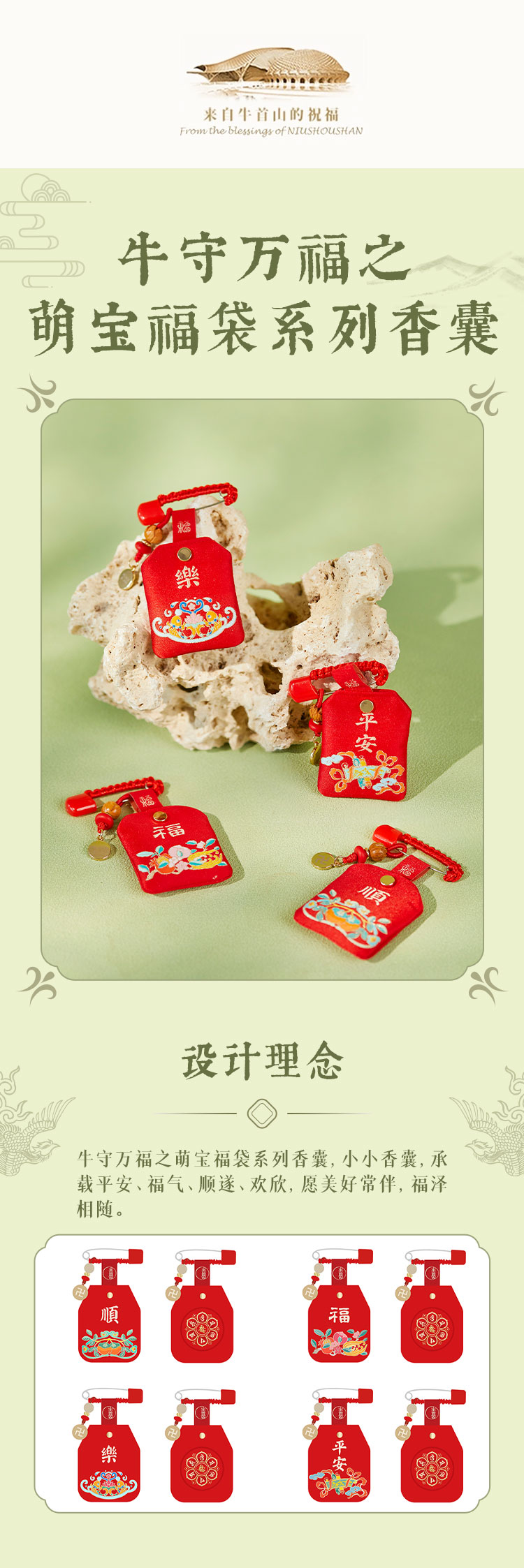 牛首山文创牛守万福之人生四喜香囊国风随身香包小挂件南京纪念品
