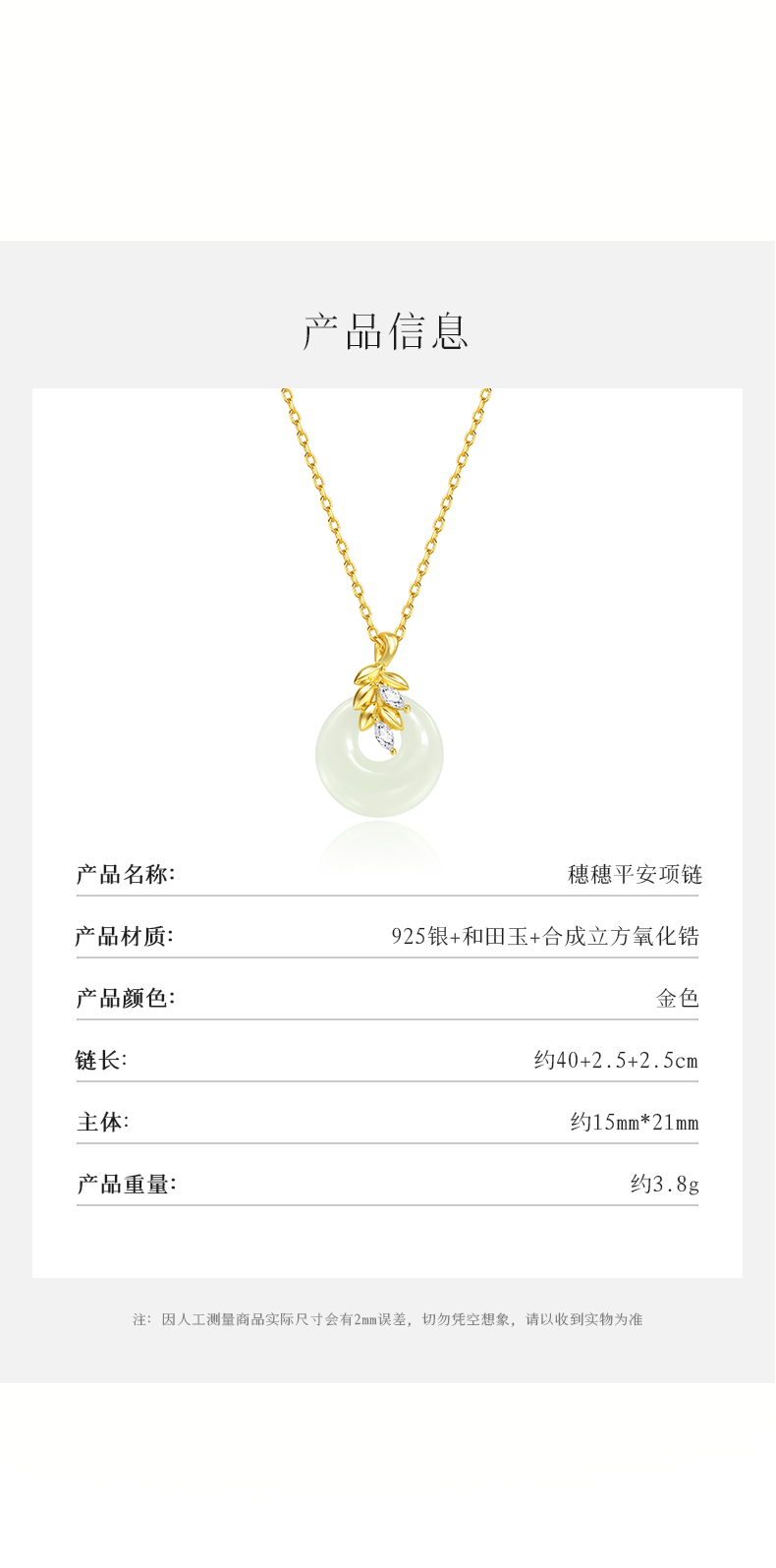 Fanci范琦×宫主 穗穗平安系列【穗穗平安项链】平安扣和田玉吊坠生日礼物送妈妈送女友 国风轻奢小众饰品礼物 下单即赠宫主精美礼盒+顺丰空运+运费险