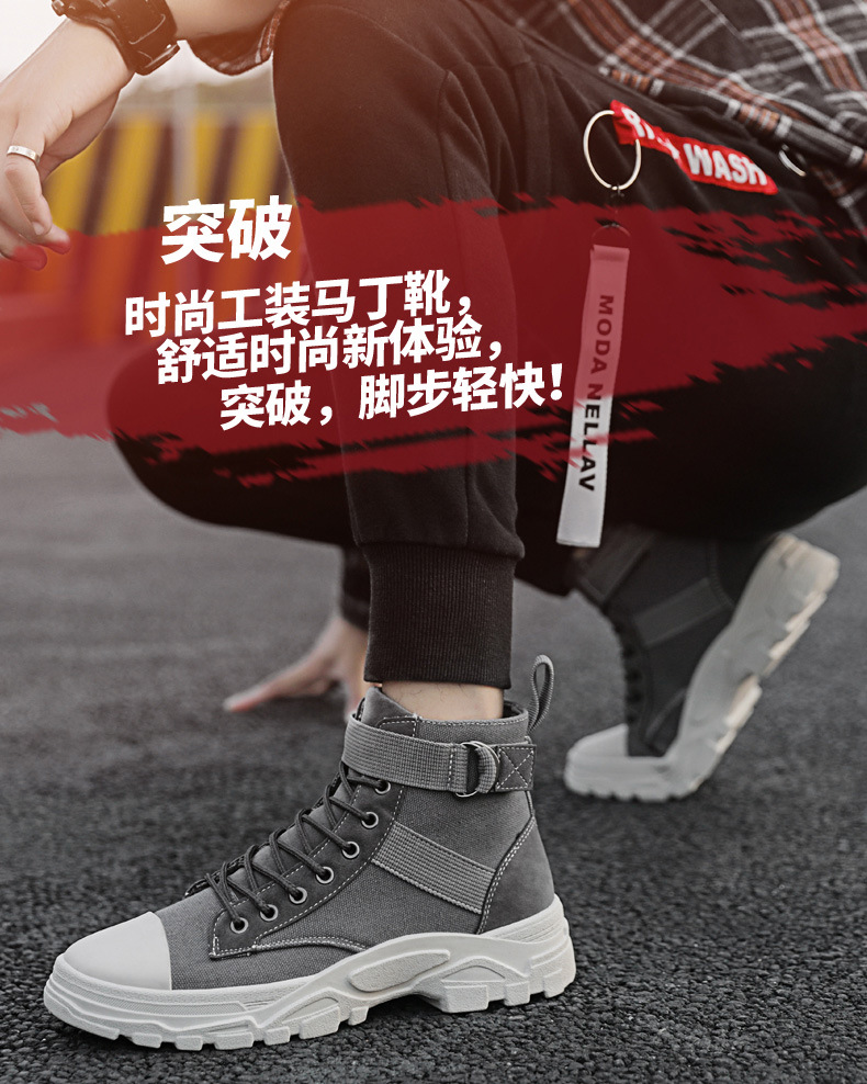 2024秋季新款男鞋高帮帆布马丁靴冬季韩版潮流休闲工装靴子男潮鞋新款爆款小红书同款