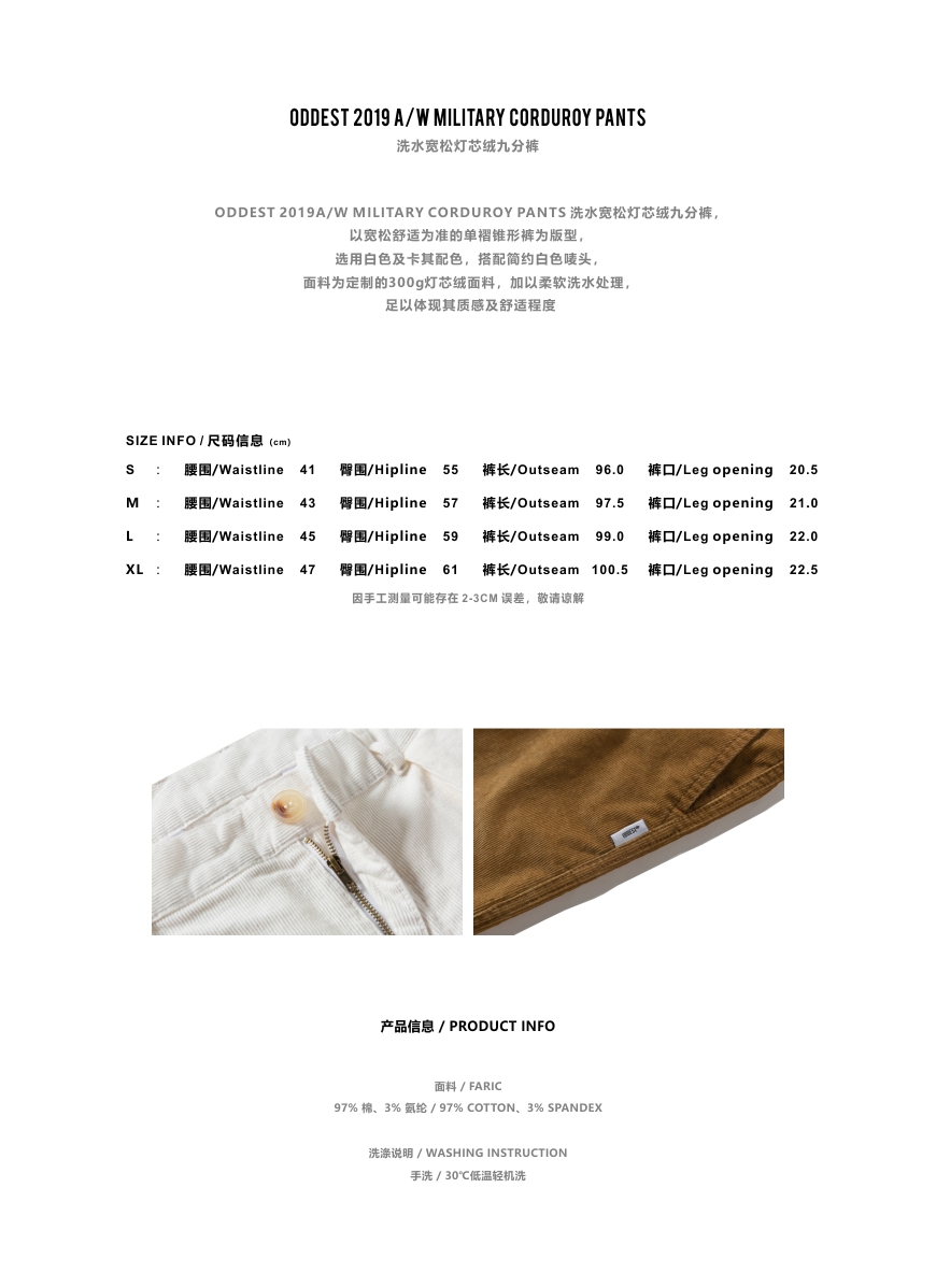 OURDAILYDOSE 19AW CORDUROY PANTS 宽松灯芯绒单褶九分休闲裤