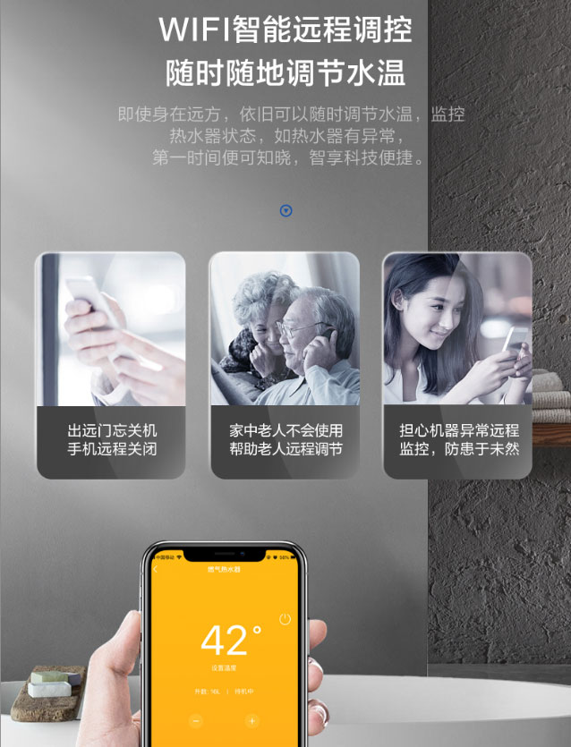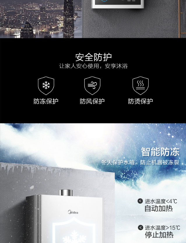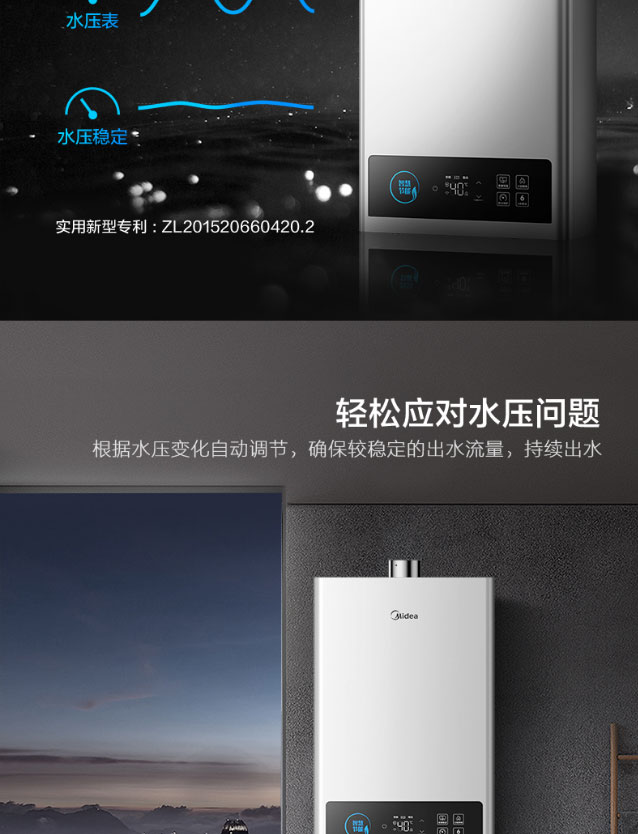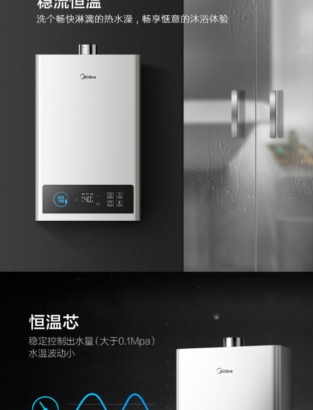 美的16L天燃气热水器 智能wifi操控 高清大屏 节能省气 稳流恒温JSQ30-16HCM