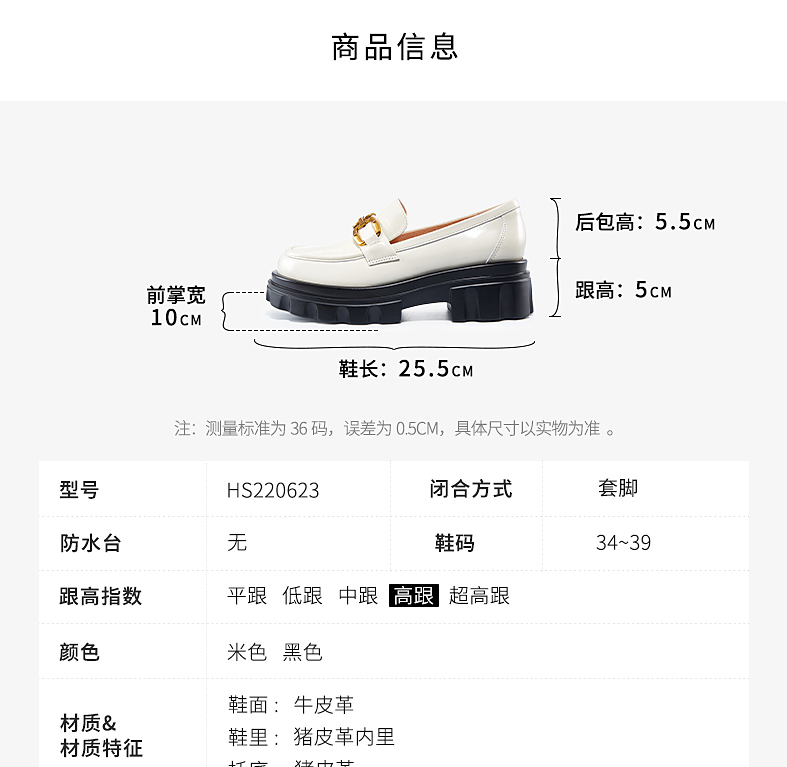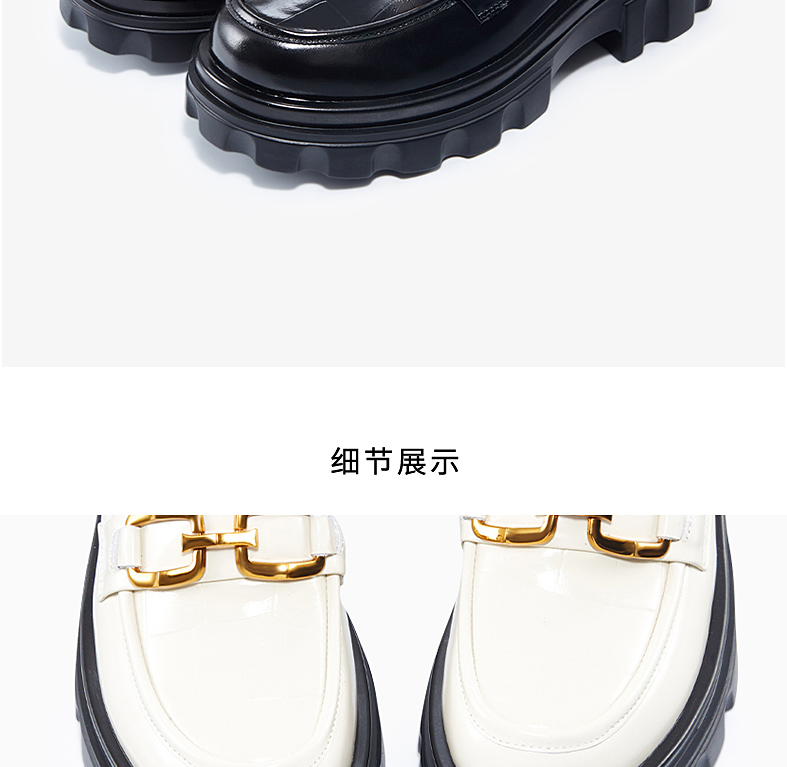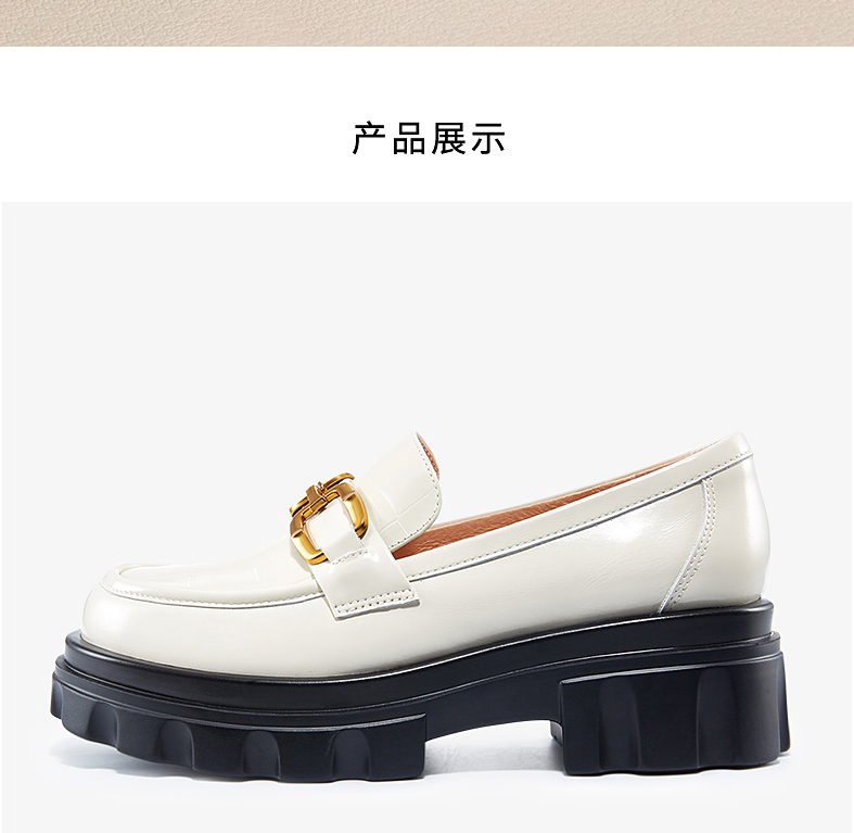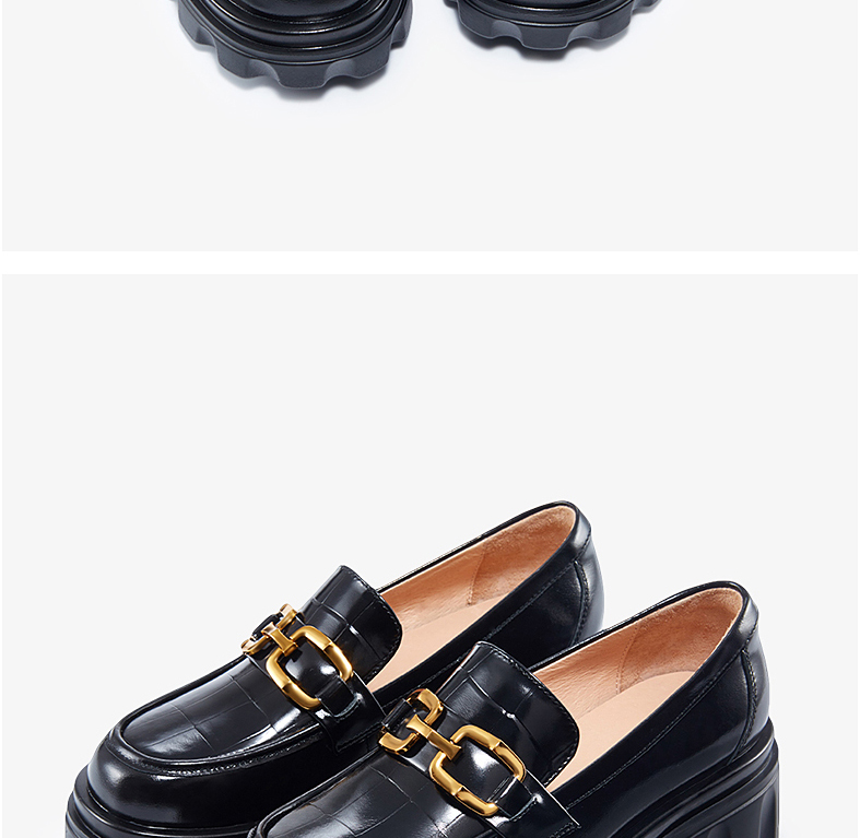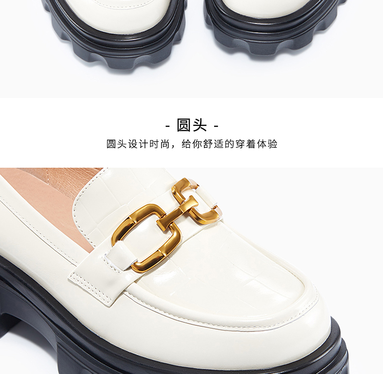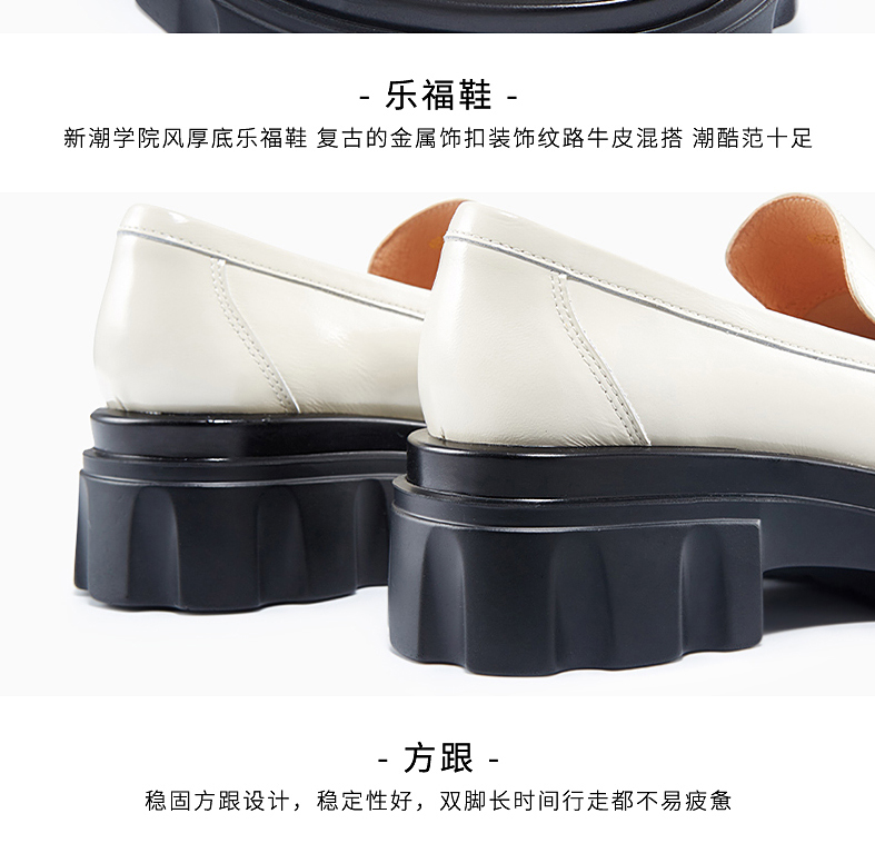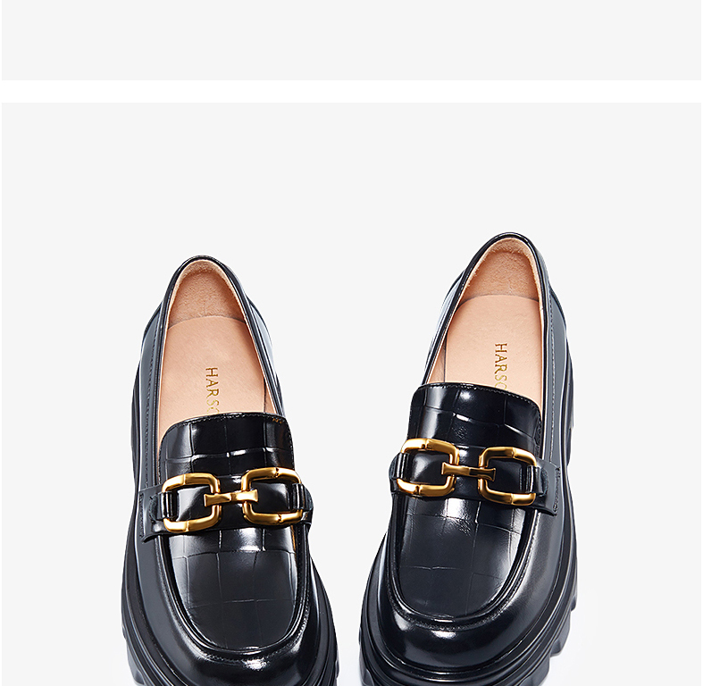 哈森女鞋2022春季新款休闲方跟圆头乐福鞋厚底深口饰扣女单鞋HS220623