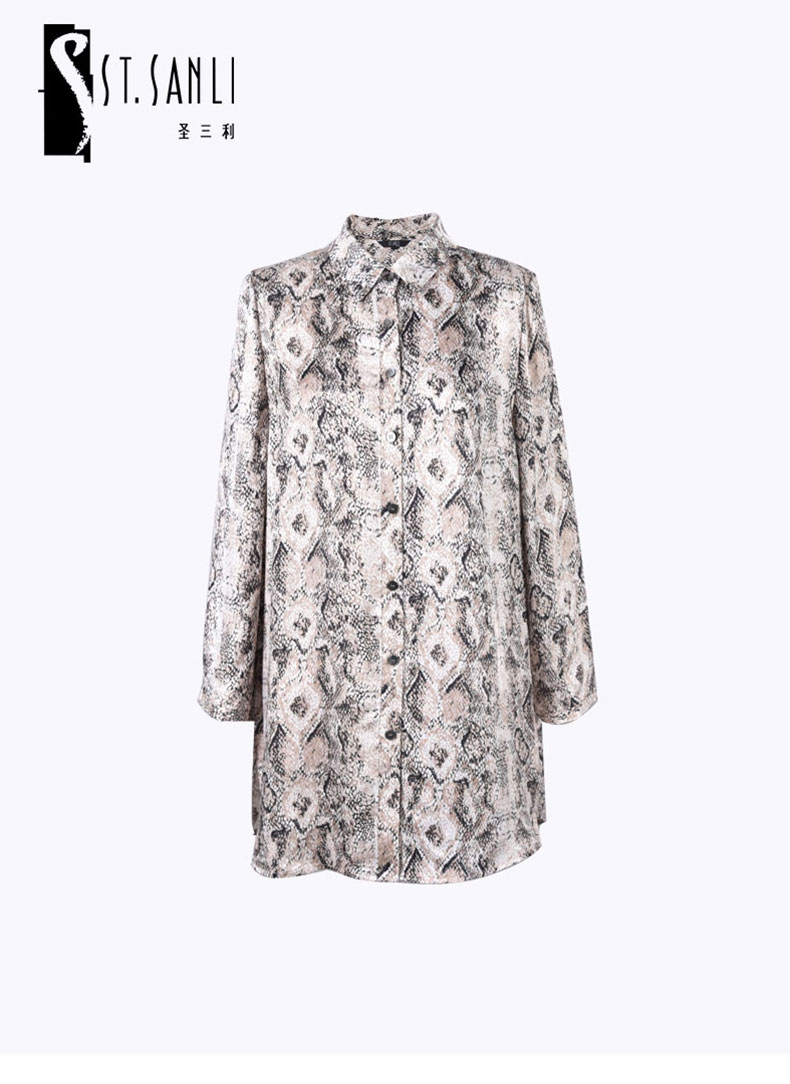 圣三利女装 简约休闲豹纹印花衬衫SL2034153