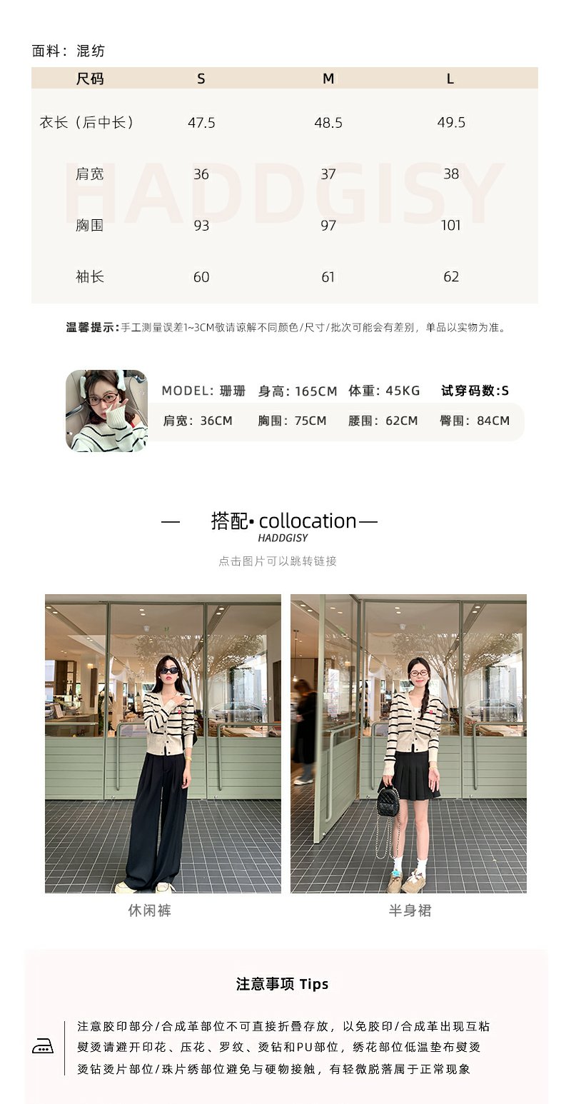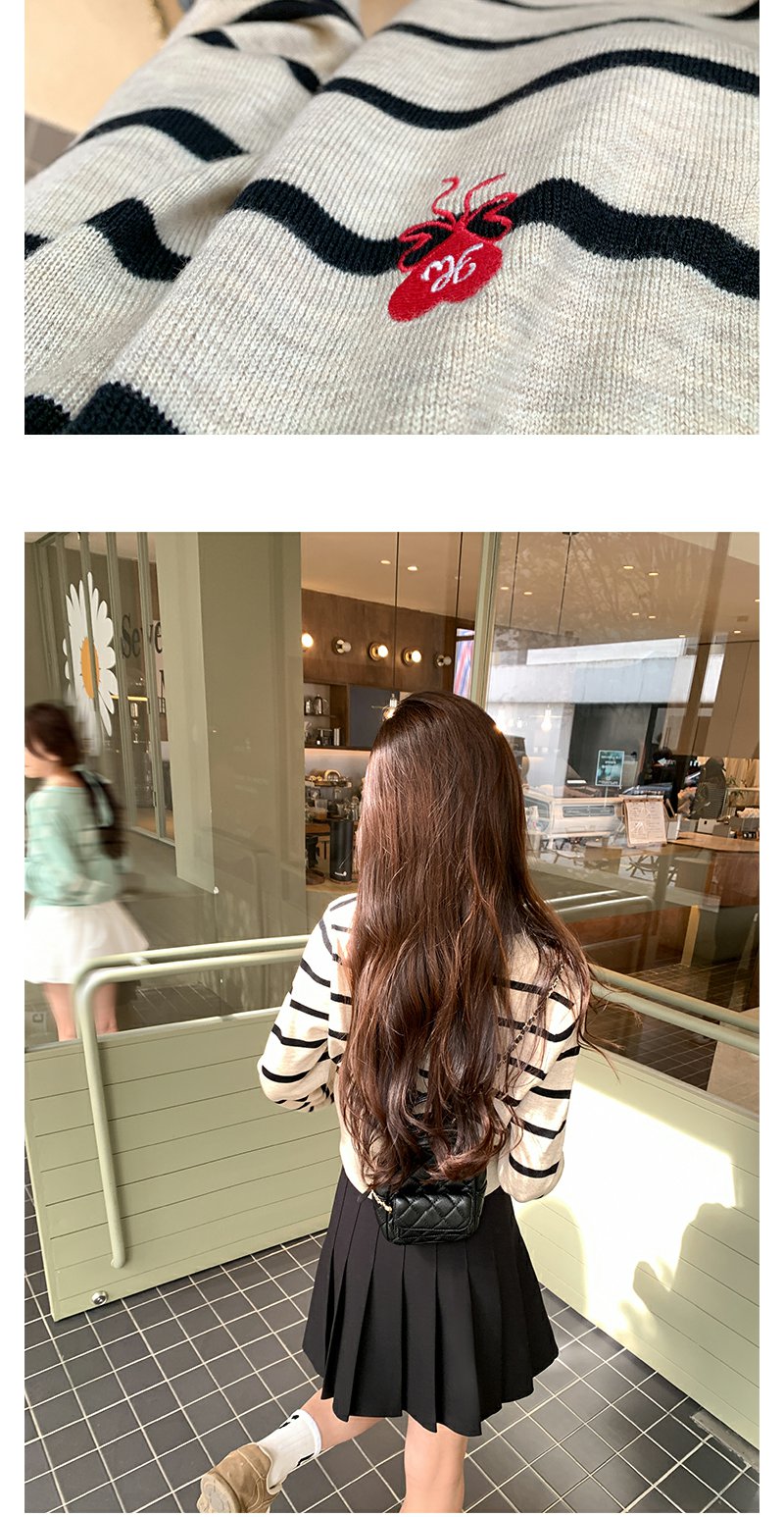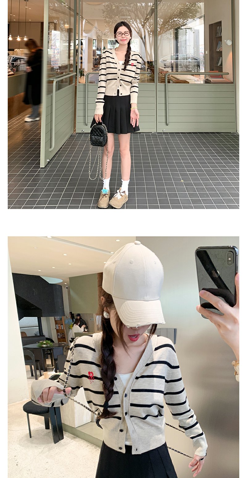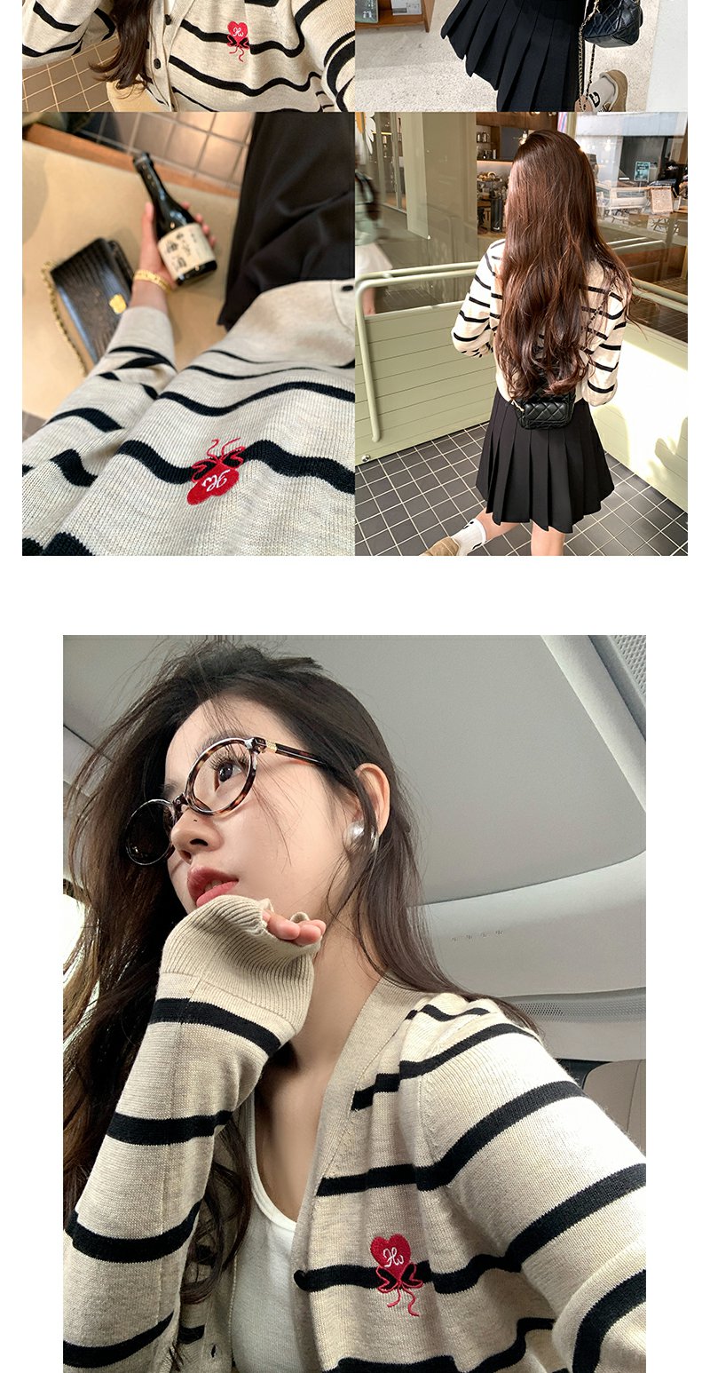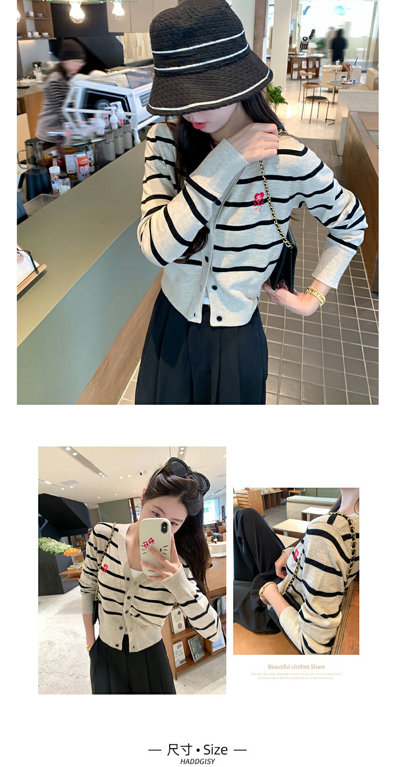 <曾小咸推荐>刺绣条纹短款针织开衫 日常169.99/件 立减80 秒杀89.99/件!!