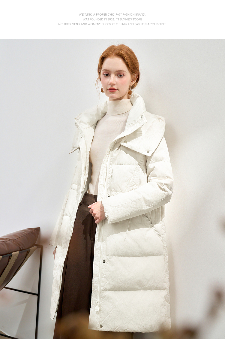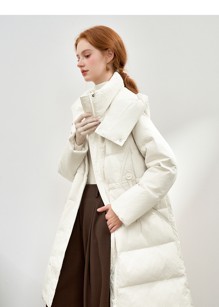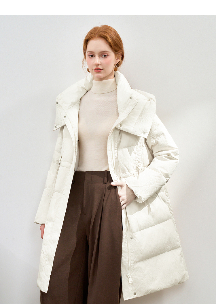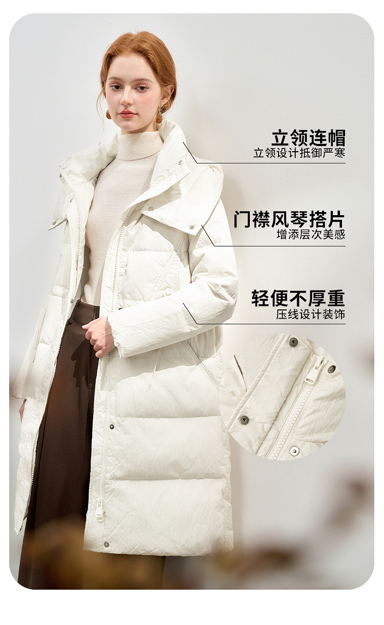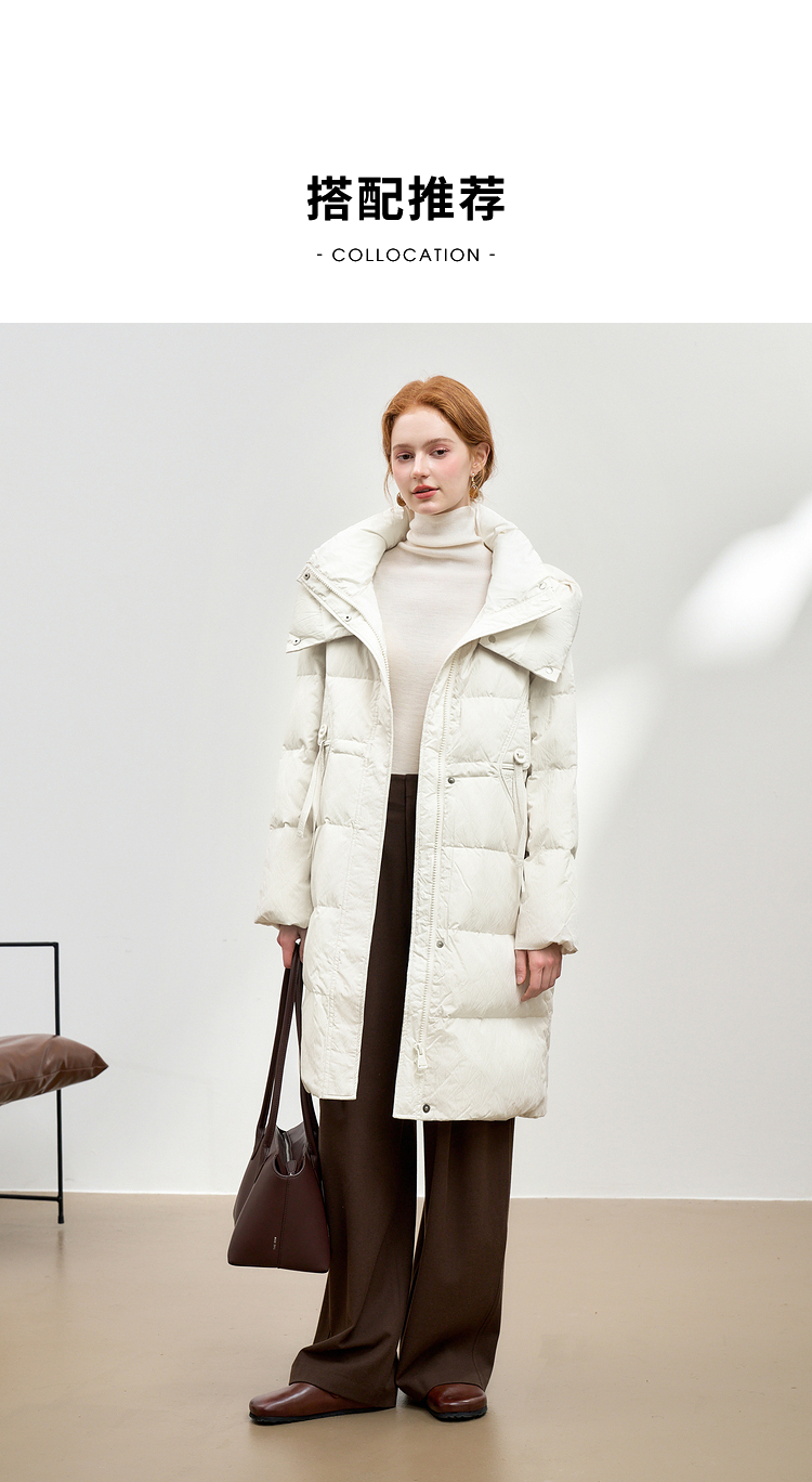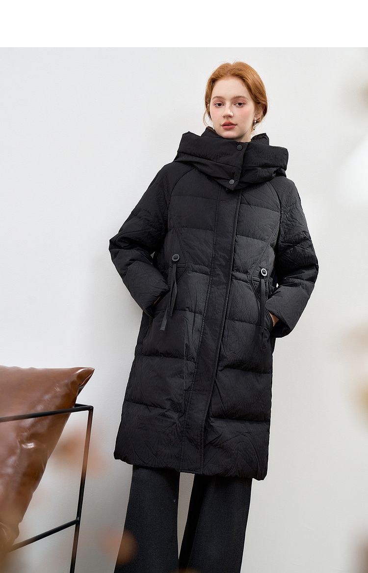 西遇黑色立领口袋设计感中长款羽绒服女冬季新款鸭绒面包服M0043187