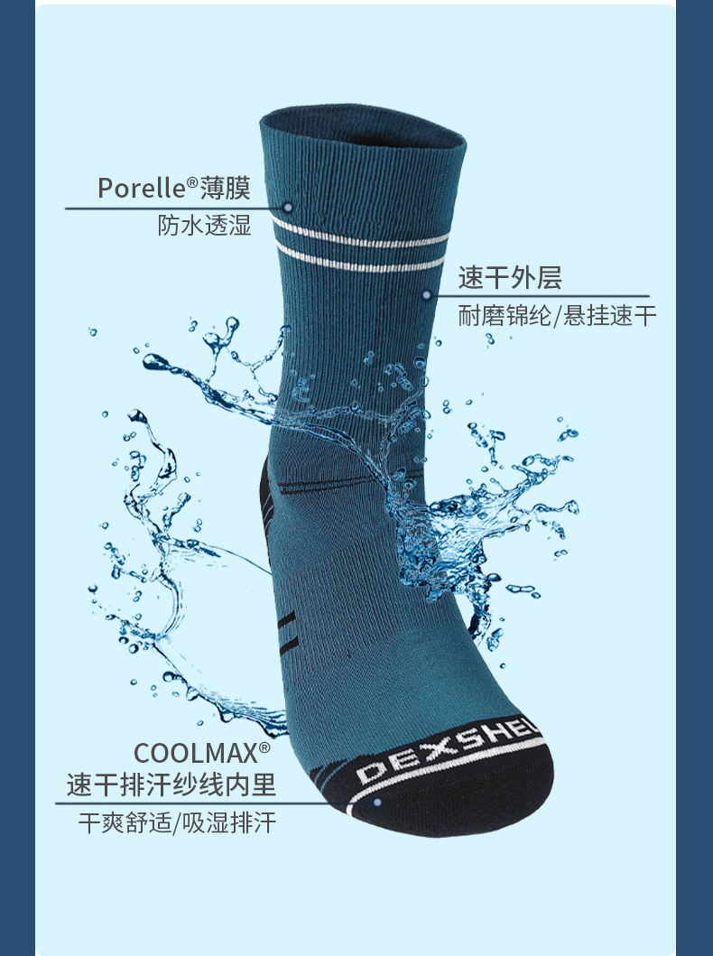 DexShell 戴适 短筒 轻适款 防水防泥浆越野跑步袜 DS20608