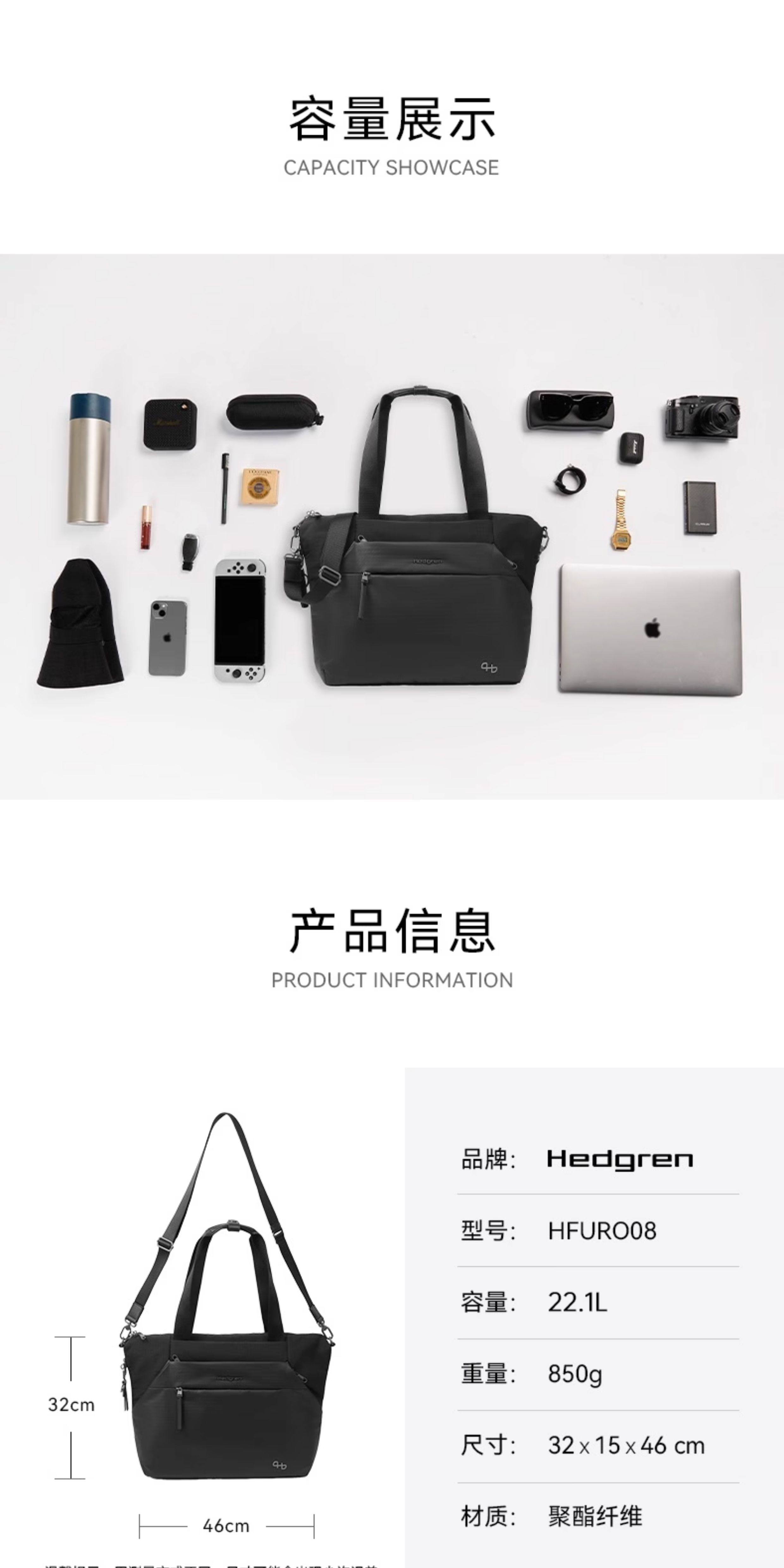 Hedgren 海格林 单肩包 HFURO08/003-F 黑色.