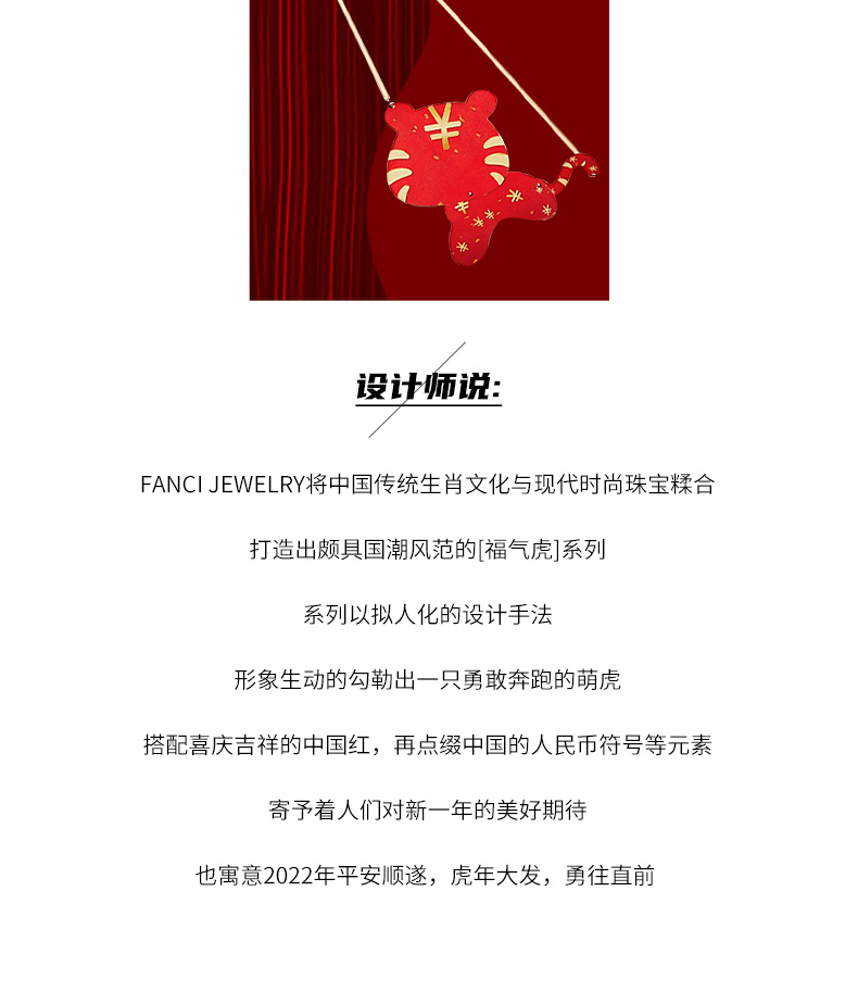 FANCI范琦始于2012年,以珠宝表达内心为初衷,聚焦不同亲密关系情感表达,联结无形情感,以情感符号「I FANCI U」传情达意,诠释“恋爱戴范琦,起点是你,终点亦是你”始终如一的恋爱价值观。