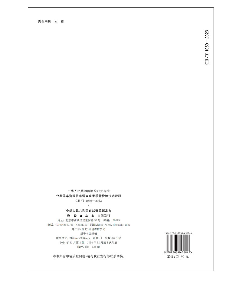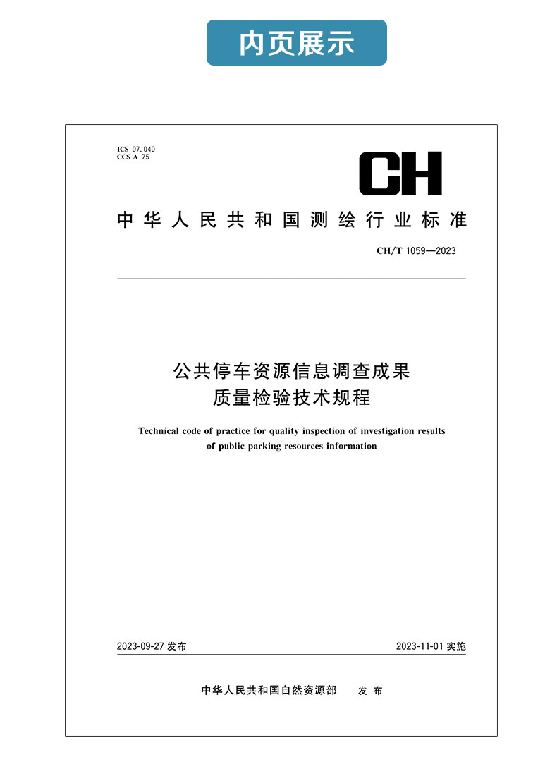 测绘行业标准·公共停车资源信息调查成果质量检验技术规程——CHZ 1059—2023