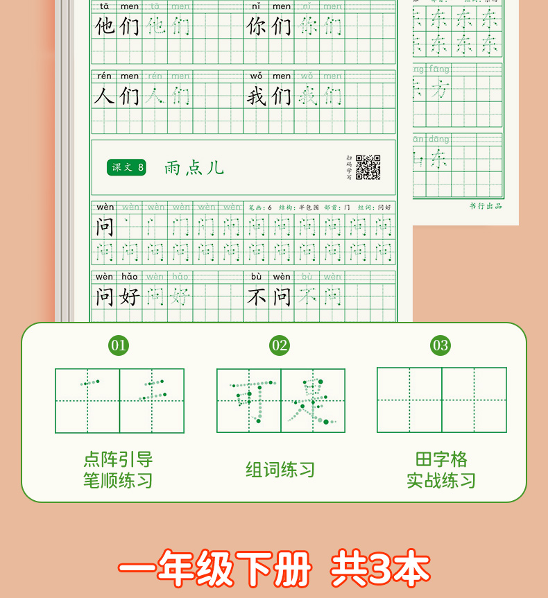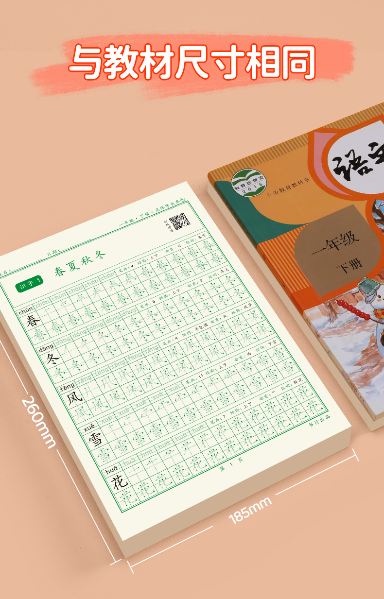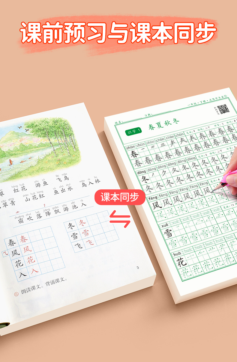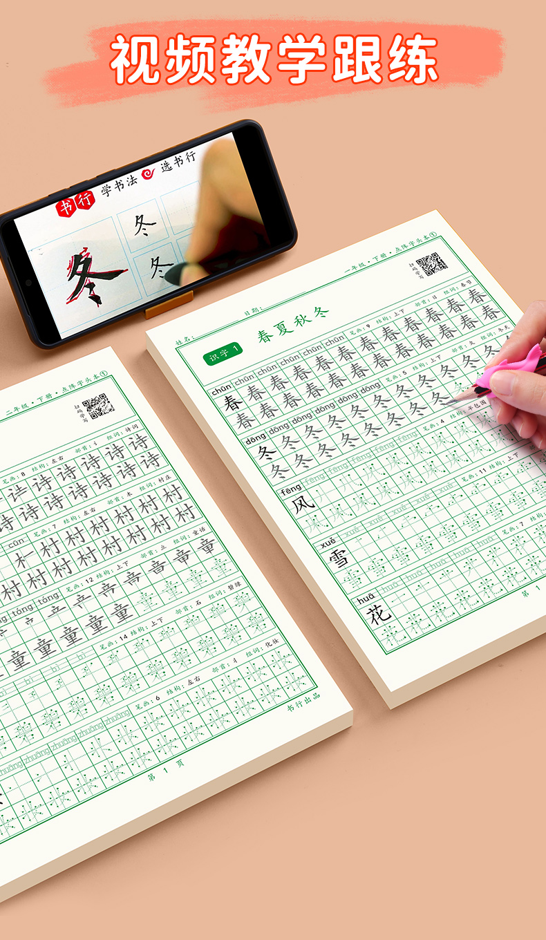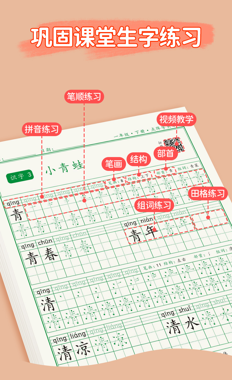 【抖音同款】1-3年级人教版语文同步正楷点阵描红练字帖