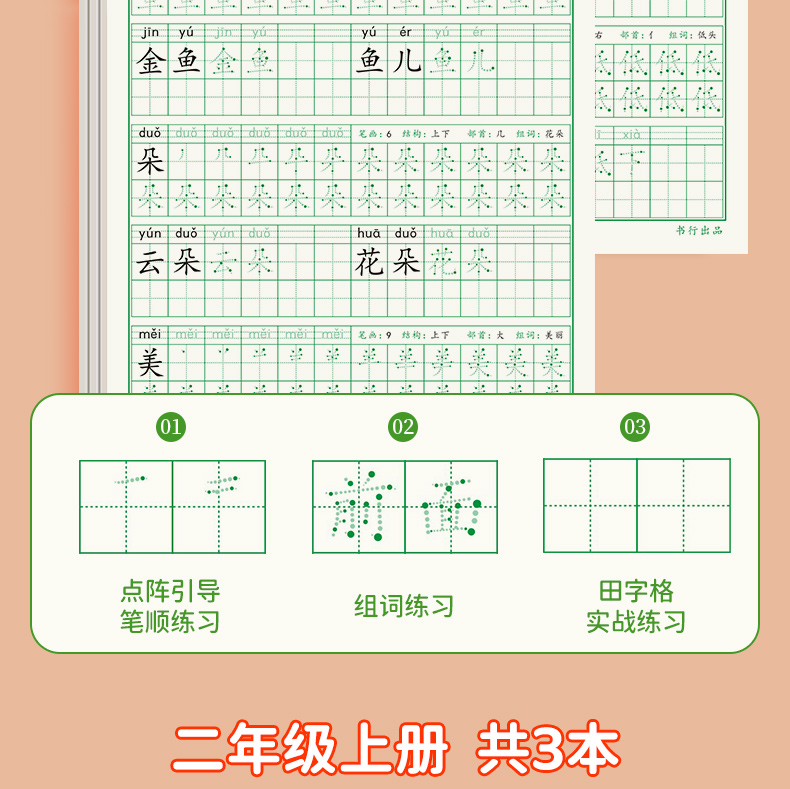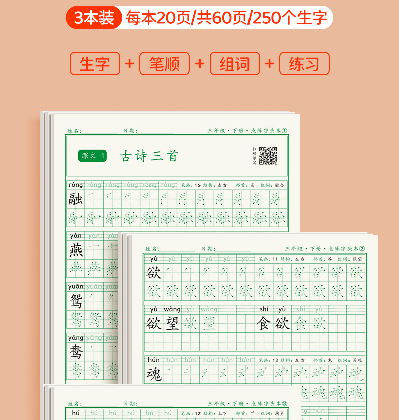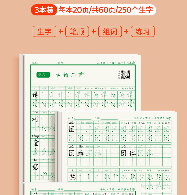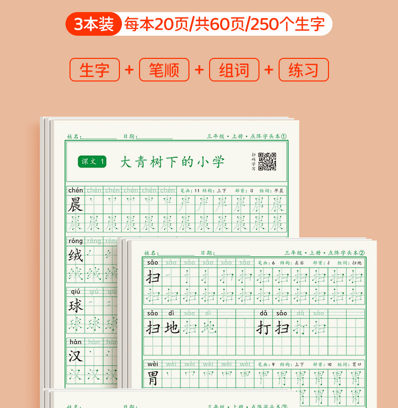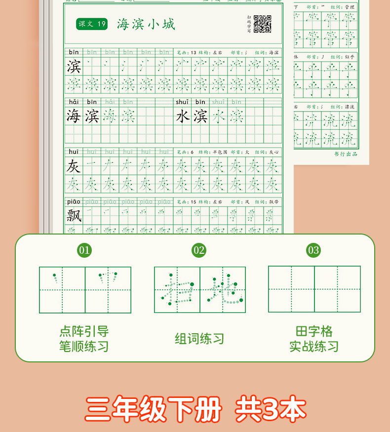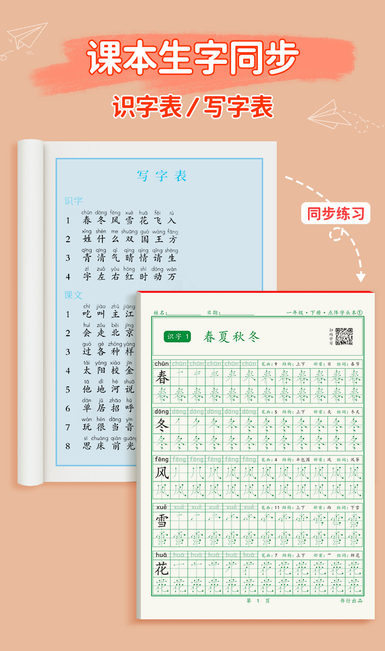 【抖音同款】1-3年级人教版语文同步正楷点阵描红练字帖