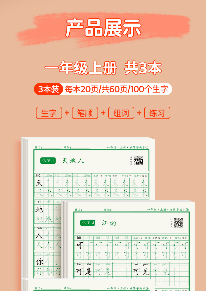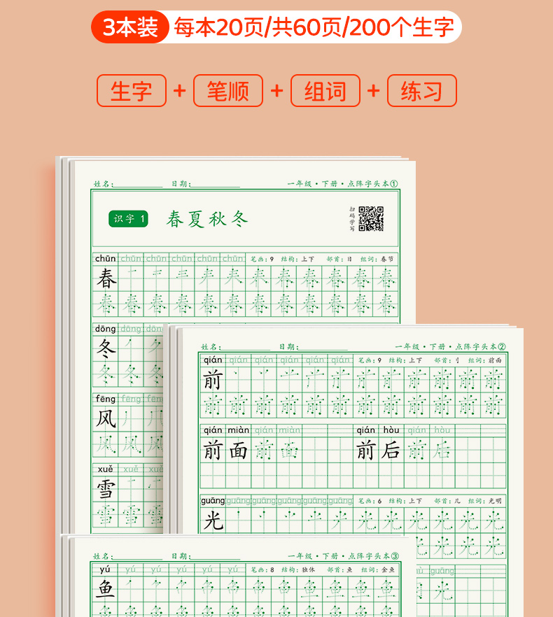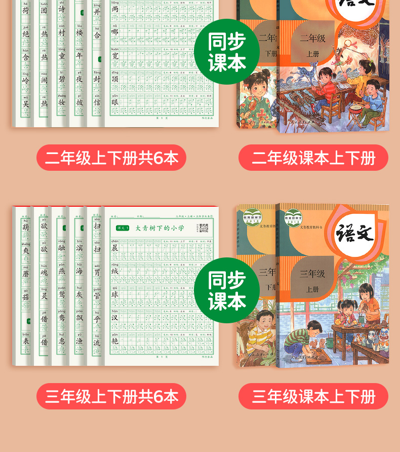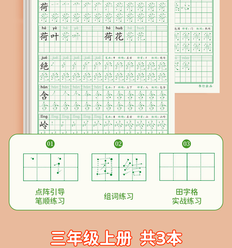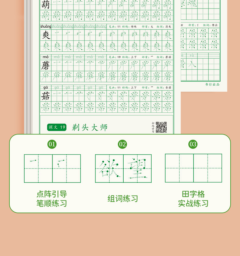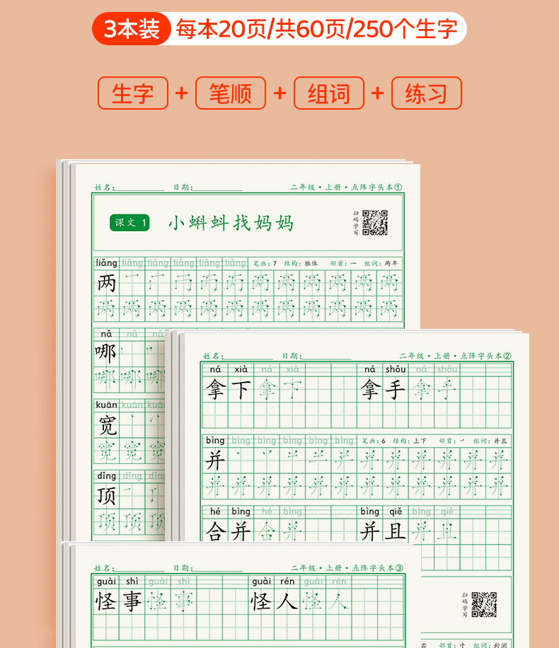 【抖音同款】1-3年级人教版语文同步正楷点阵描红练字帖