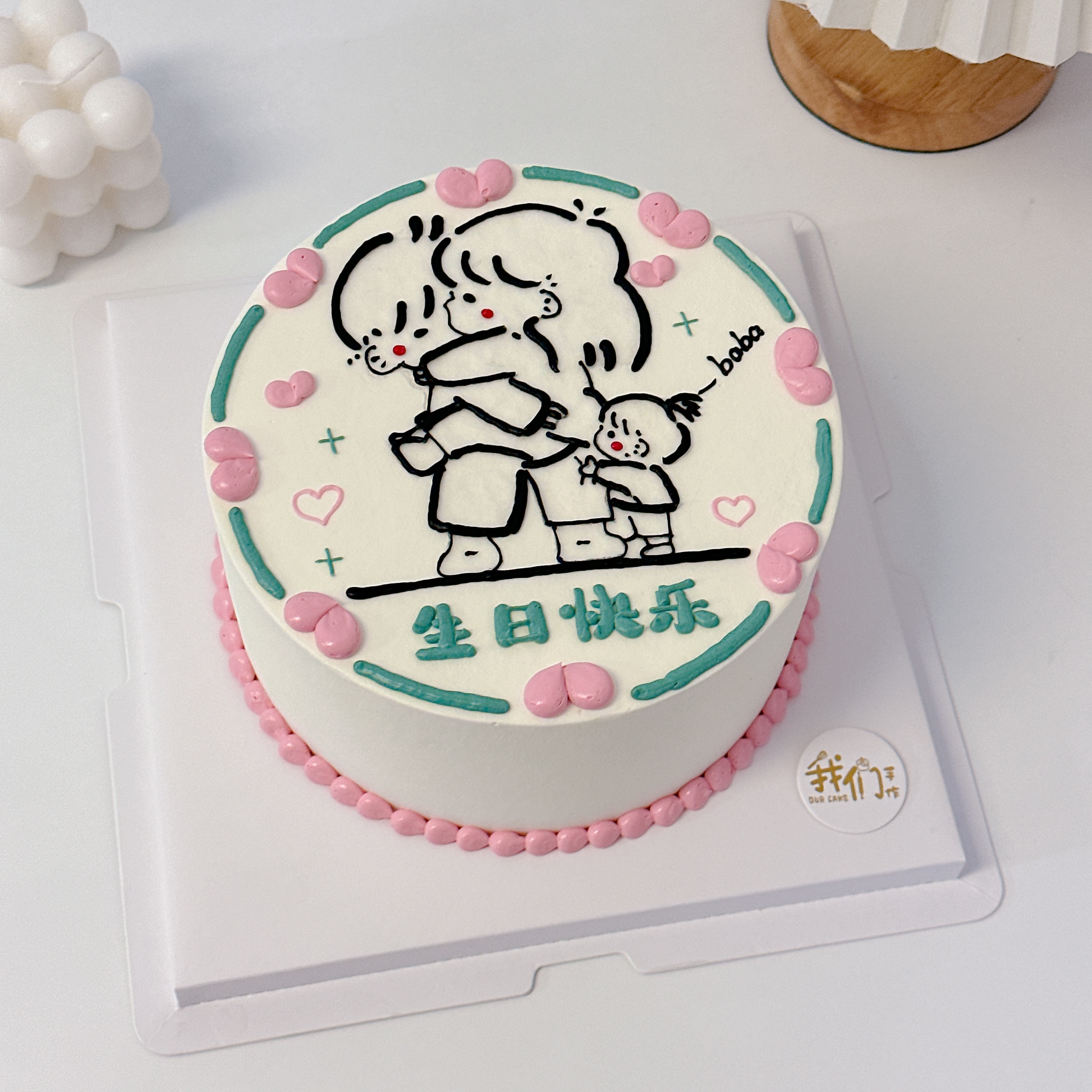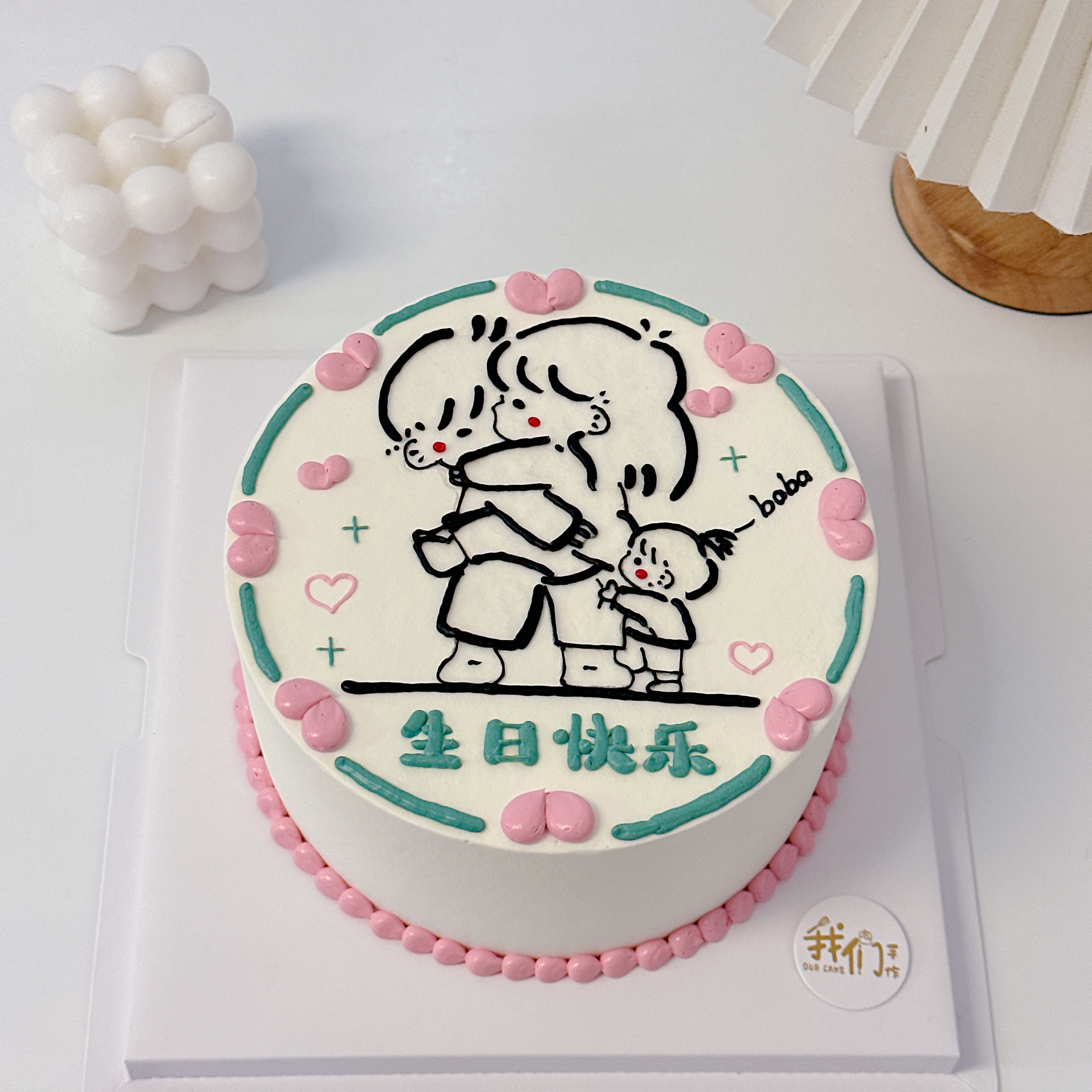 一家三口手绘卡通蛋糕-低糖处理无添加