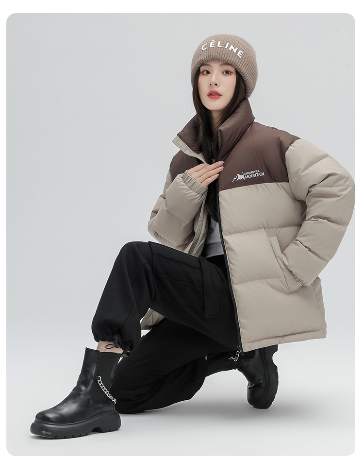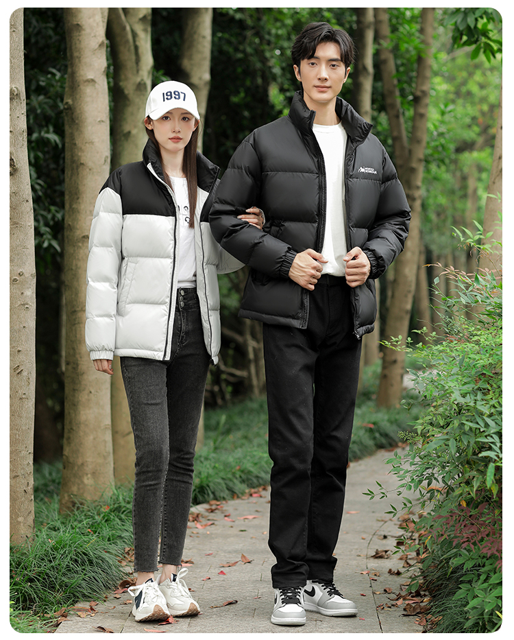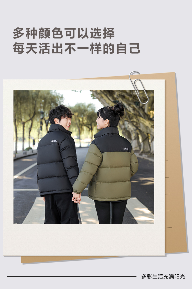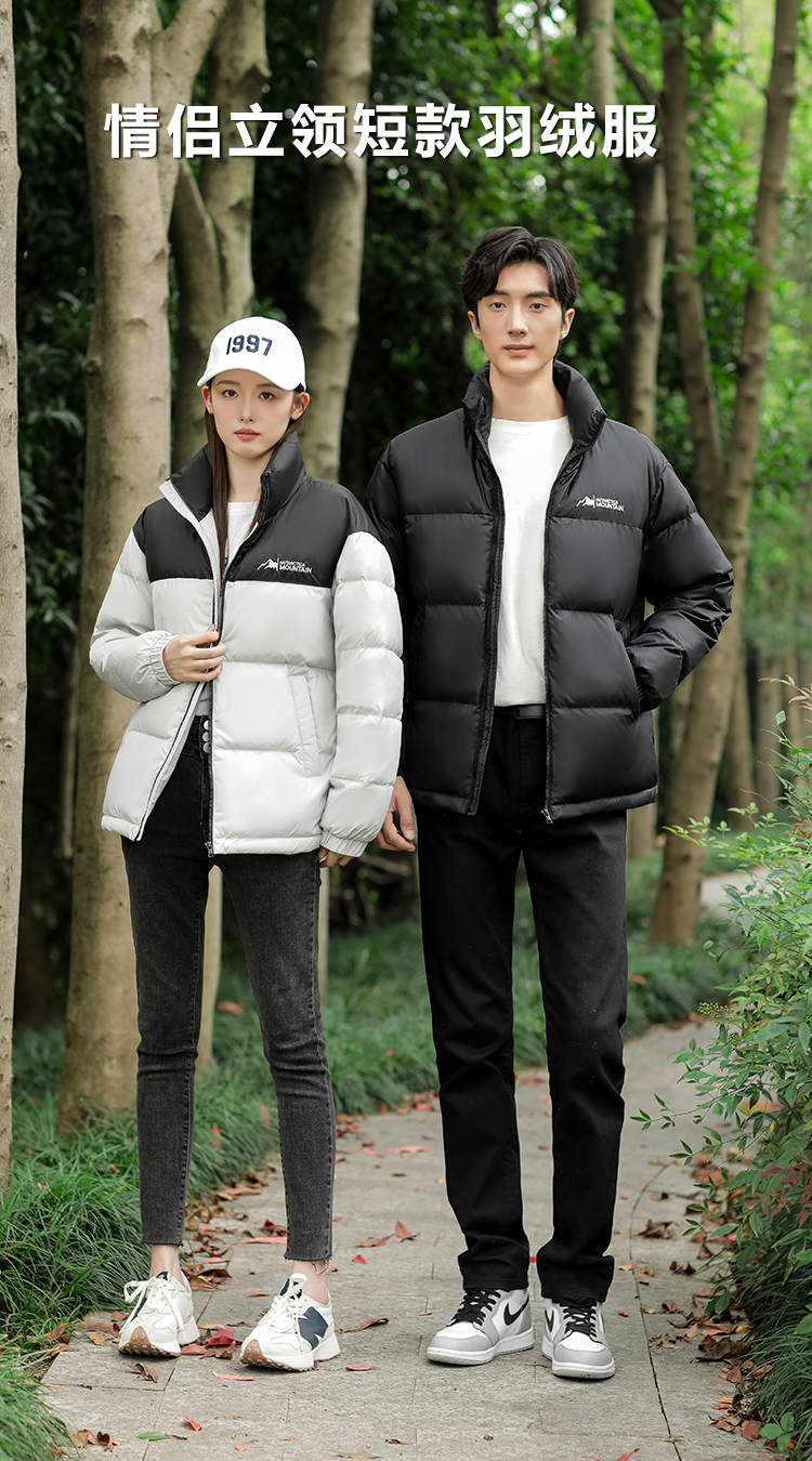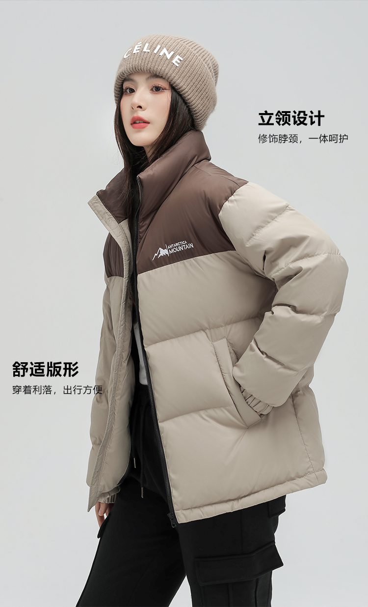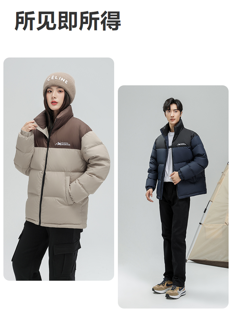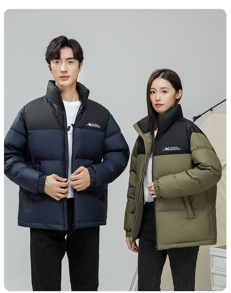 半身缘男女装 冬季男女同款三防面料立领短款撞色拼接羽绒服2566