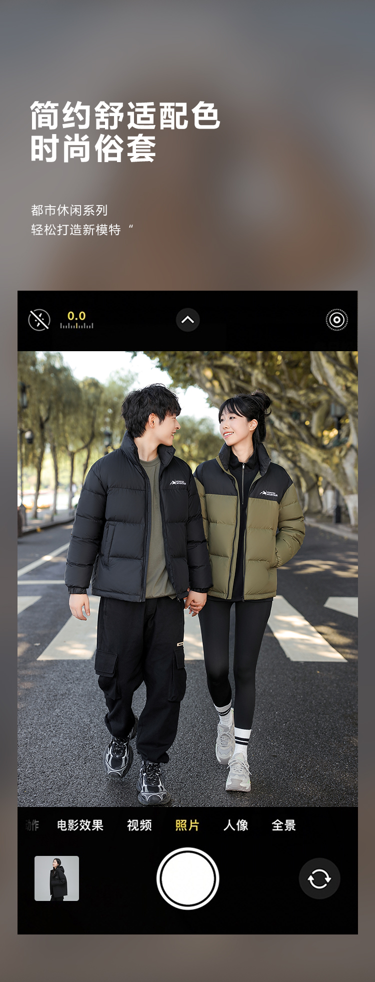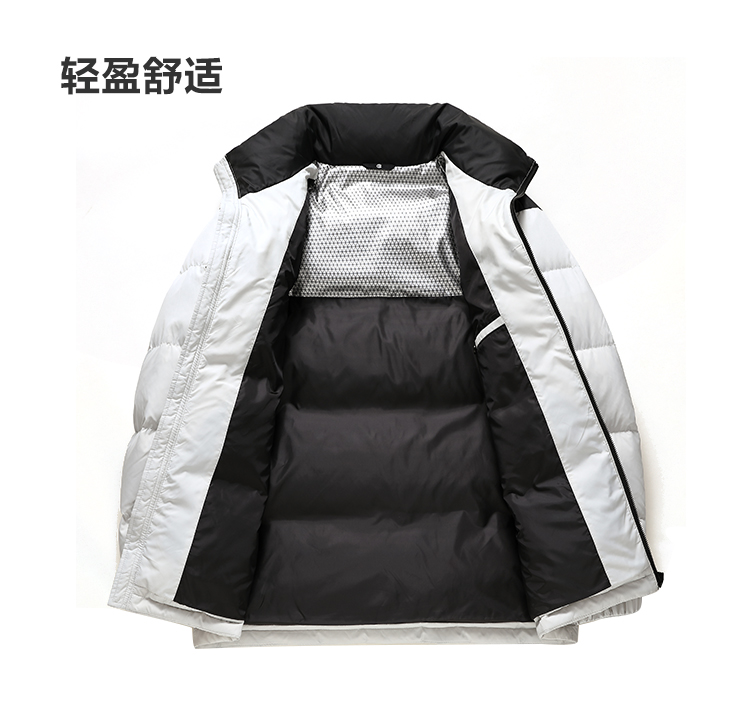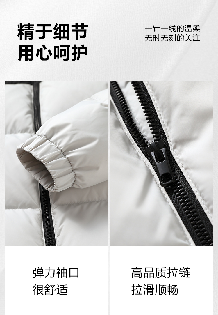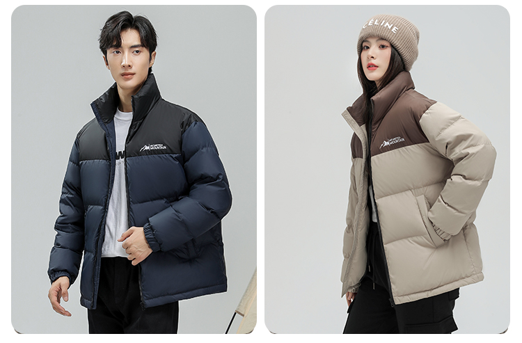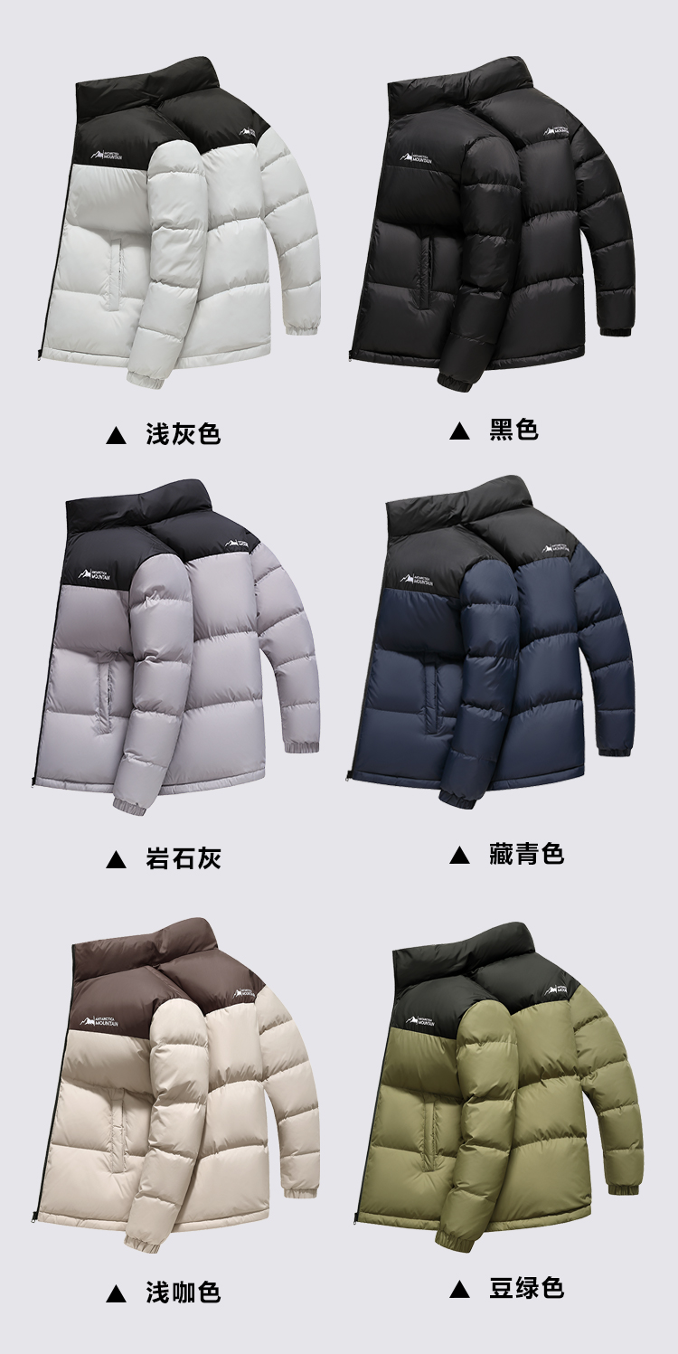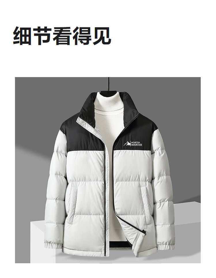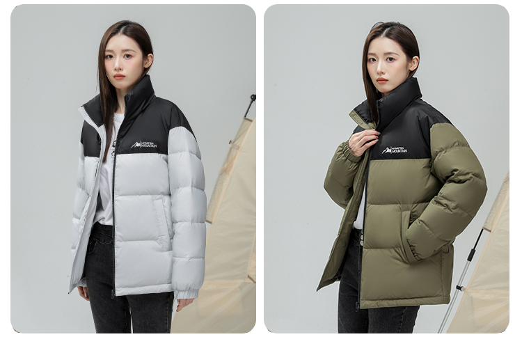 半身缘男女装 冬季男女同款三防面料立领短款撞色拼接羽绒服2566