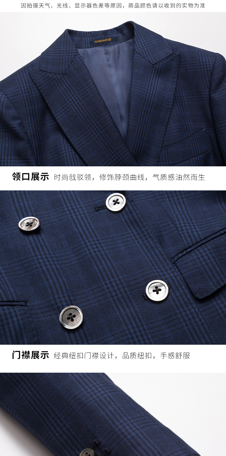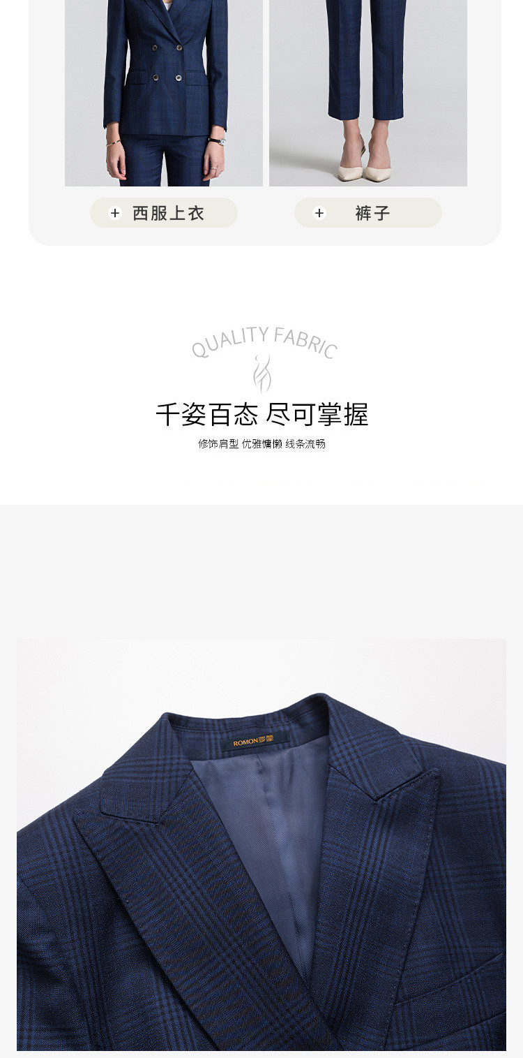 【上衣+裤子】罗蒙春季双排扣修身西服套装女士正装商务通勤气质西装