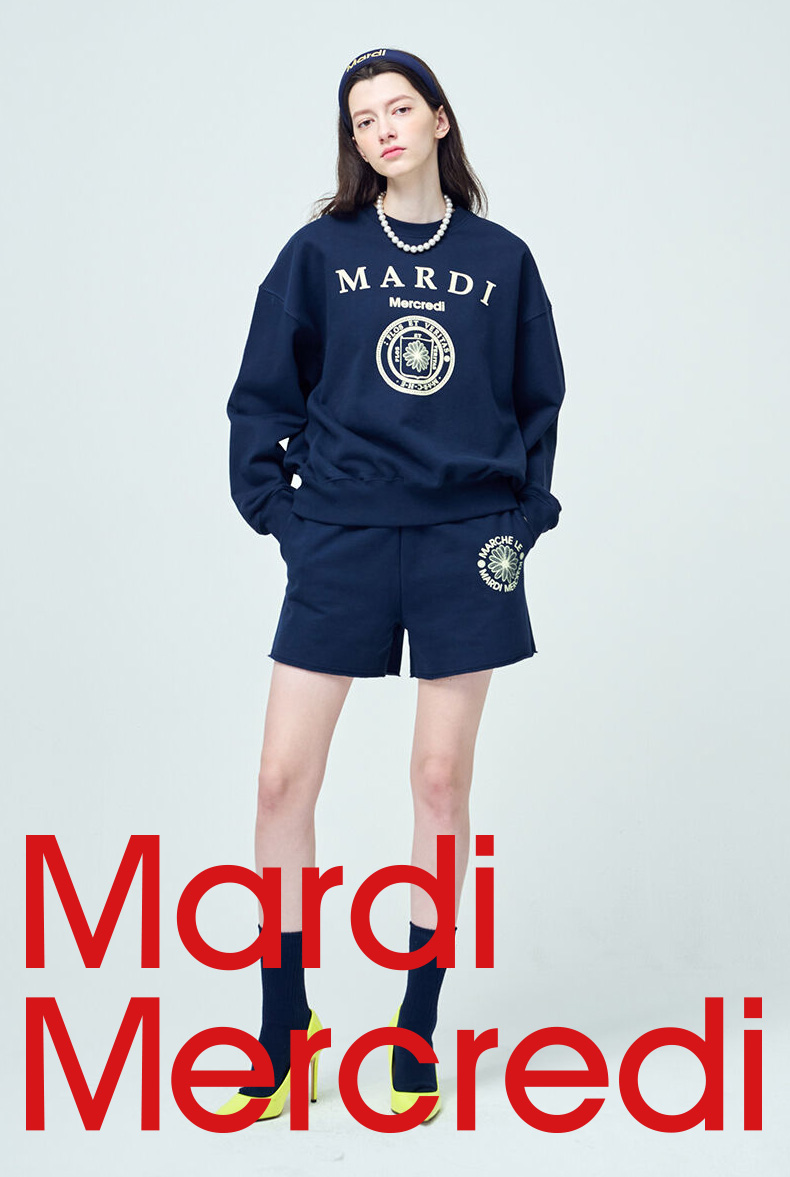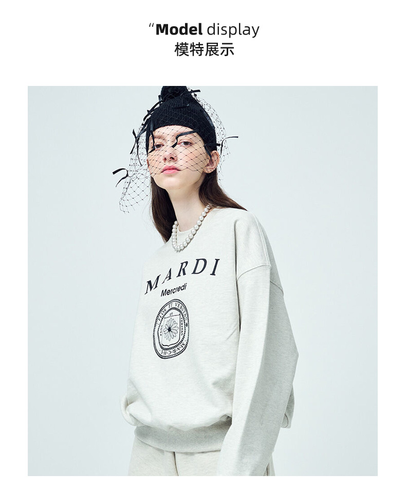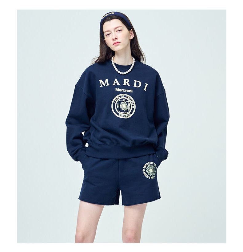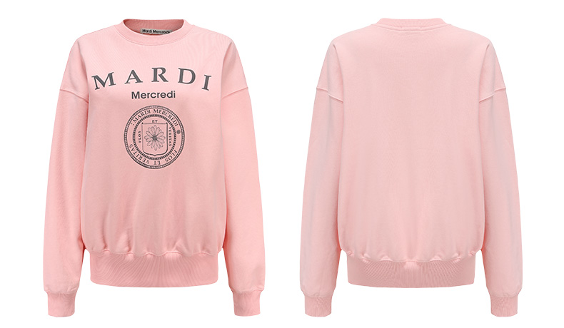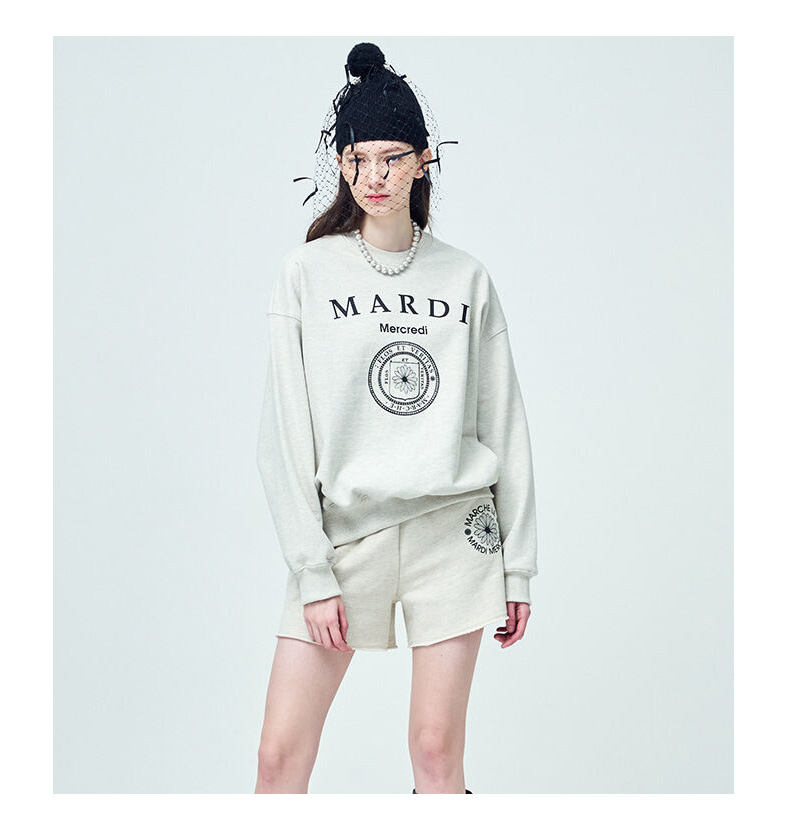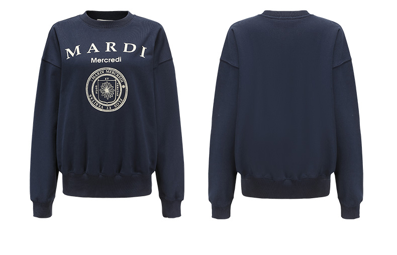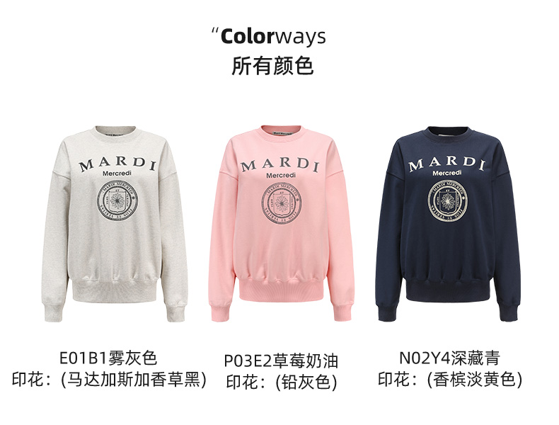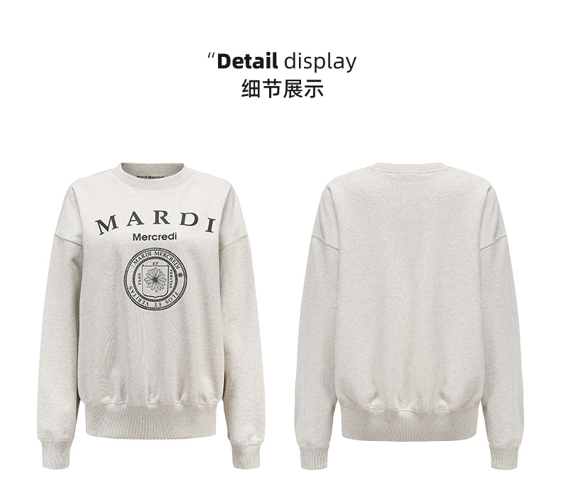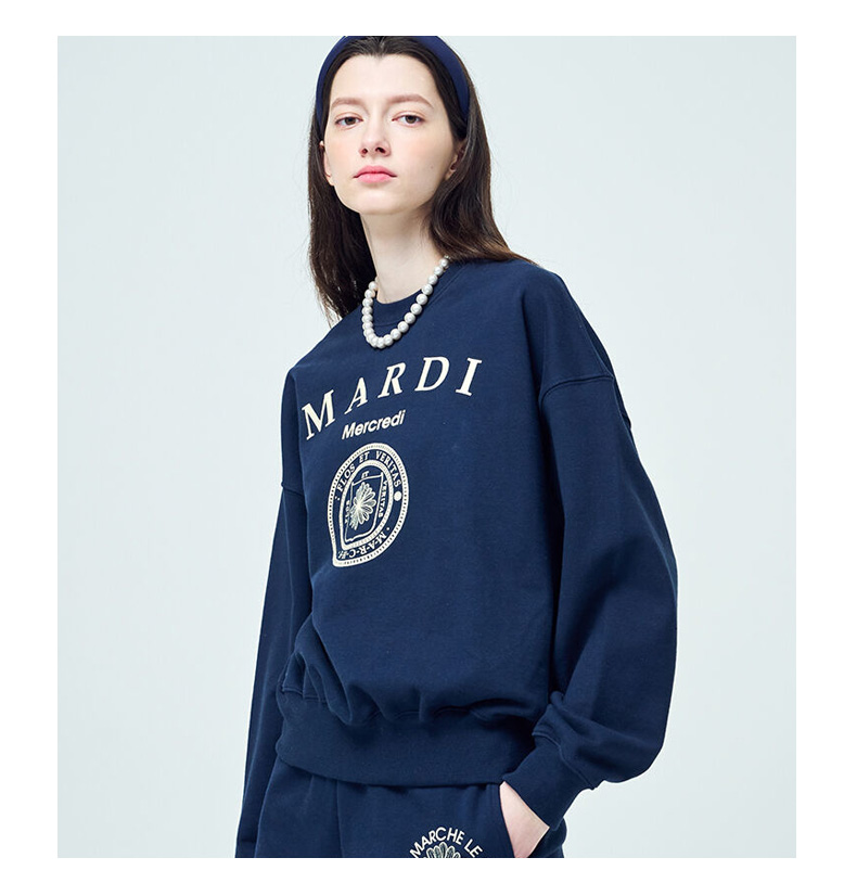 【Mardi Mercredi】徽章圆领印花休闲卫衣男女同款百搭显瘦宽松上衣(不加绒卫衣)