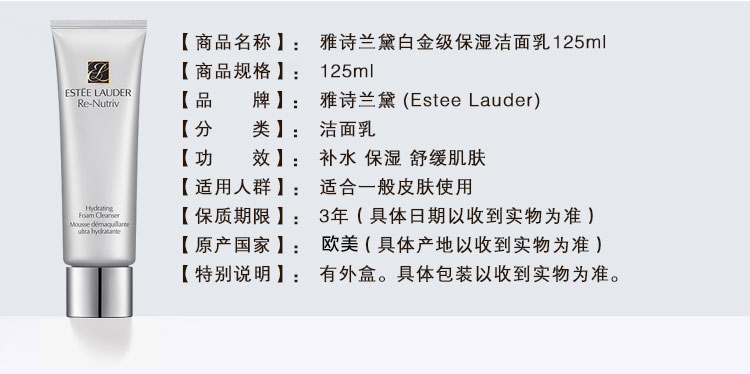美国 ESTEE LAUDER 雅诗兰黛 白金级保湿洁颜乳 125ml