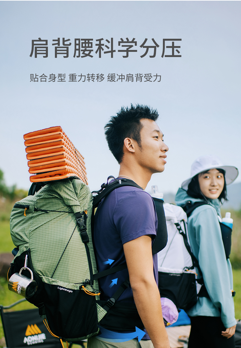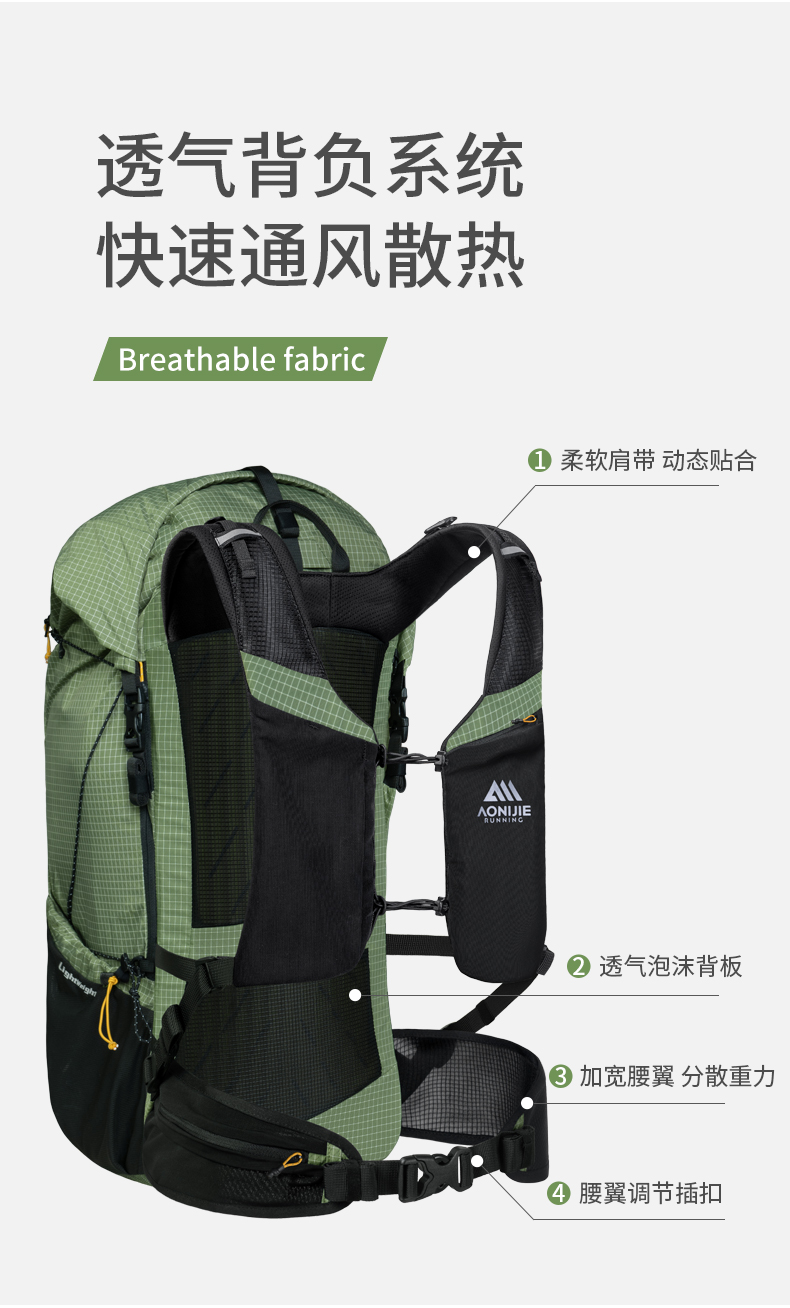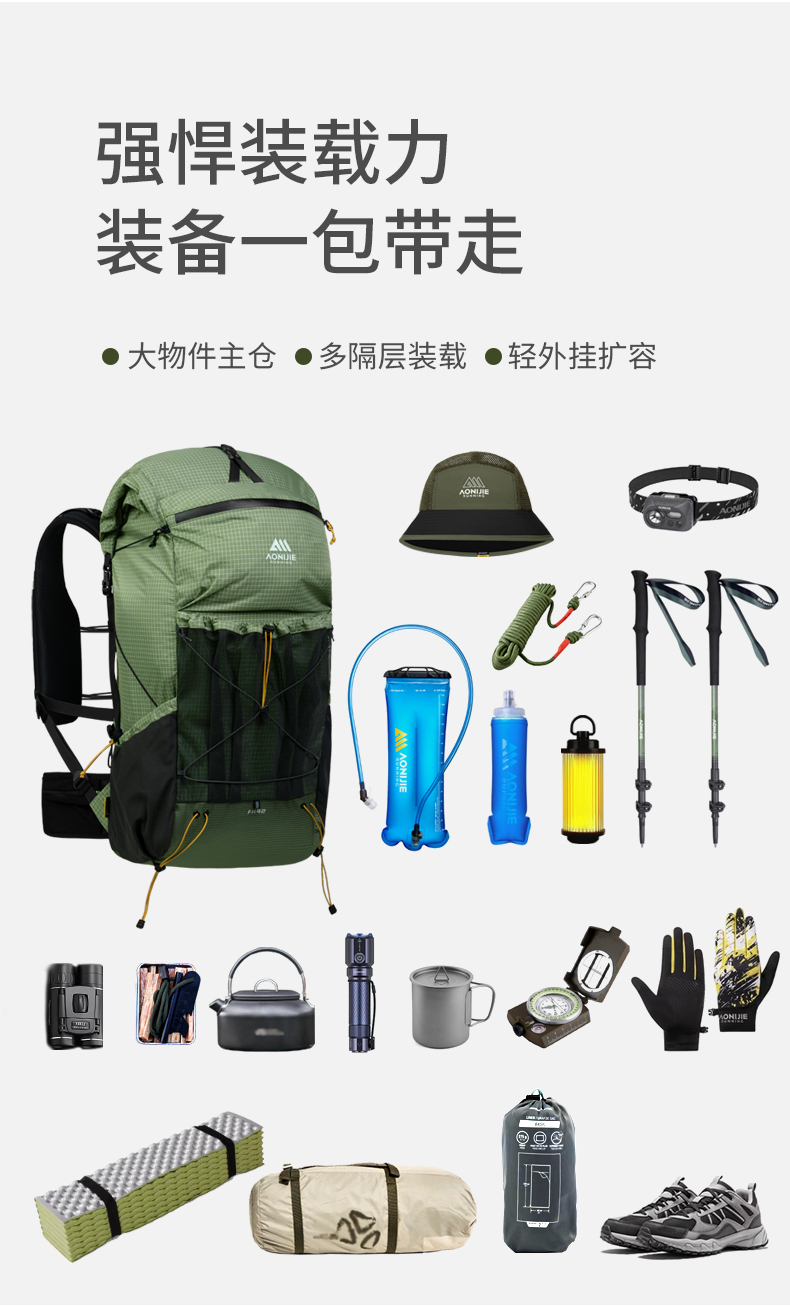 奥尼捷徒步背包女超轻量化户外登山包男42L大容量超轻专业双肩包