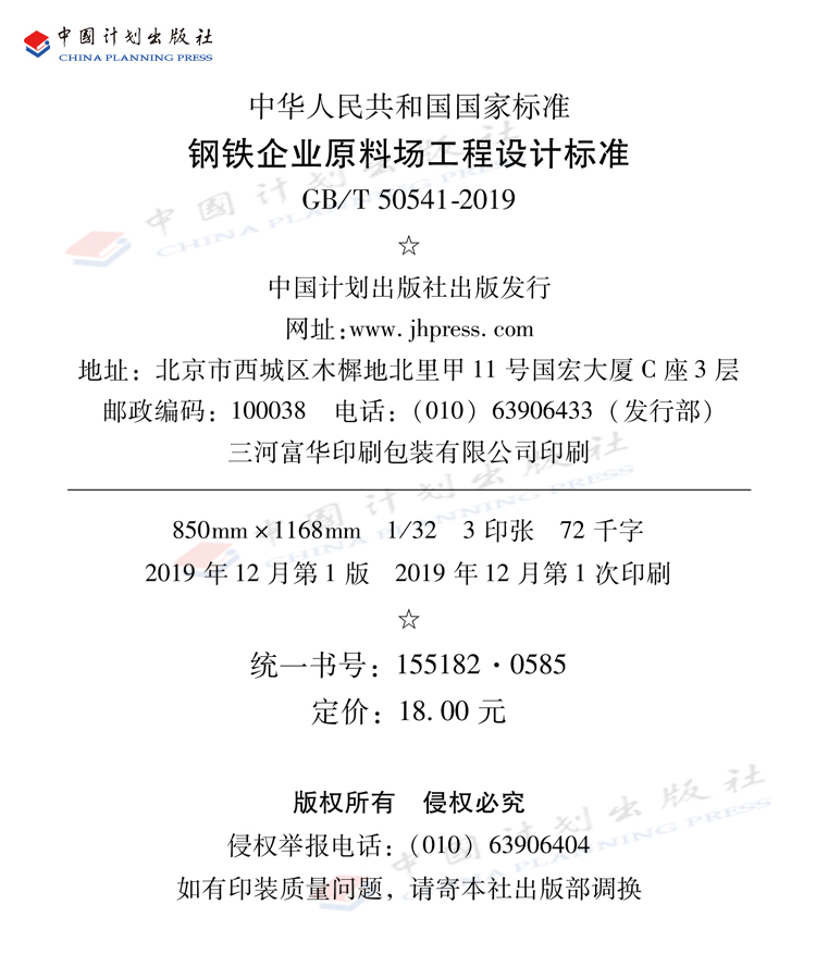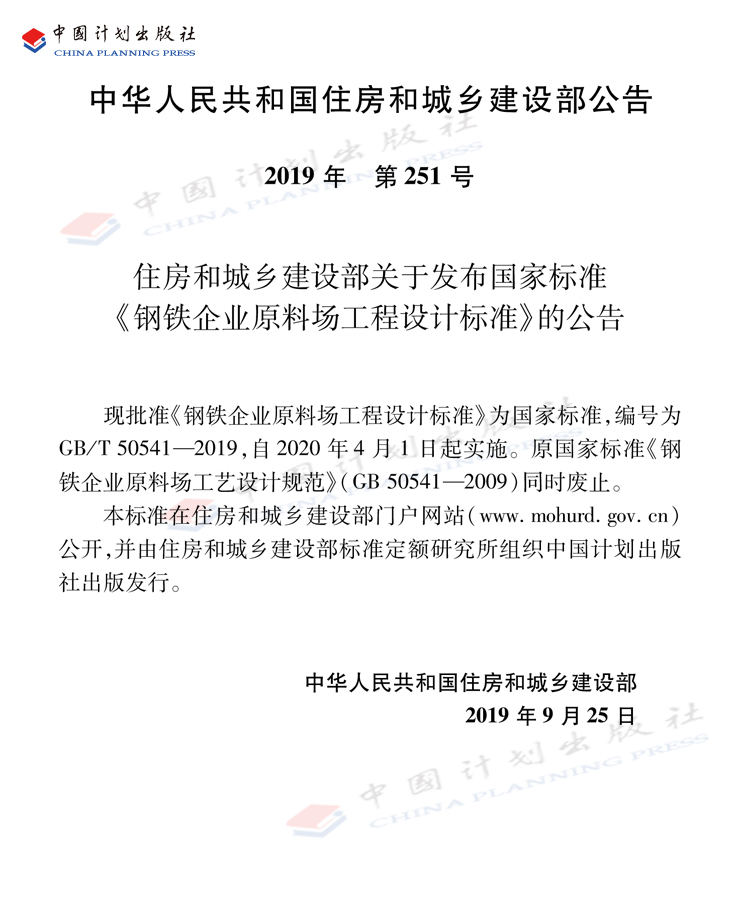 书名:GB/T 50541-2019 钢铁企业原料场工程设计标准
