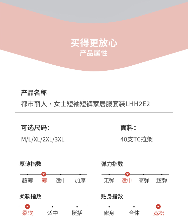 都市丽人女士棉质短袖套装薄40支TC拉架生活家居短袖类LHH2E2