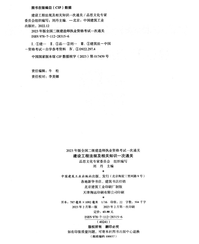 书名:2023年二建 建设工程法规及相关知识一次通关