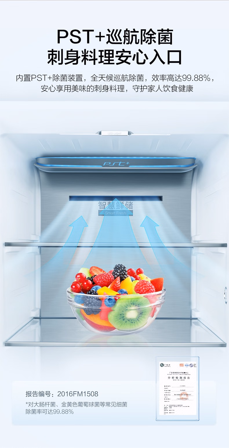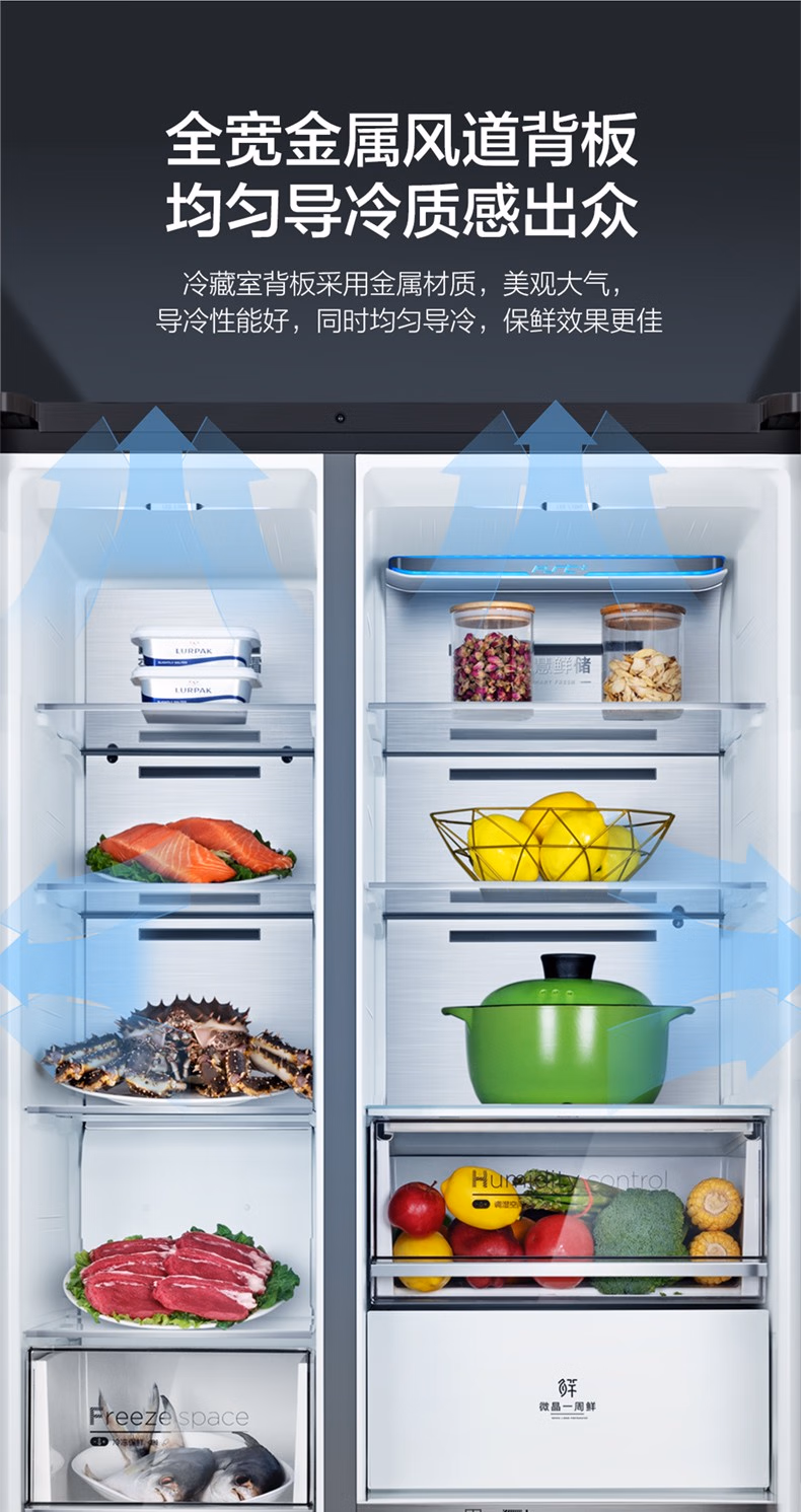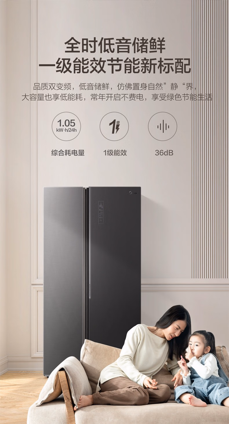 美的(Midea)微晶一周鲜609升变频一级对开双开门冰箱大容量家用净味除菌无霜智能家电玻璃门BCD-609WKGPZM(E)