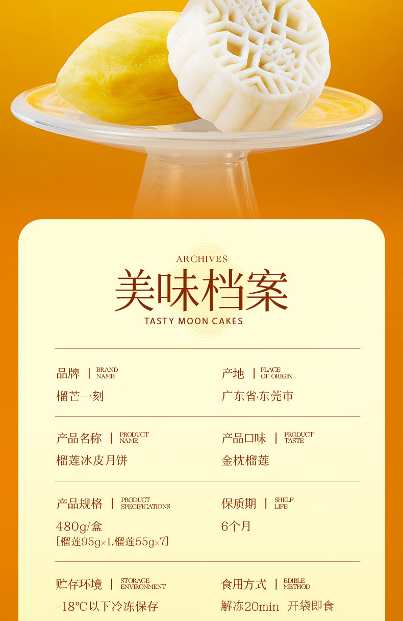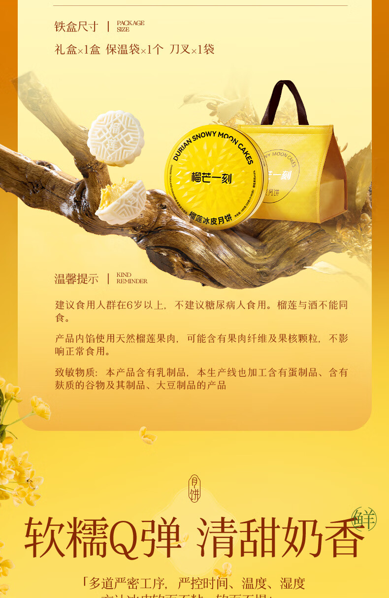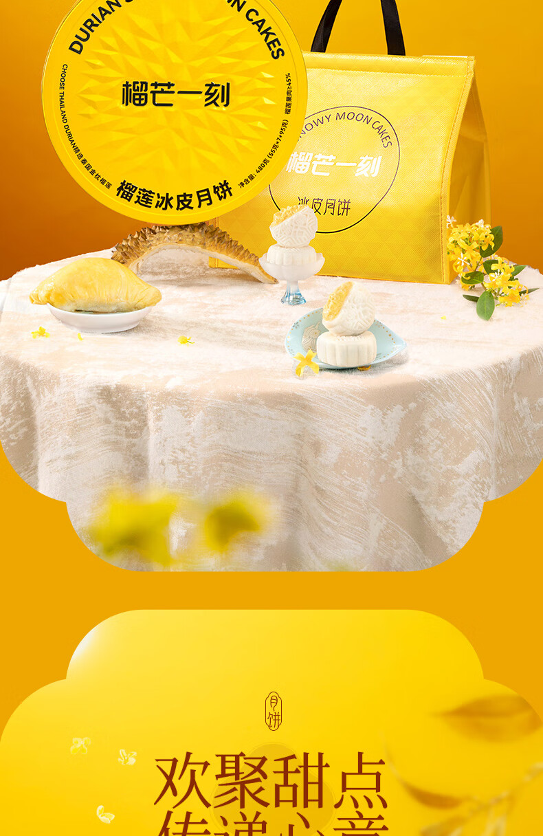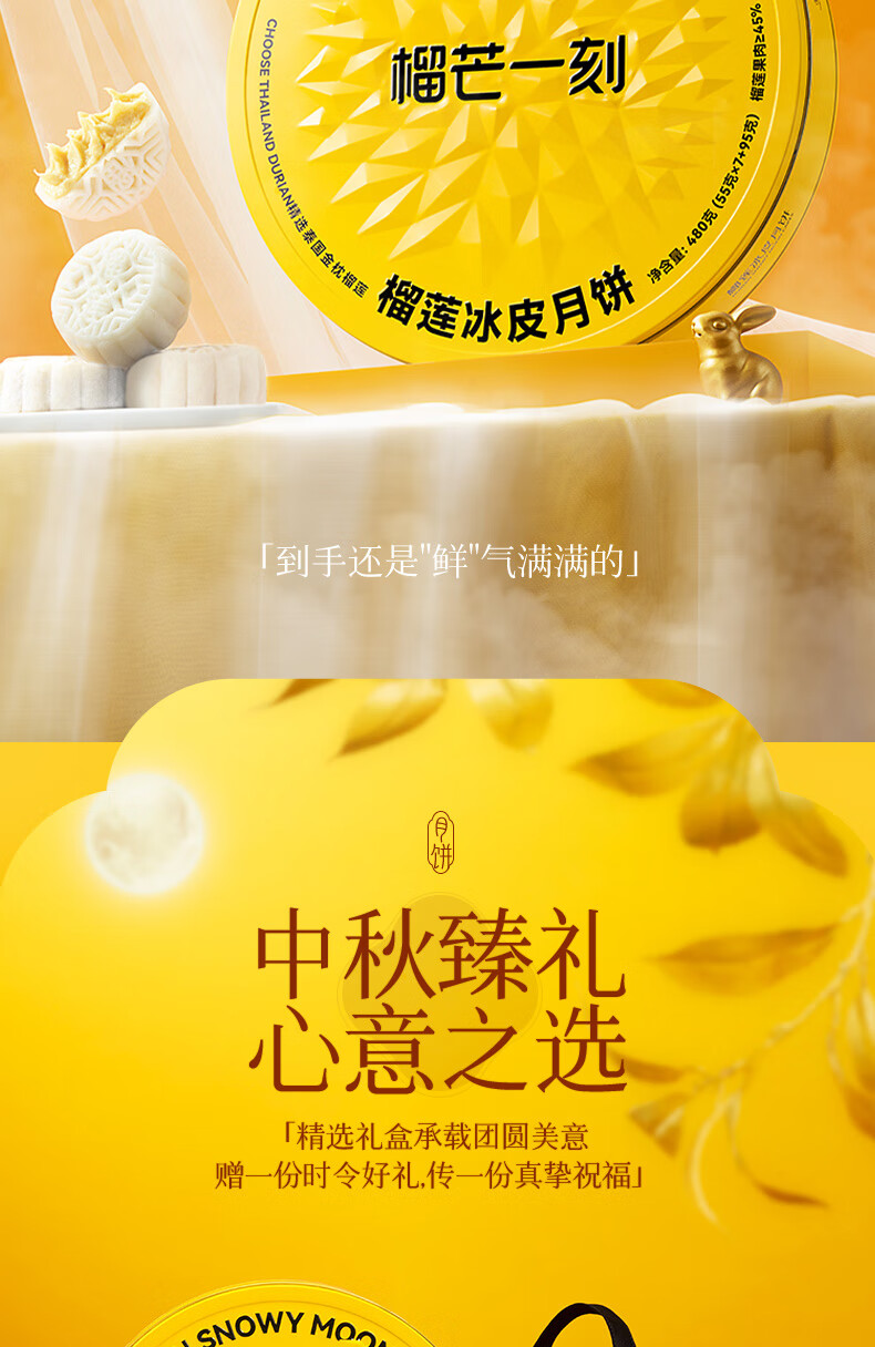 榴芒一刻金枕榴莲冰皮月饼礼盒480g高端礼盒中秋节日礼品广式流心月饼 金枕榴莲冰皮月饼礼盒480g