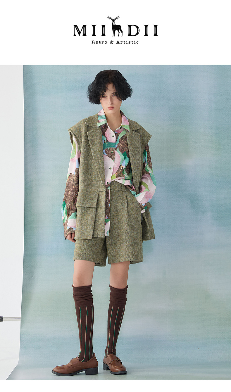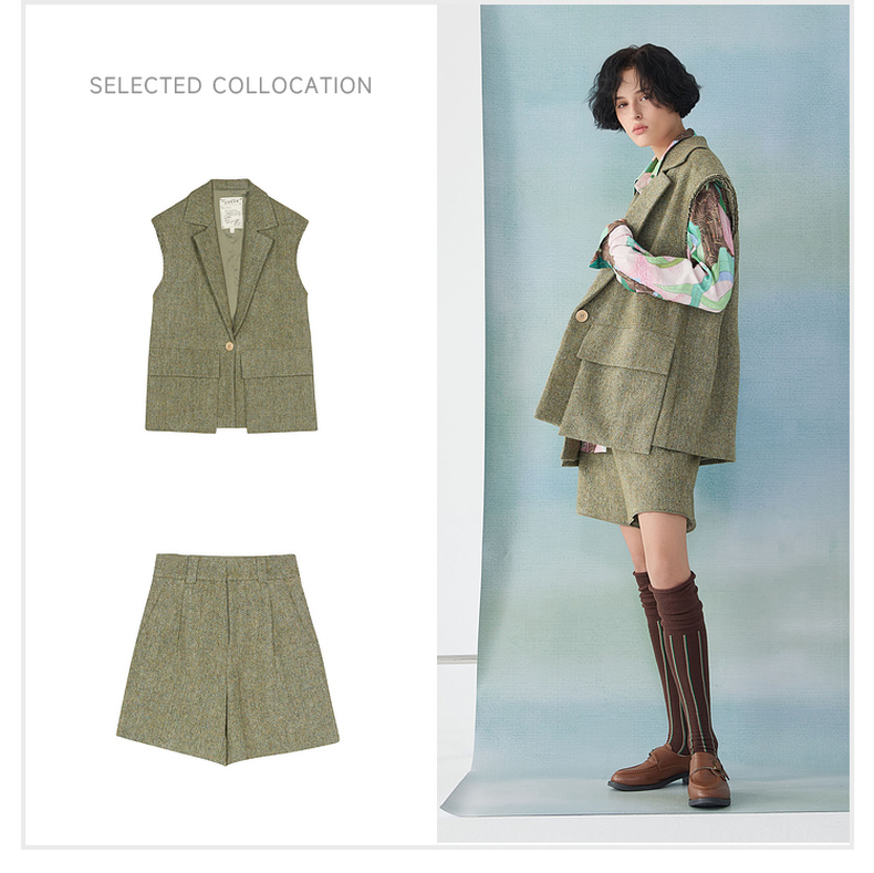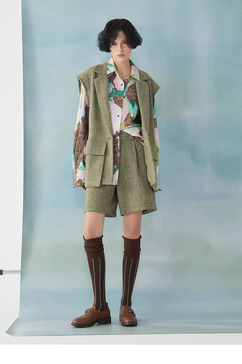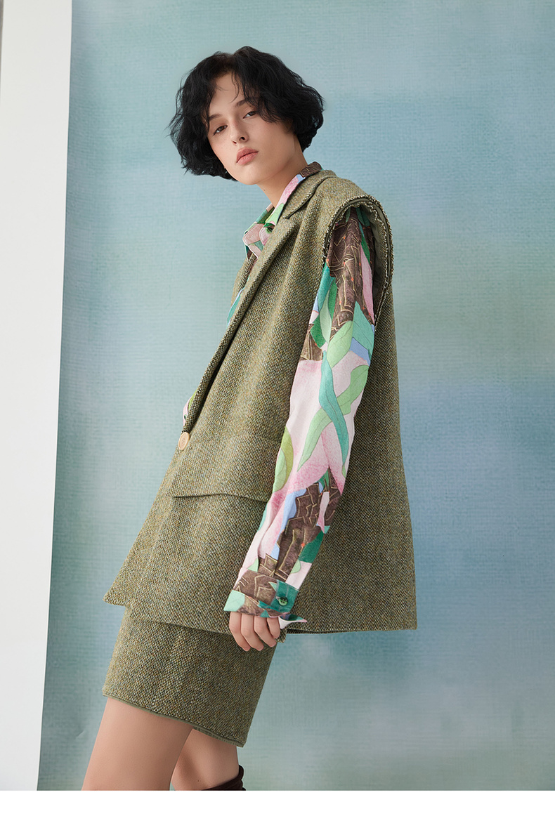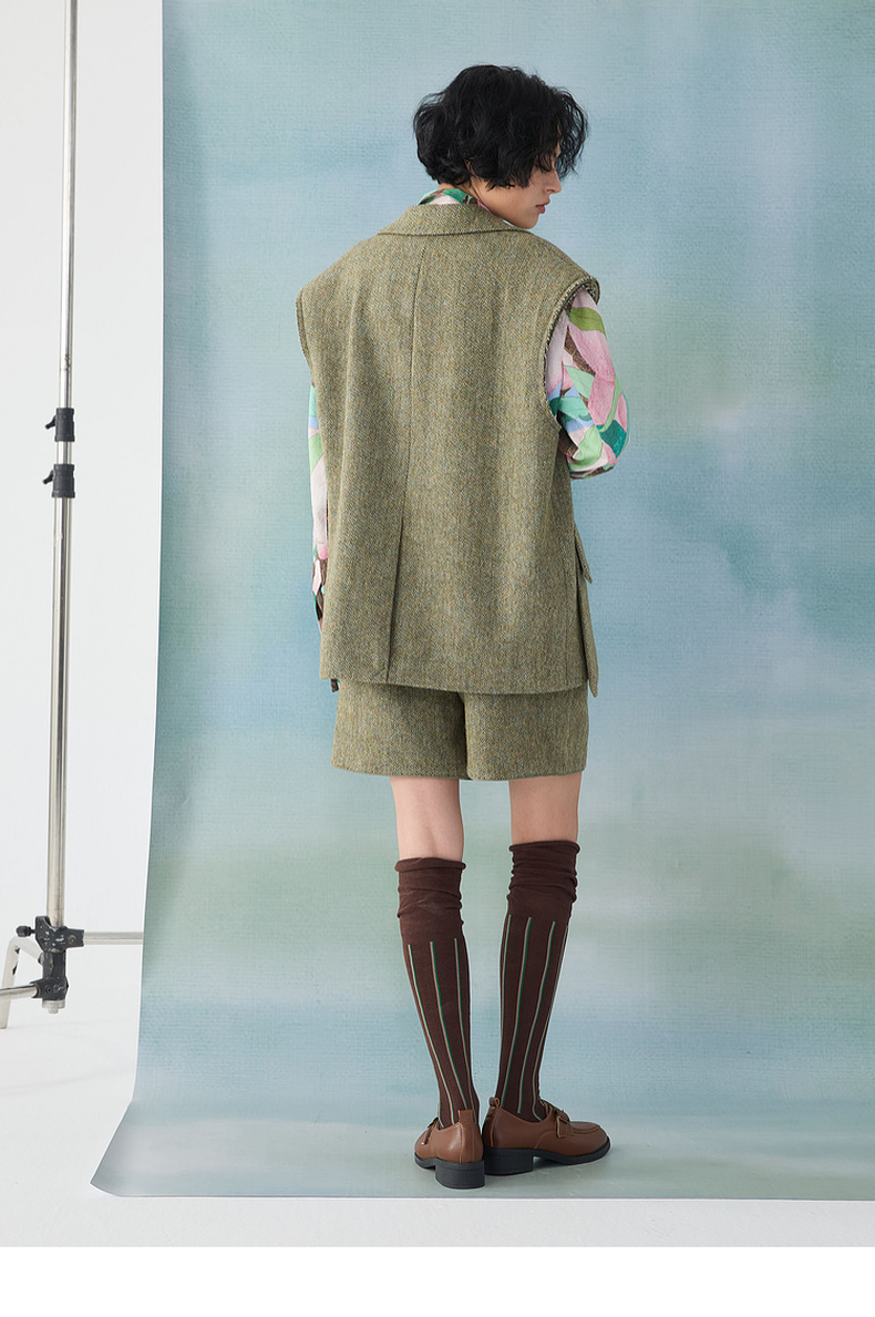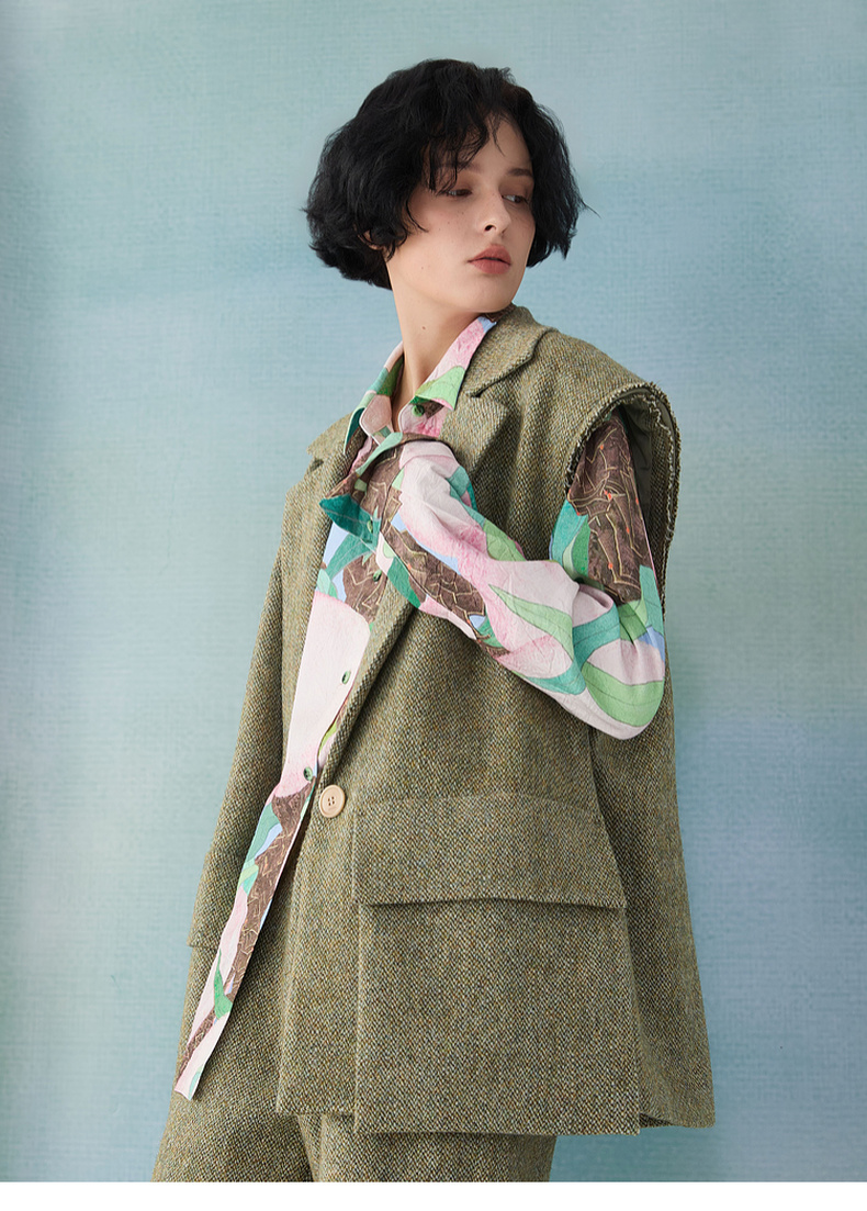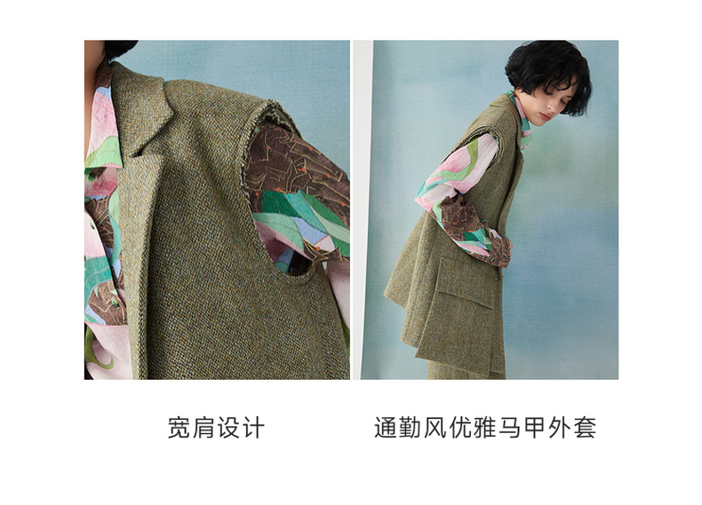 谜底西装马甲2025春季新品时髦通勤宽松100绵羊毛马夹女251MM0002