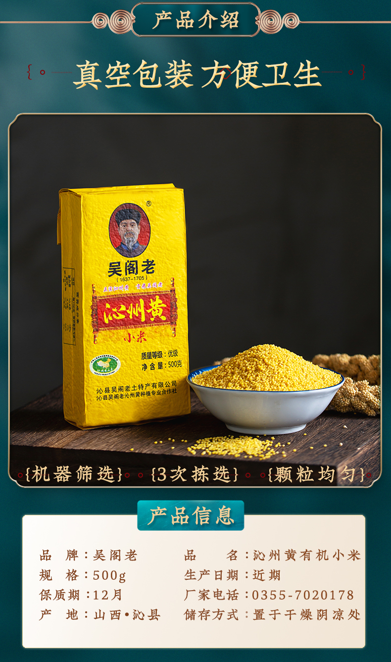 吴阁老 沁州黄小米 有机黄小米500g 山西特产支持自提