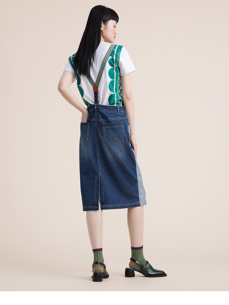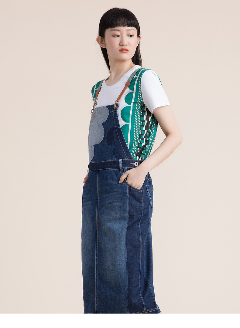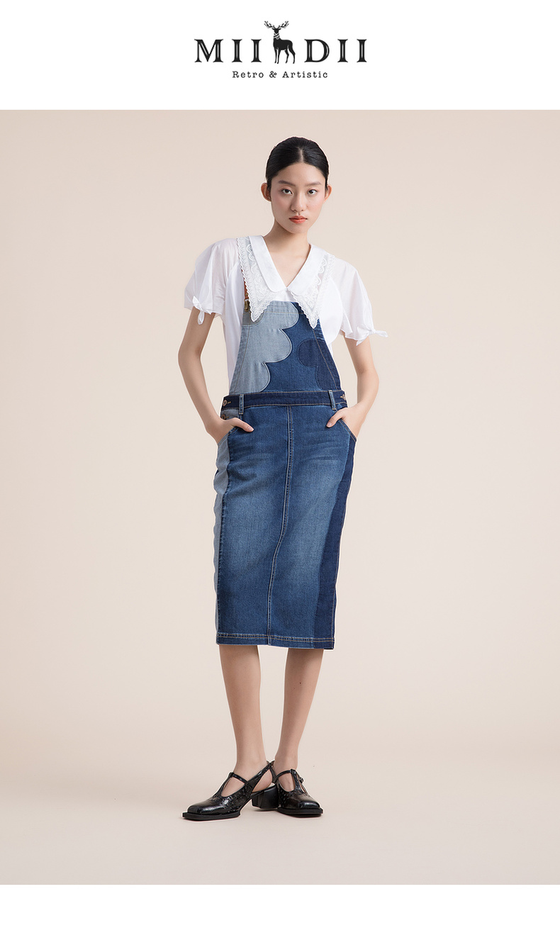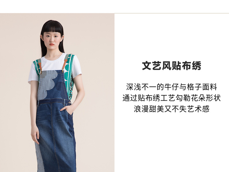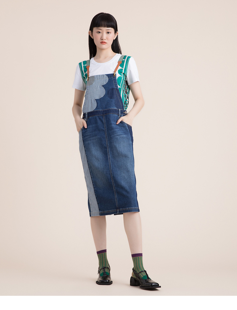 谜底牛仔背带裙2022夏季新款学院减龄贴布绣中长半裙222MB0523