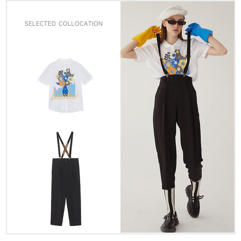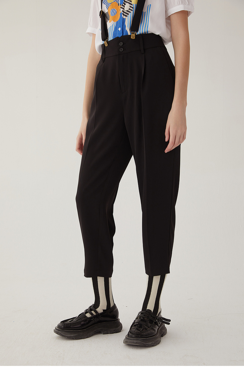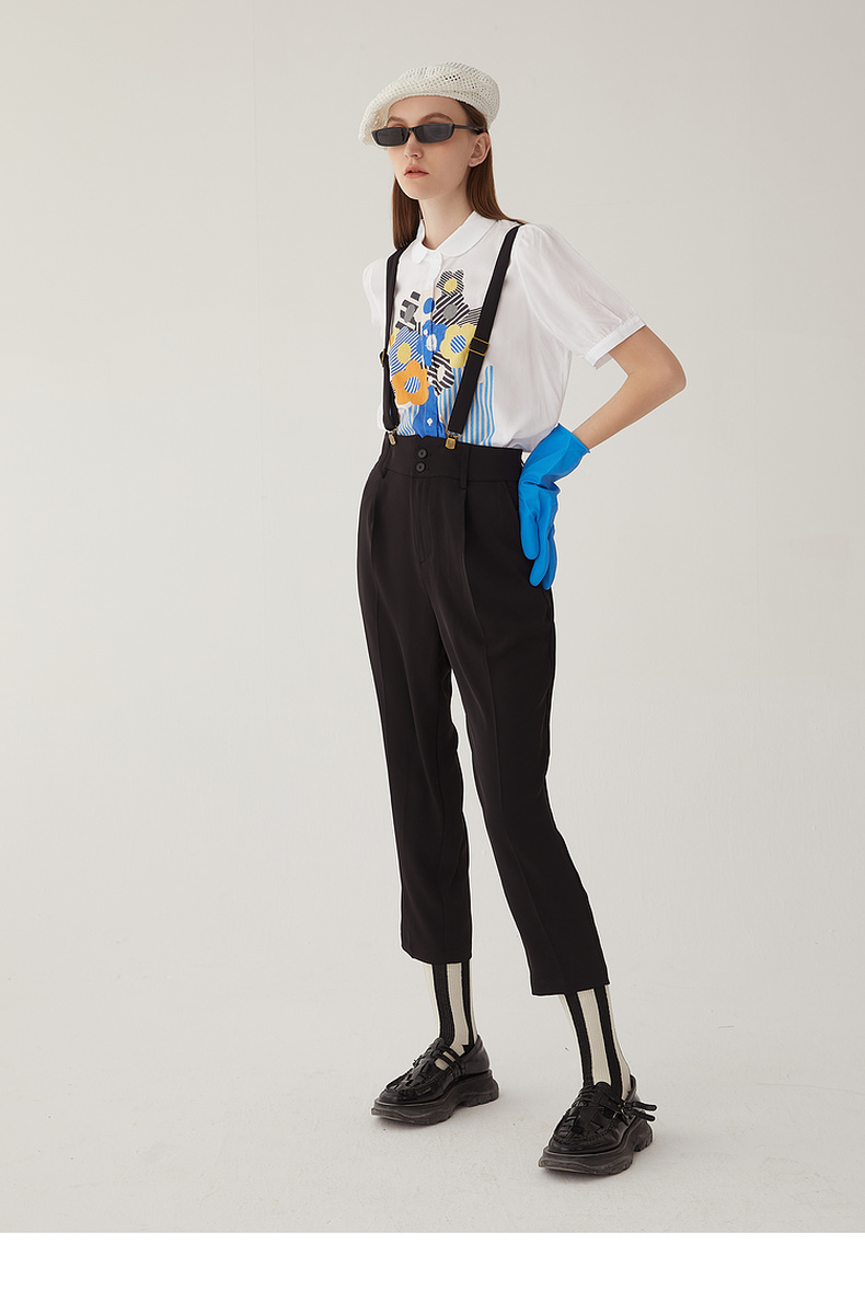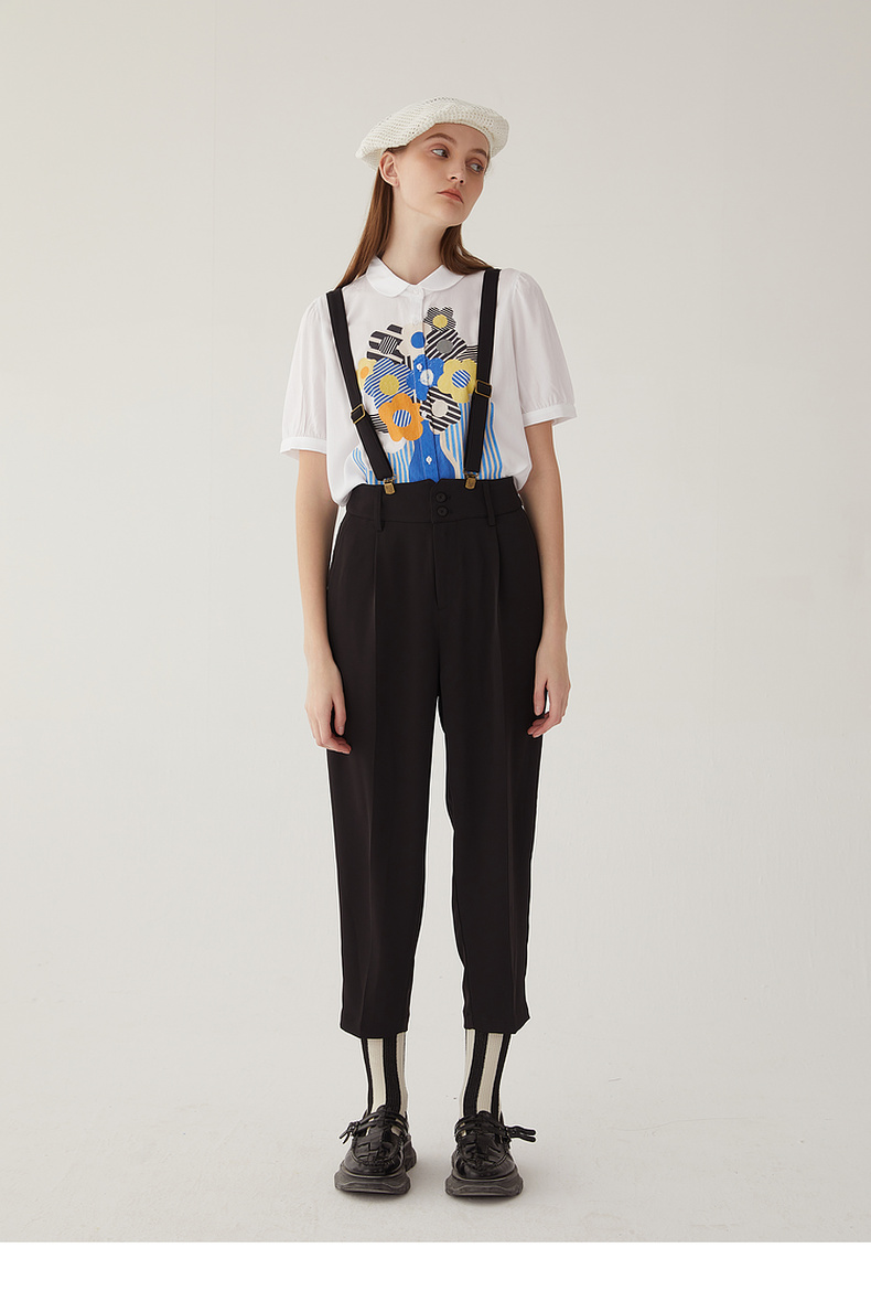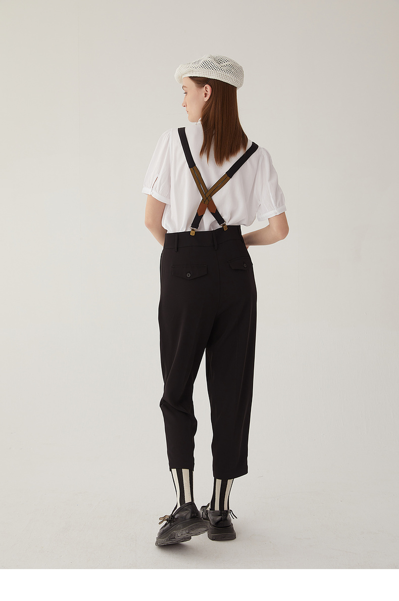 谜底背带裤女2024夏季新款时尚休闲亲肤舒适纯色九分裤246MK7019