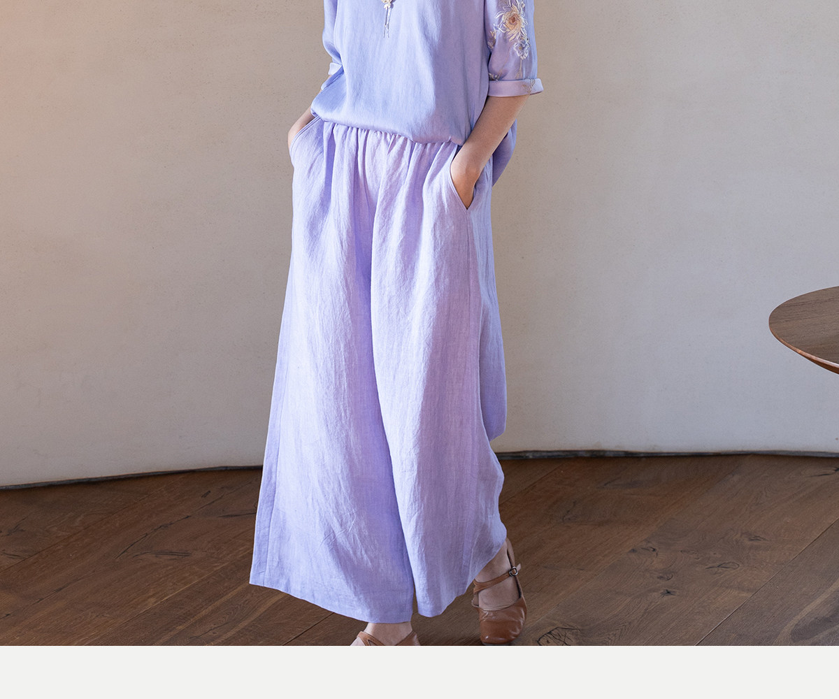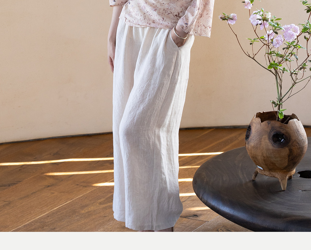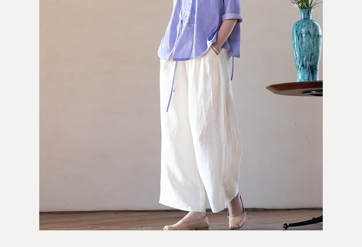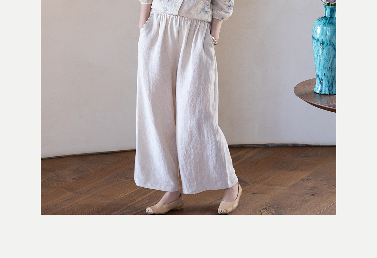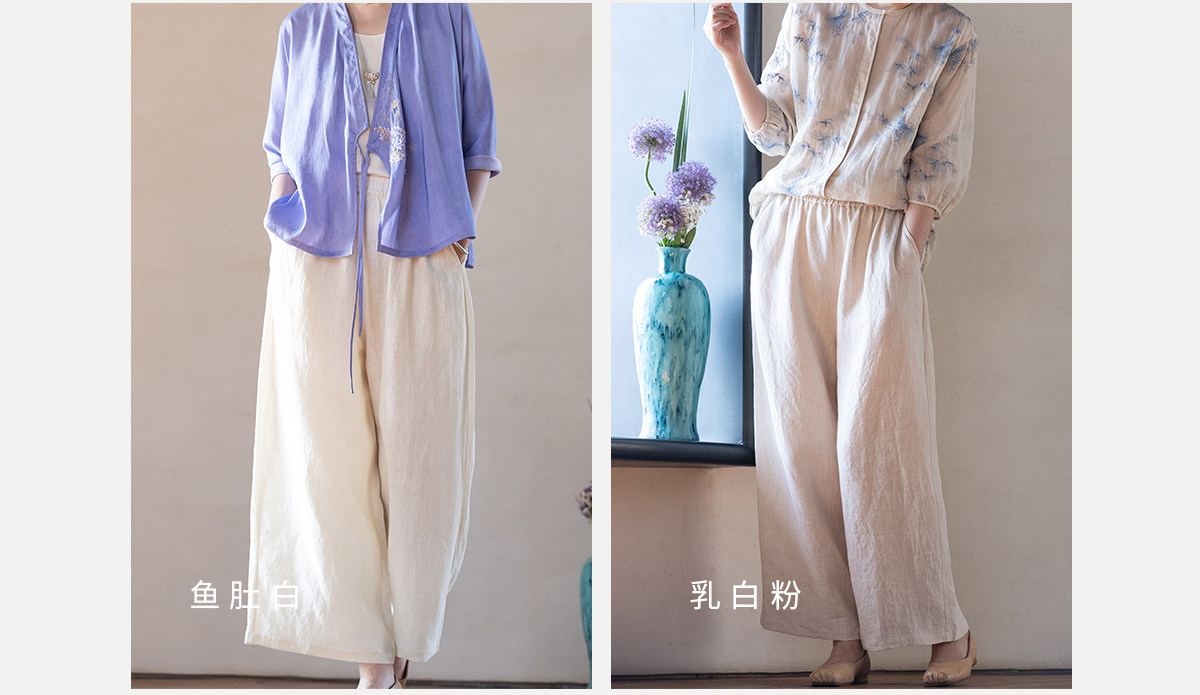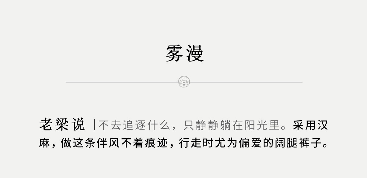 牧衣游原创 汉麻净色裤子女夏季轻薄舒爽宽松简约百搭休闲裤 雾漫