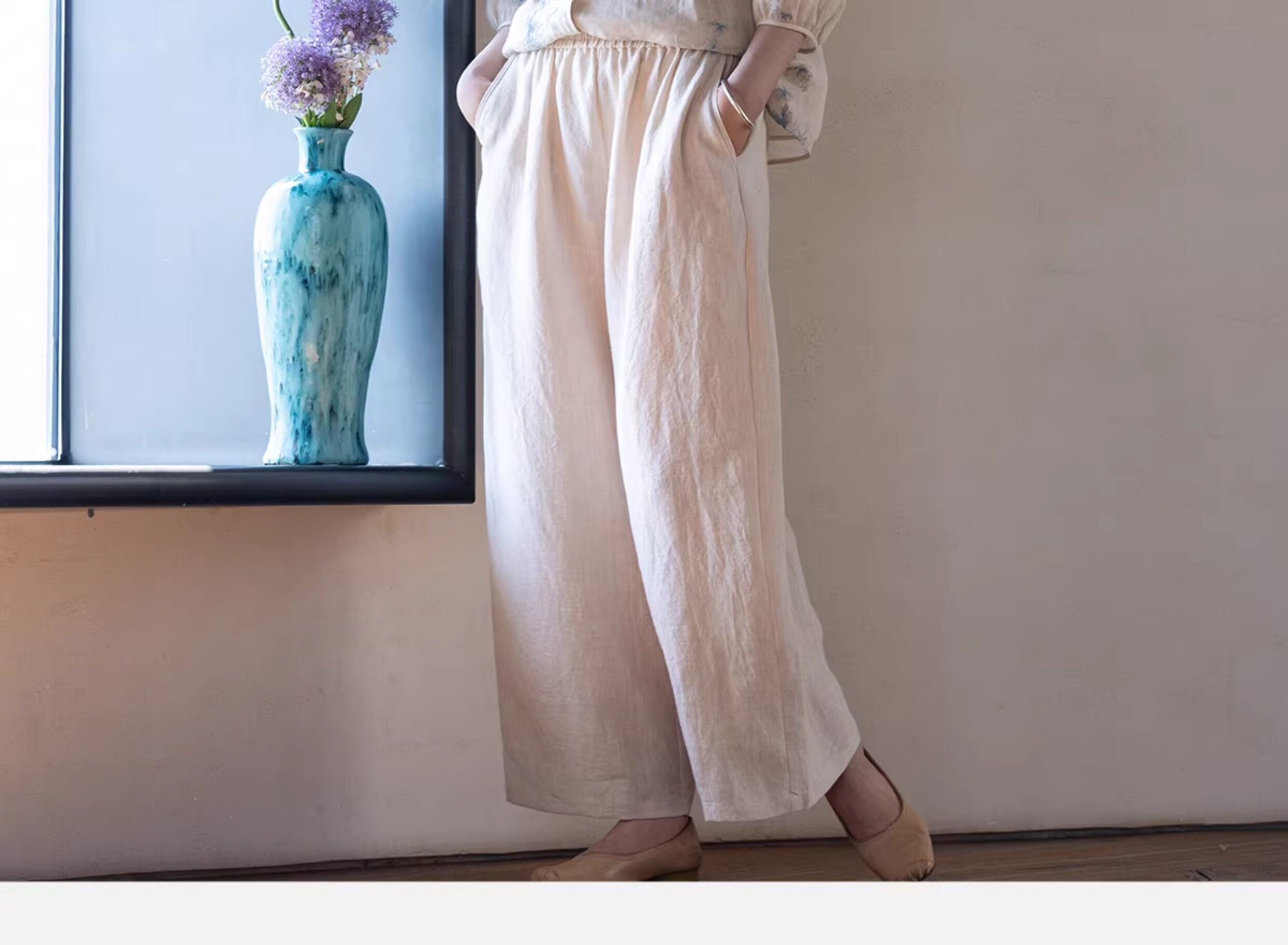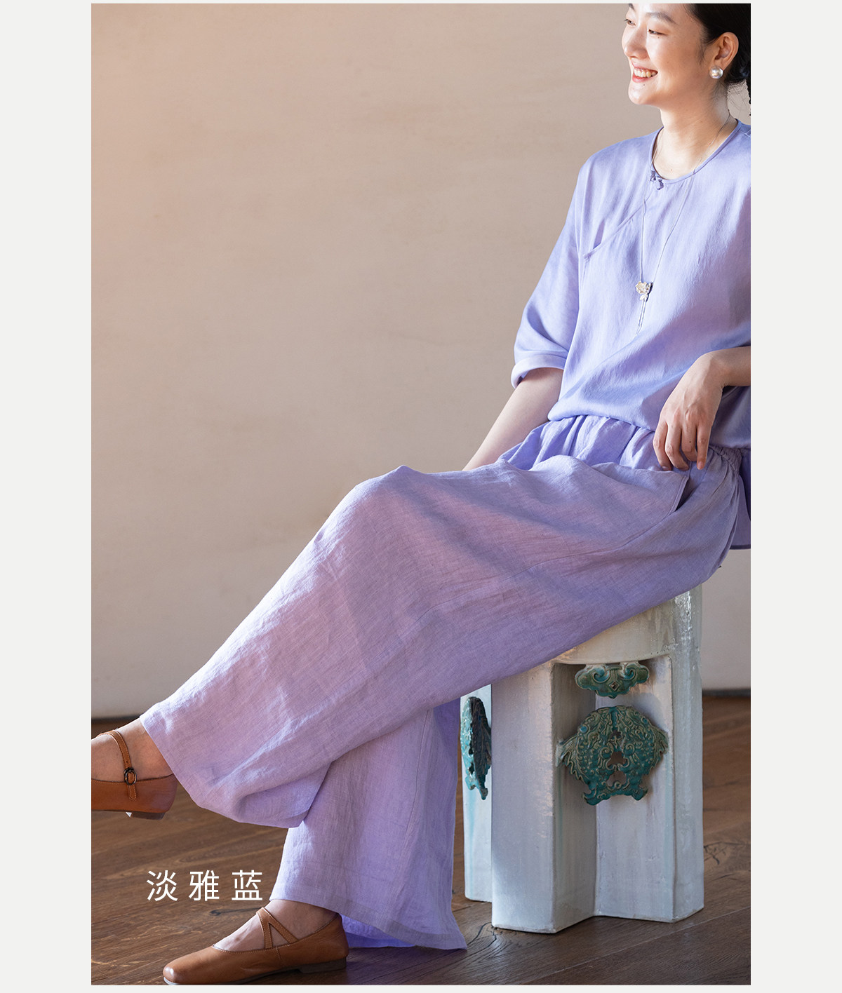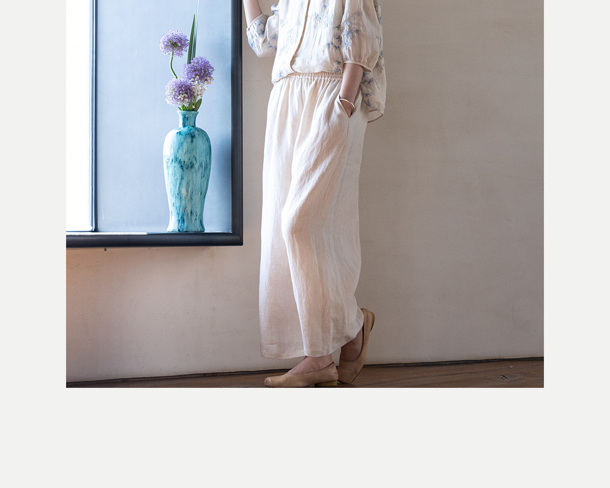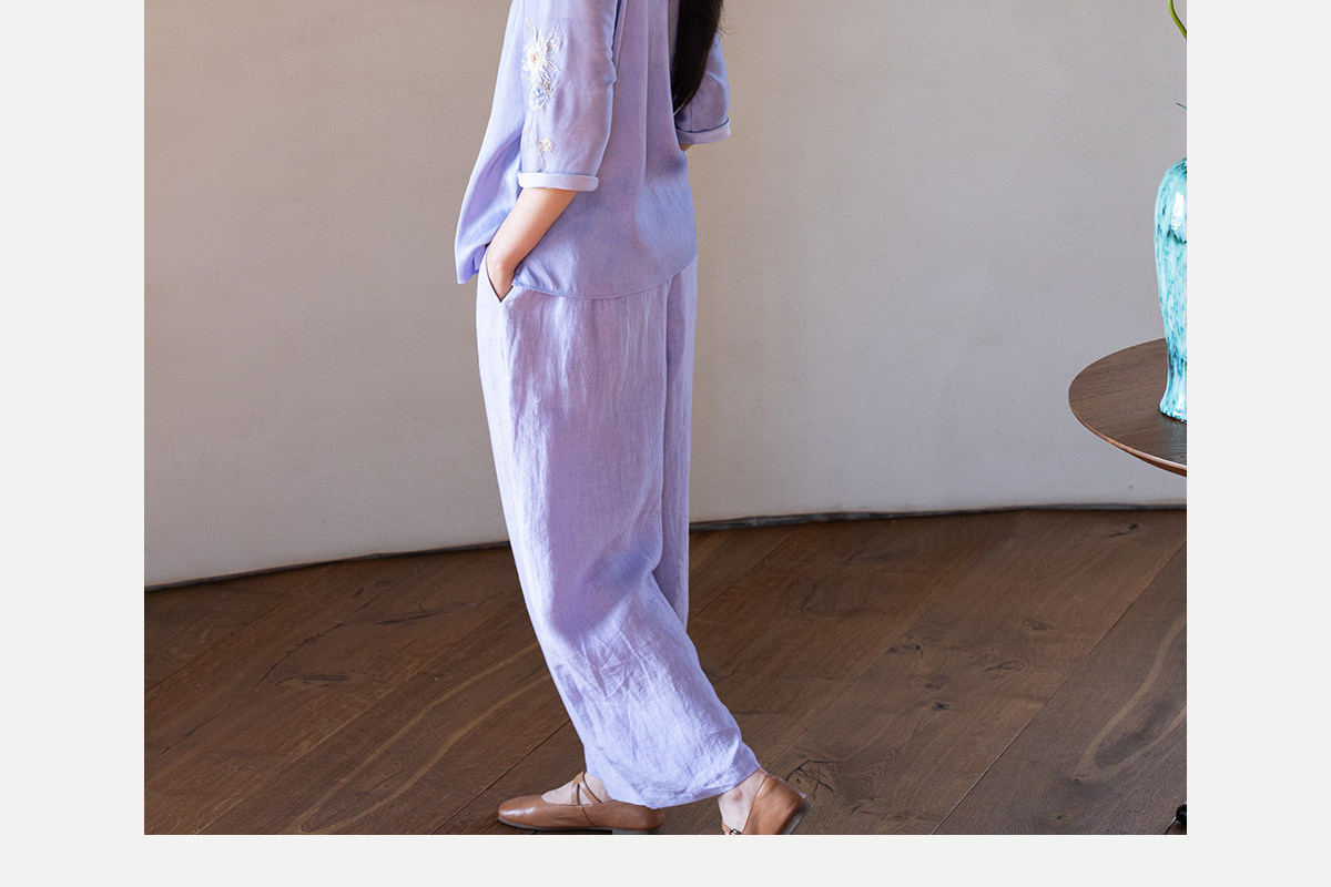 牧衣游原创 汉麻净色裤子女夏季轻薄舒爽宽松简约百搭休闲裤 雾漫