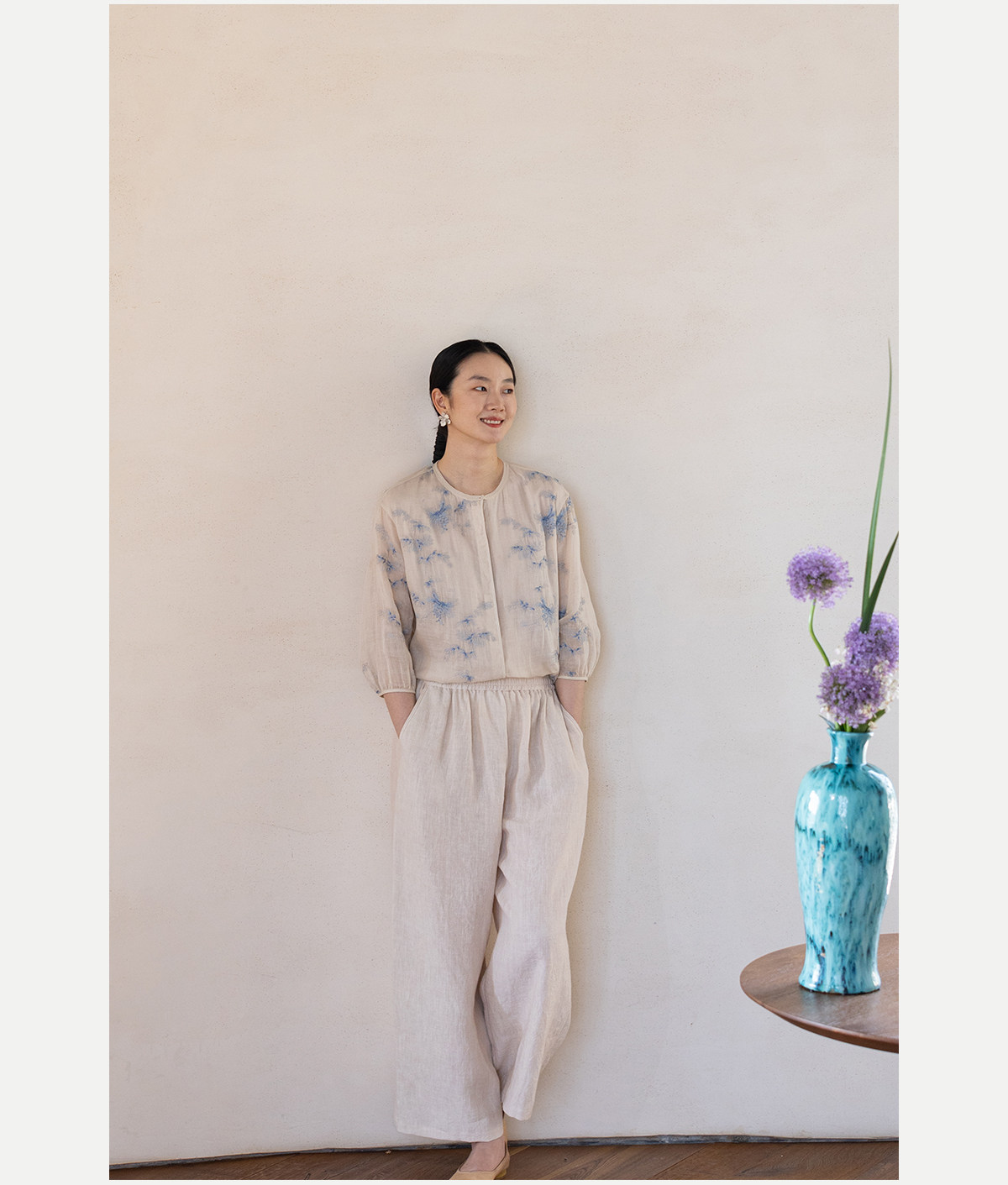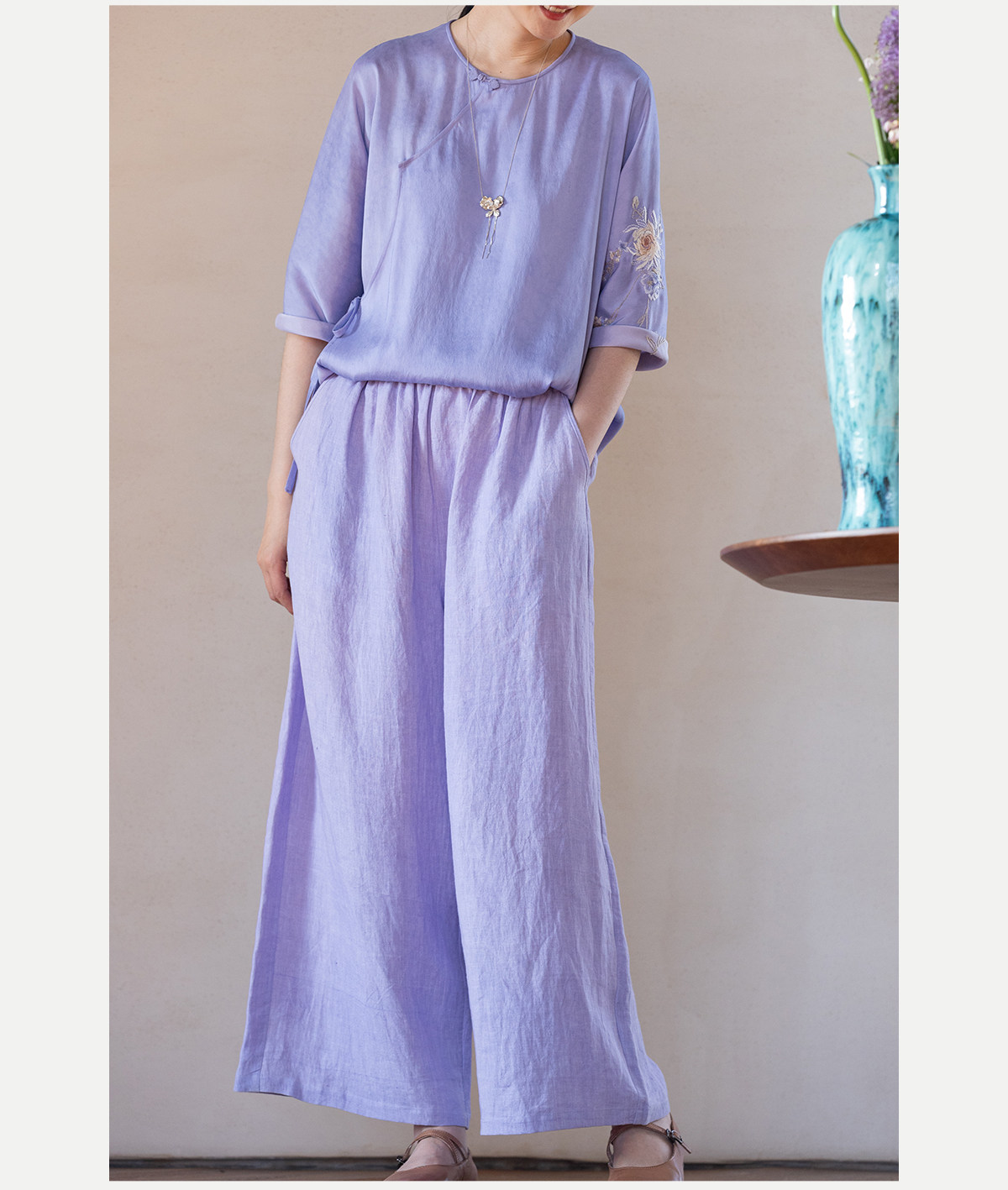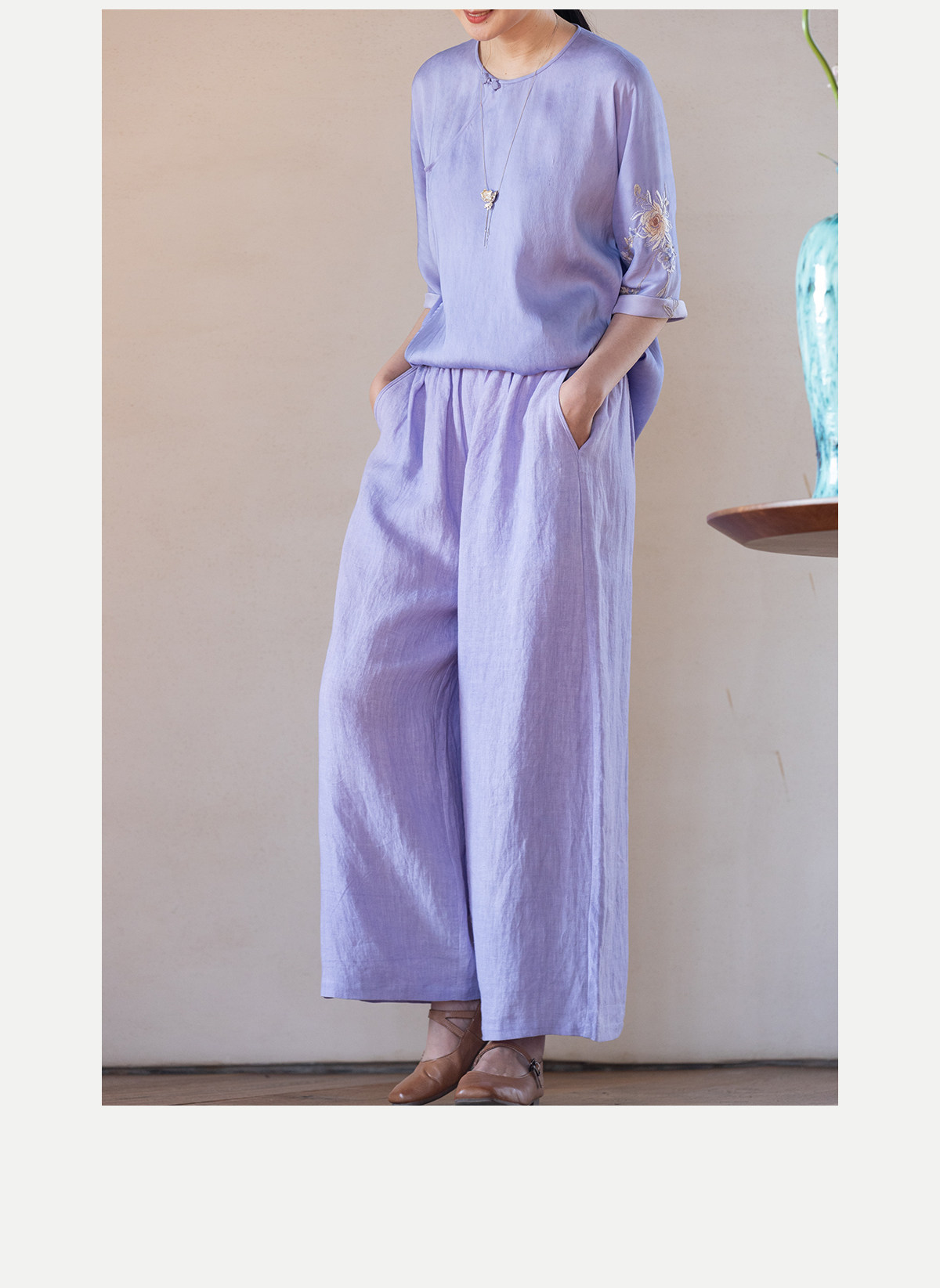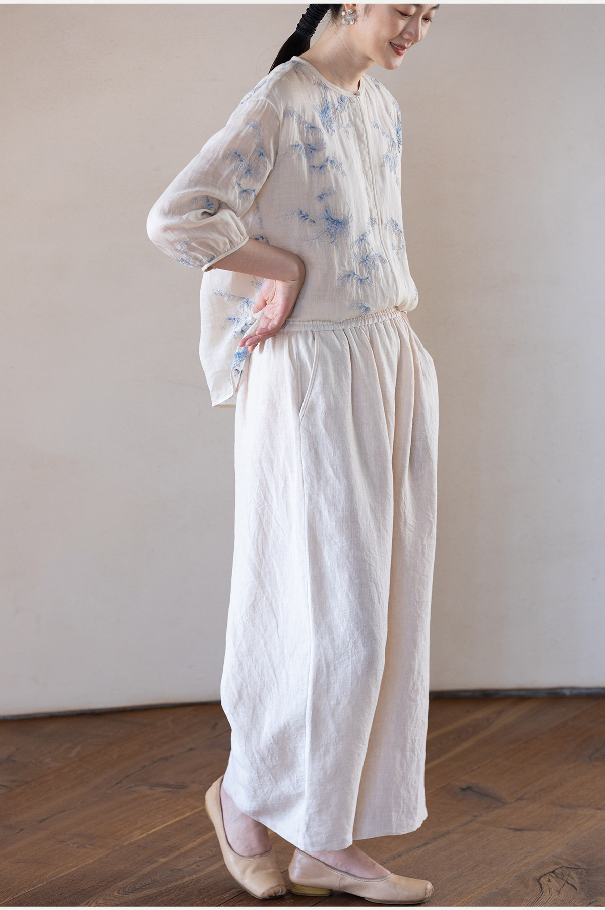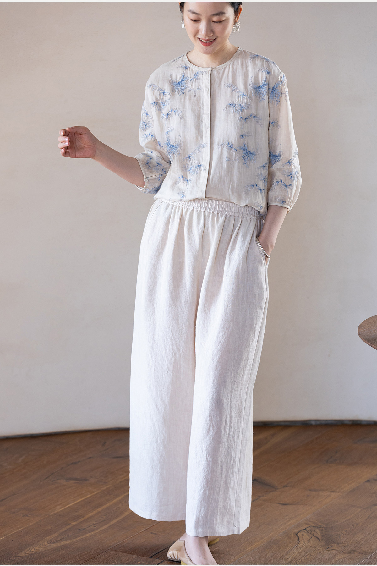 牧衣游原创 汉麻净色裤子女夏季轻薄舒爽宽松简约百搭休闲裤 雾漫