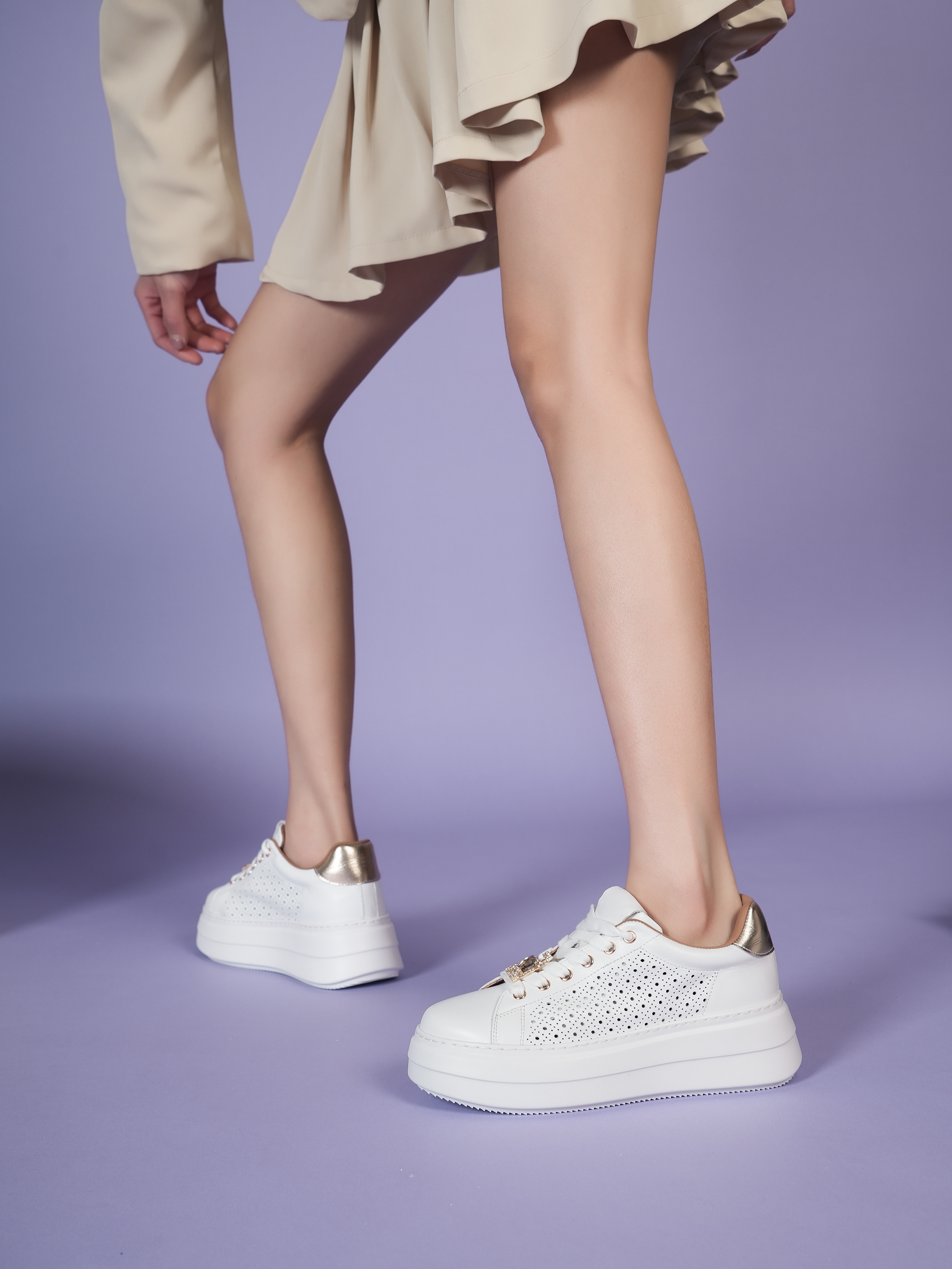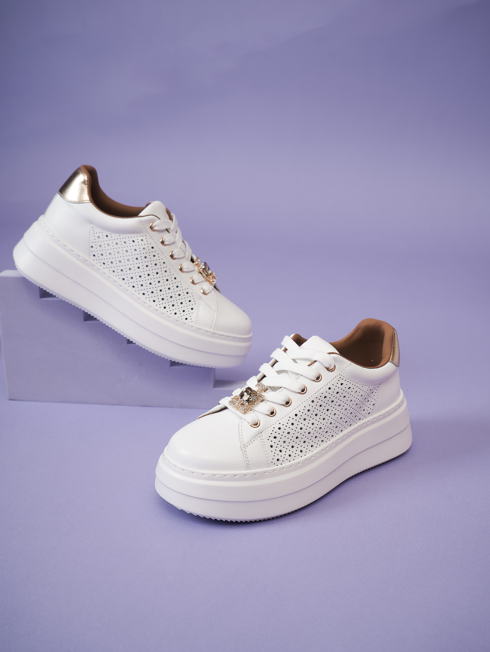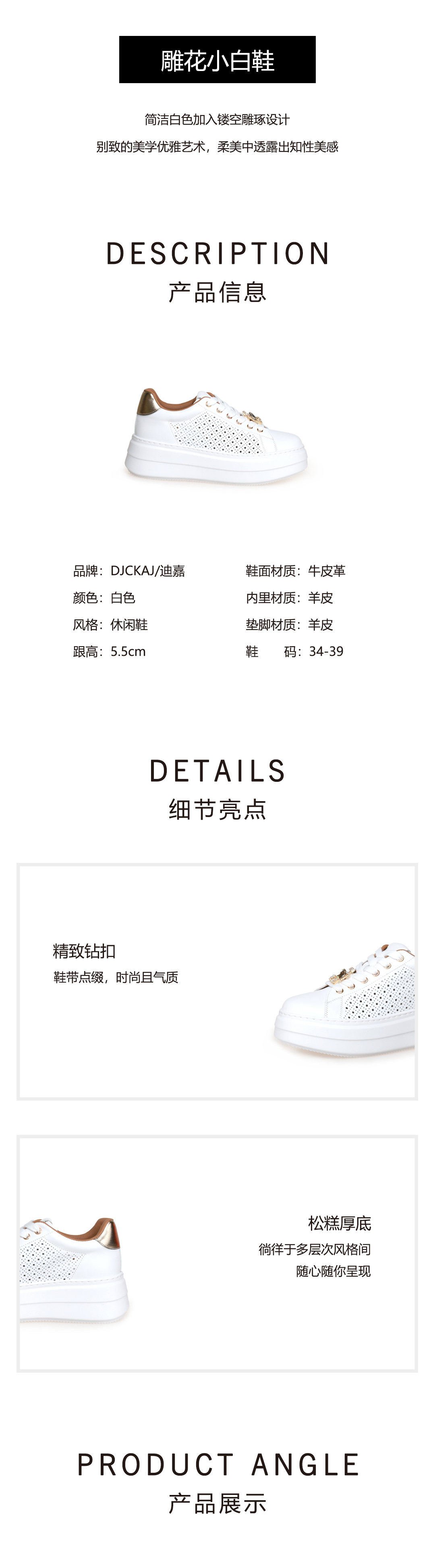 豪麟名鞋奥莱迪嘉女鞋时尚休闲鞋牛皮革DJJGA51WX013白色 原价1960元