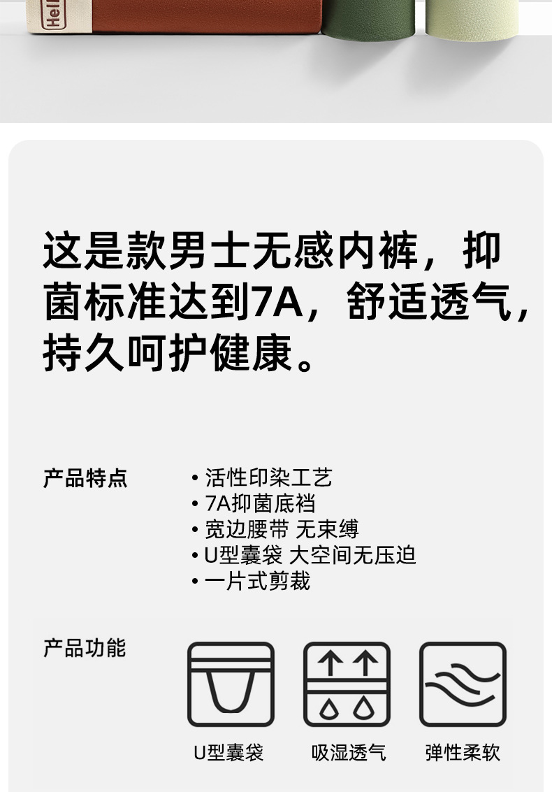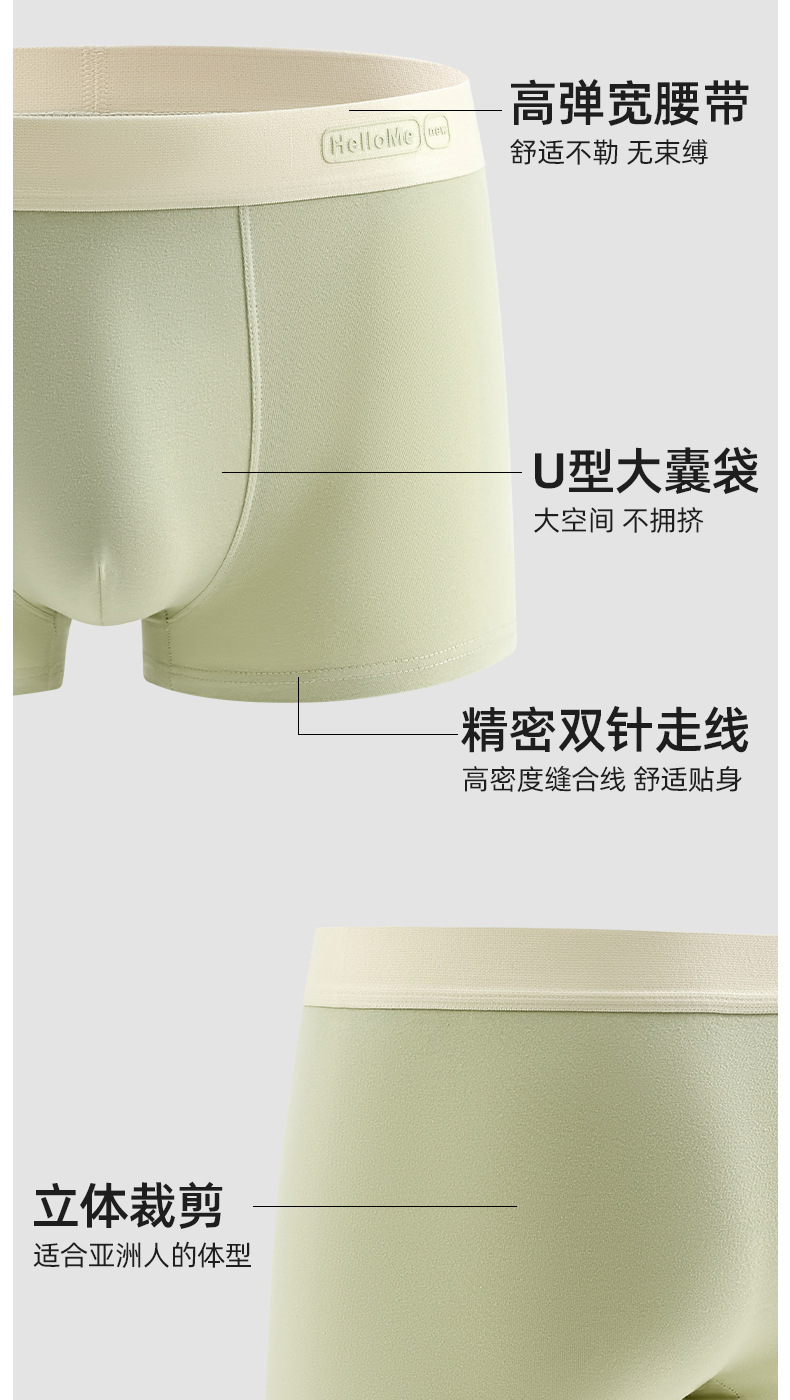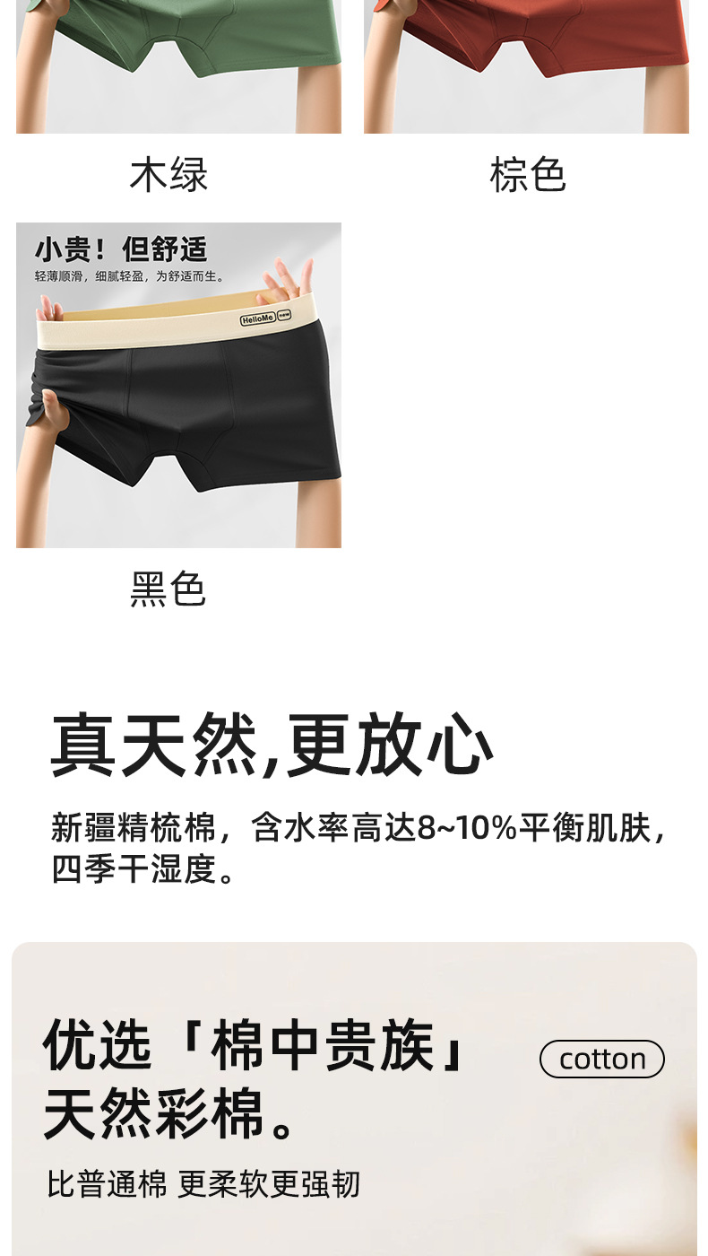 【娇安芬·男士新疆长绒棉平角内裤】59.9/5条!7A级抗JUN 3D立体葫芦囊袋 大空间超舒适 精选纯棉材质面料 超棵感体验!加密醒边设计 做工很好不卷边